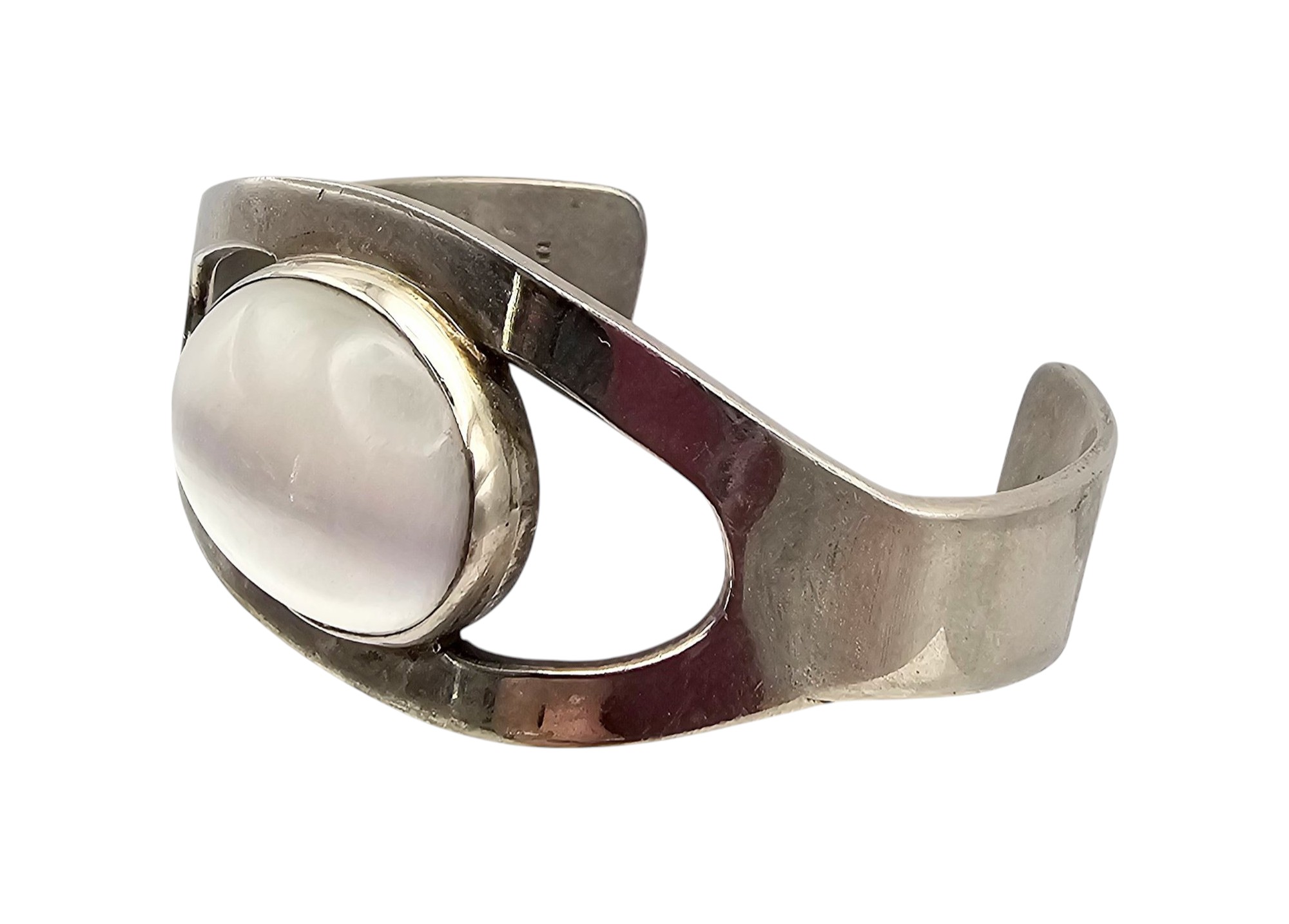Signed Mexico Taxco Sterling Cat Eye Cuff Bracelet