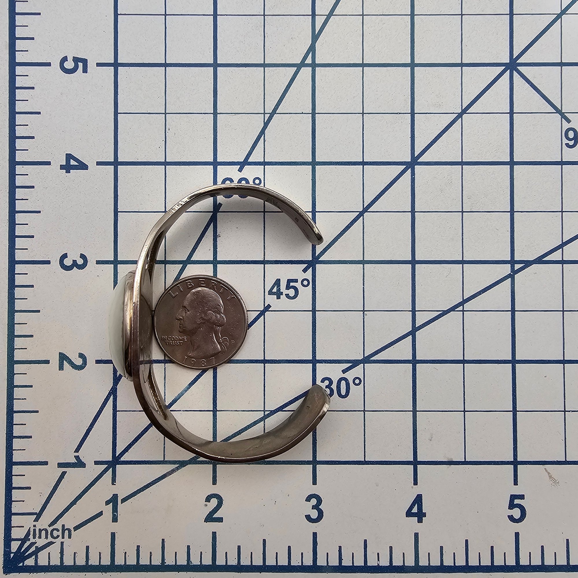 Signed Mexico Taxco Sterling Cat Eye Cuff Bracelet 33.1 G