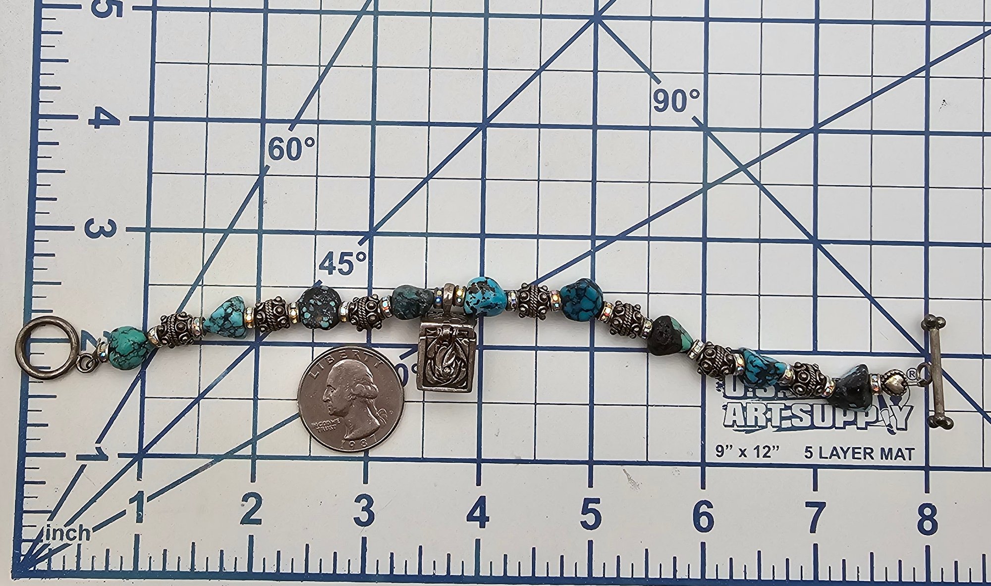 Sun West Albuquerque Sterling Turquoise Trinket Box Toggle Bracelet 33.6 G