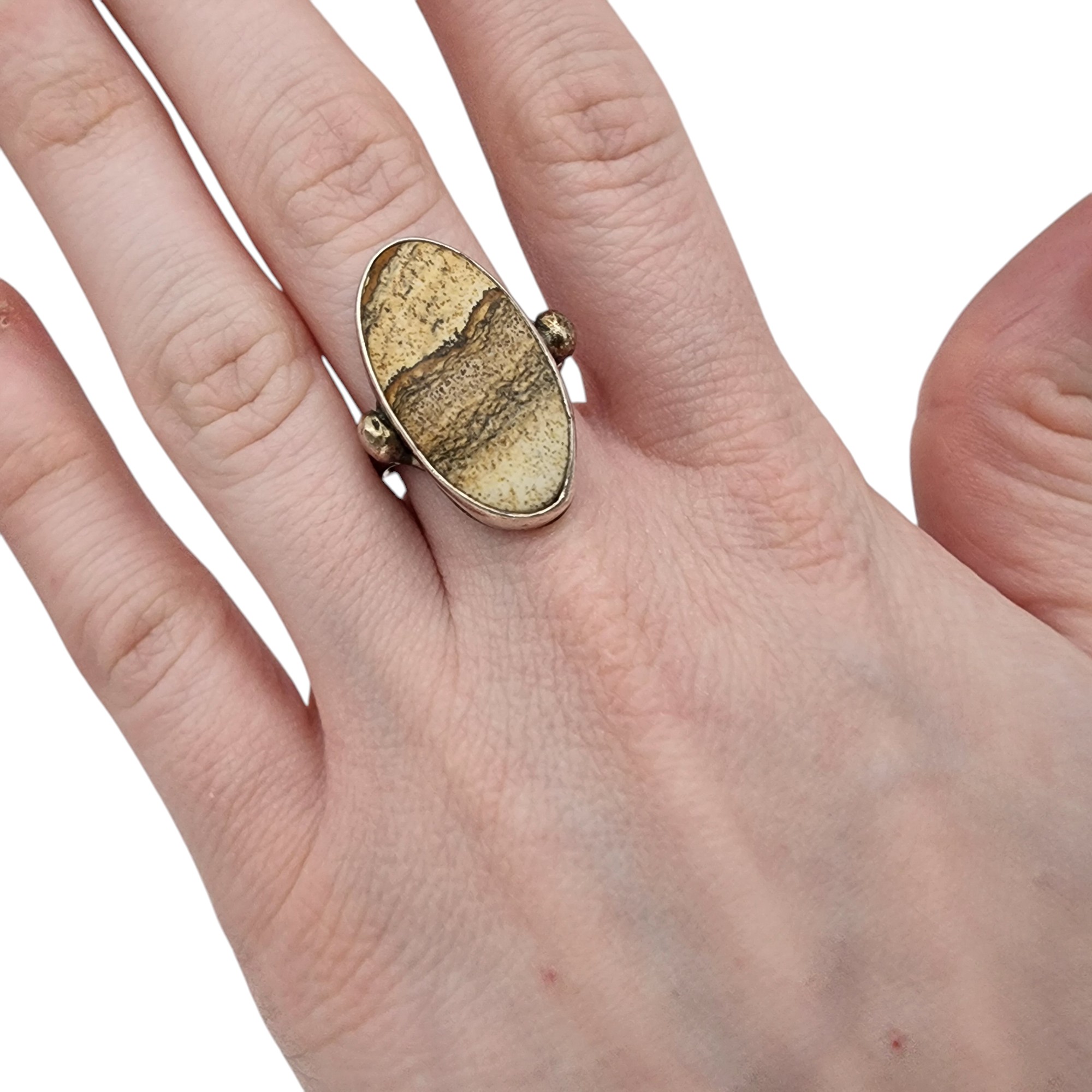 Southwest Sterling Jasper Ring Sz 7.5 7.8g