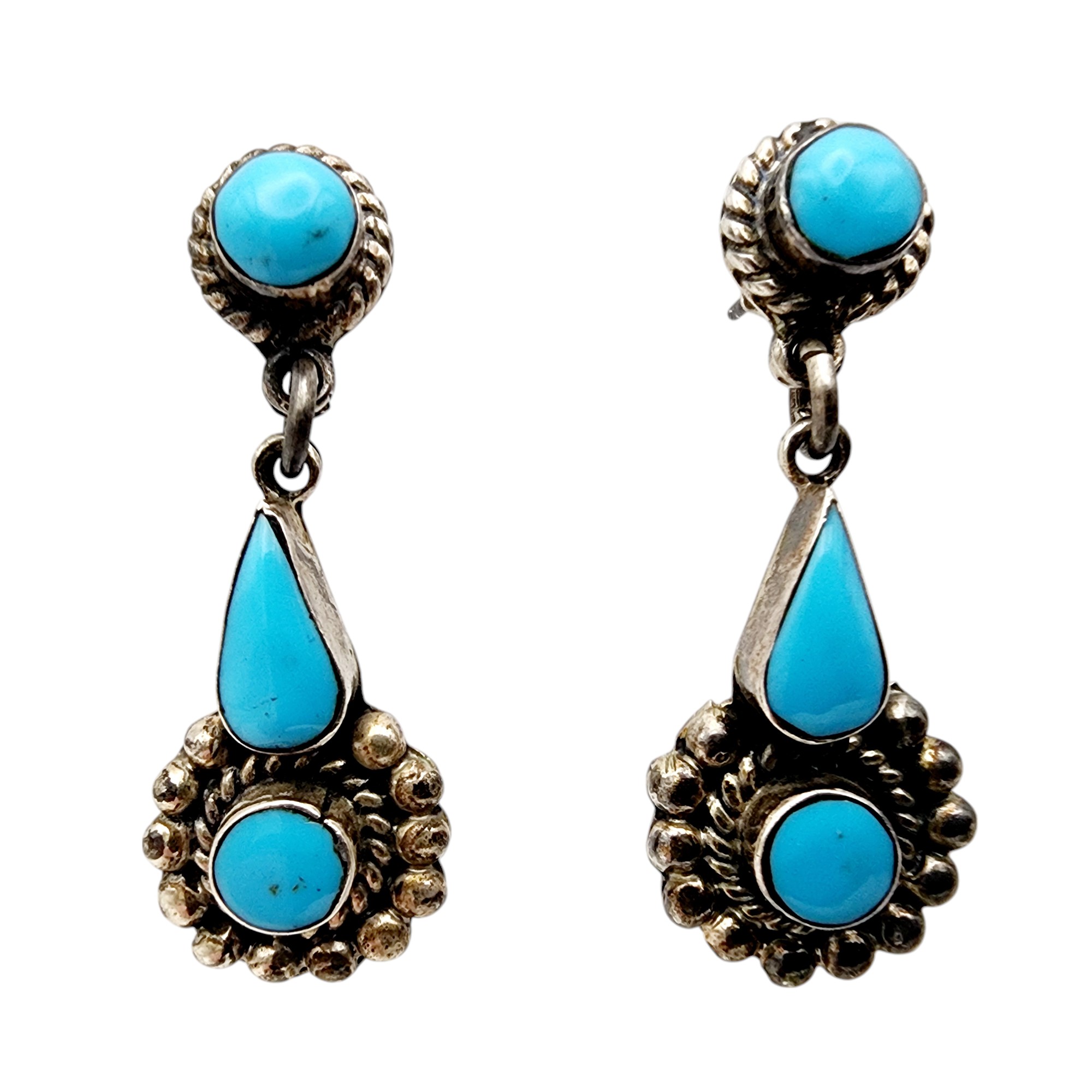 Mexico TC-9? Sterling Faux Turquoise Earrings 9.2g