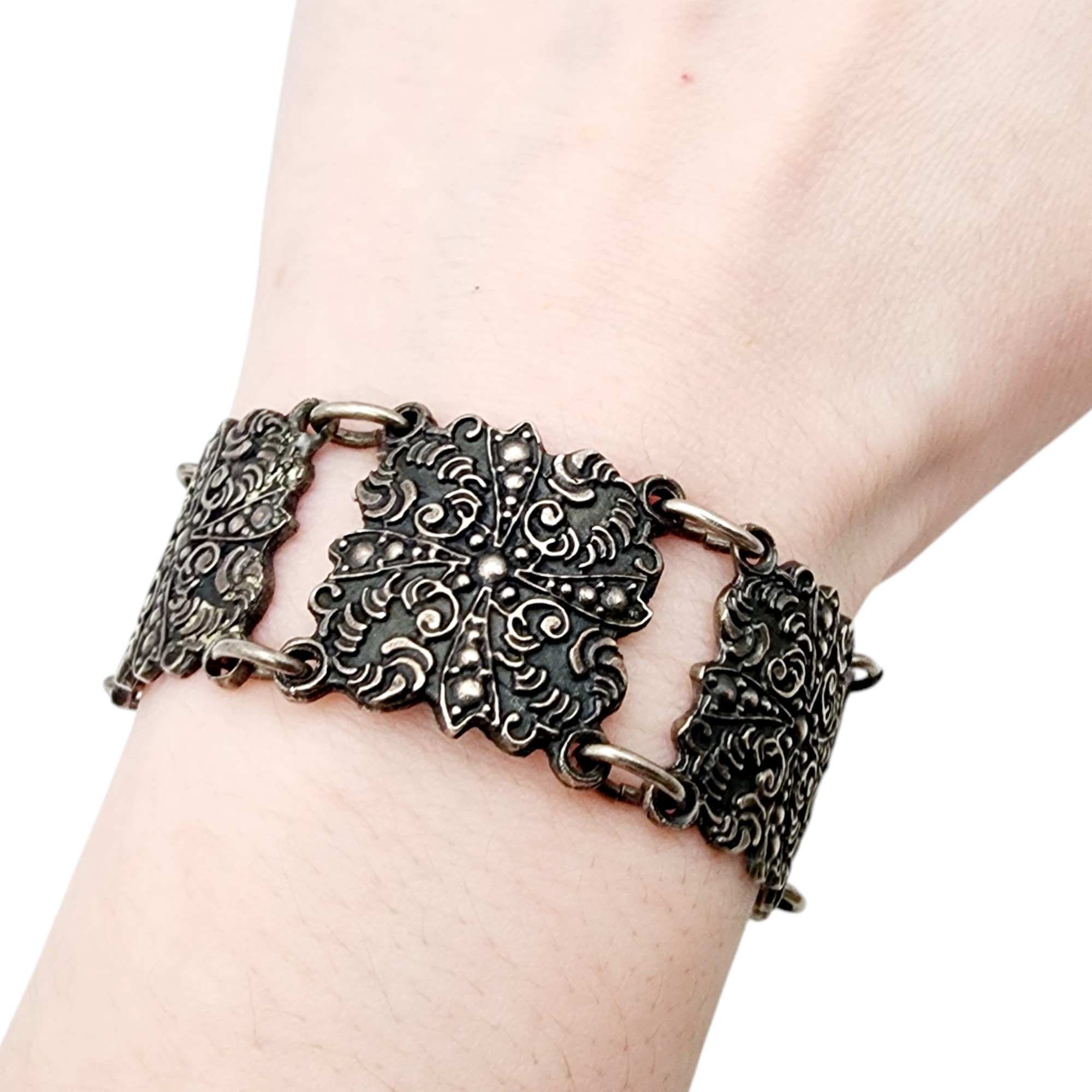 Vintage Mexico Sterling Panel Bracelet 49.5g