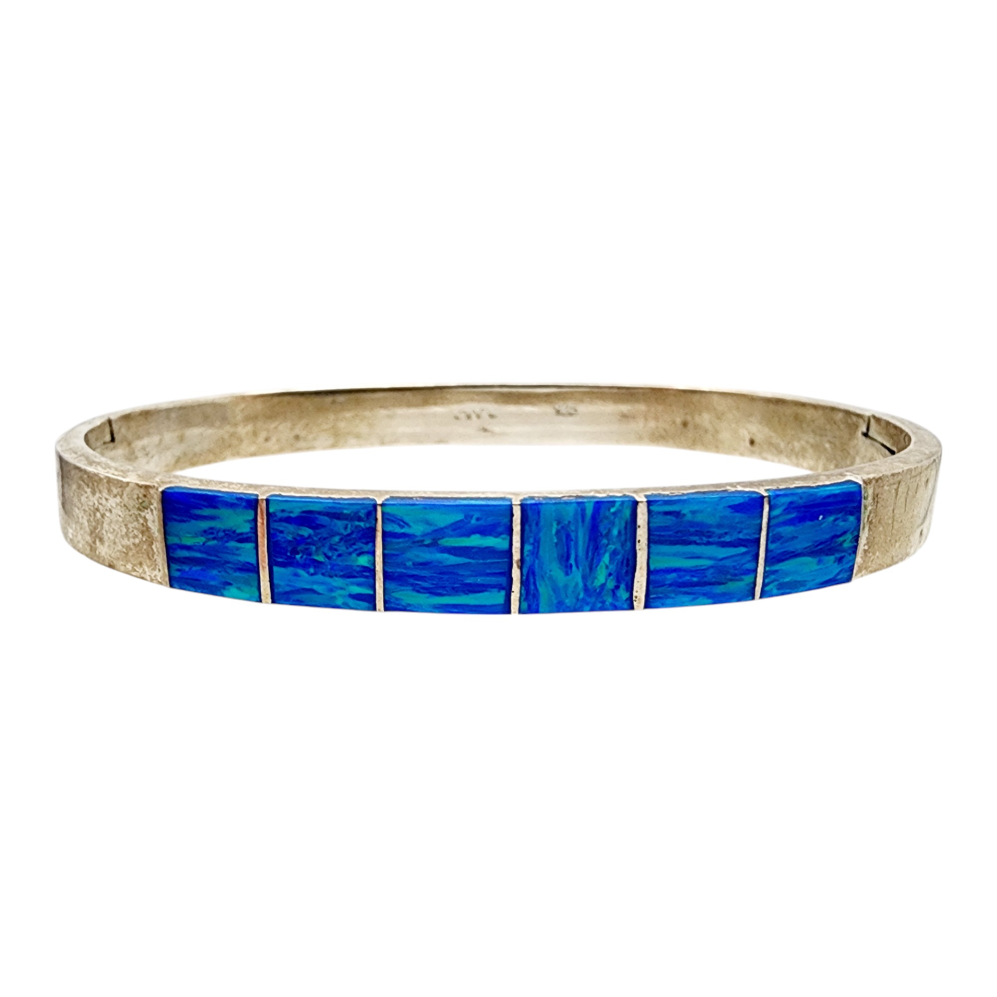 Mexico Sterling Opal Inlay Bangle Bracelet 23.3g