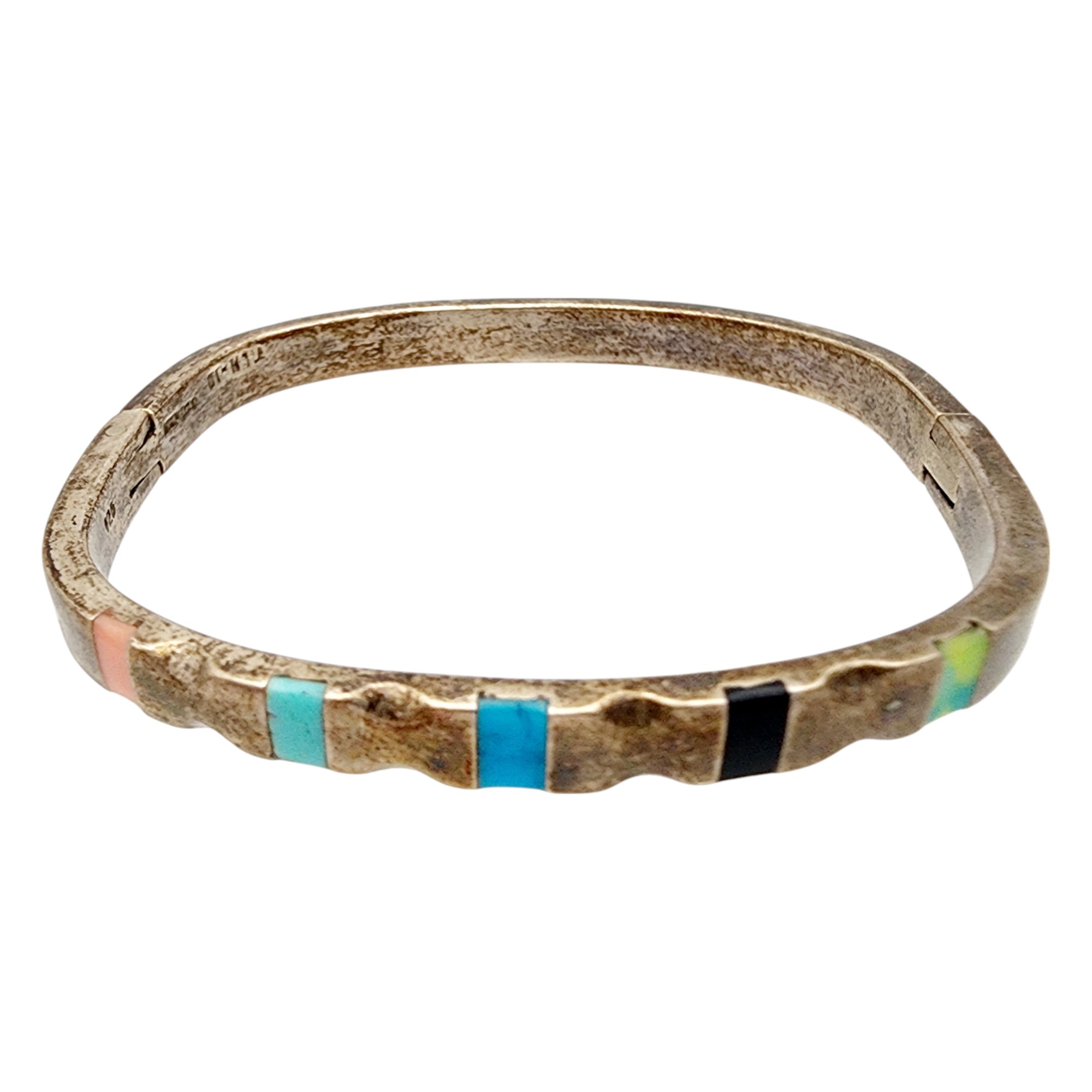 Mexico TLM-10 Sterling Multi Stone Bangle Bracelet 20g