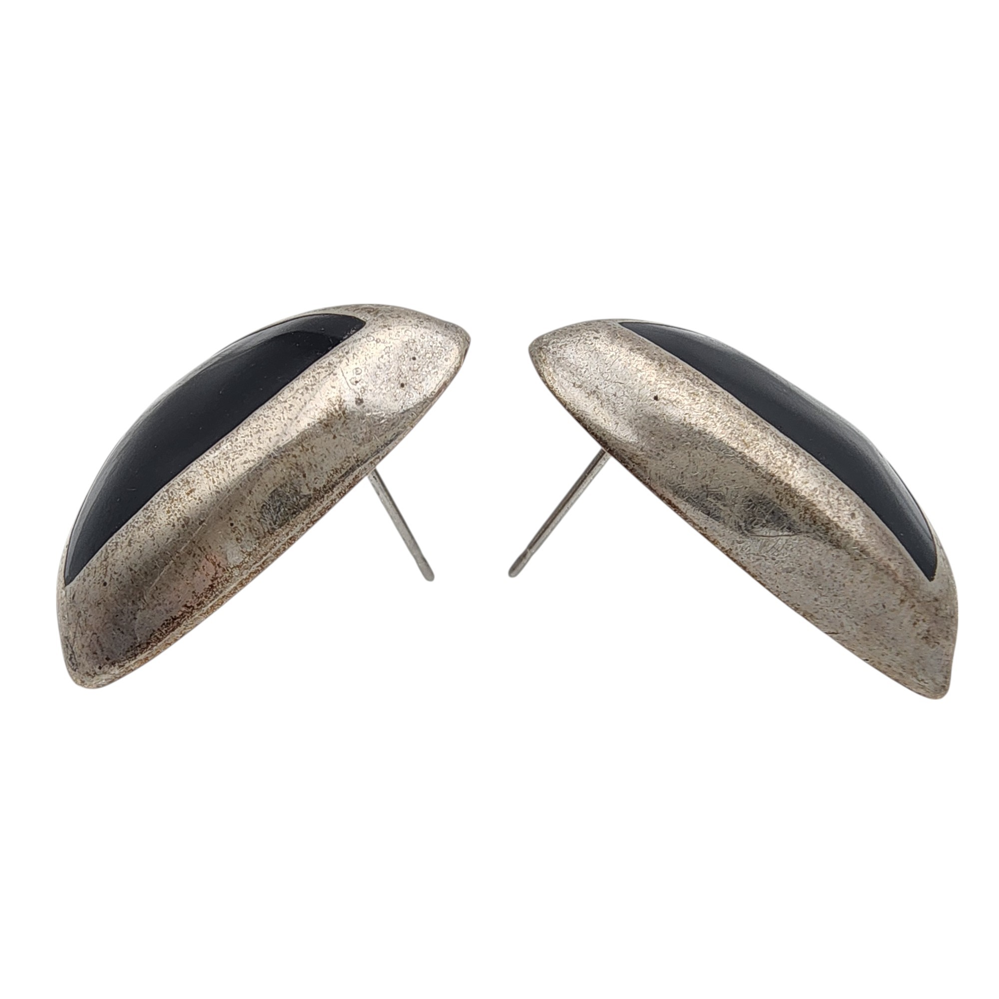 Mexico Sterling Onyx (or black enamel?) Earrings 12.6g