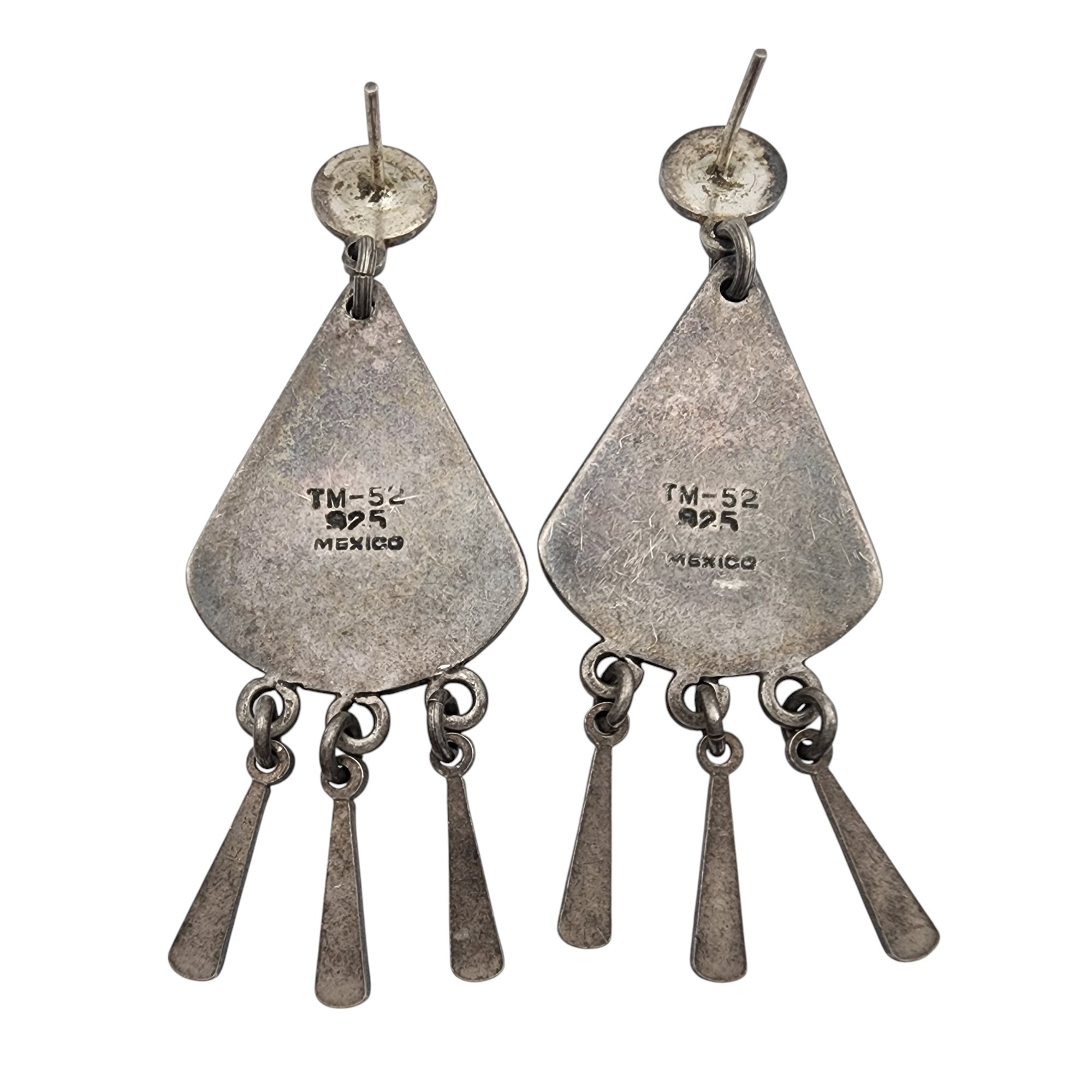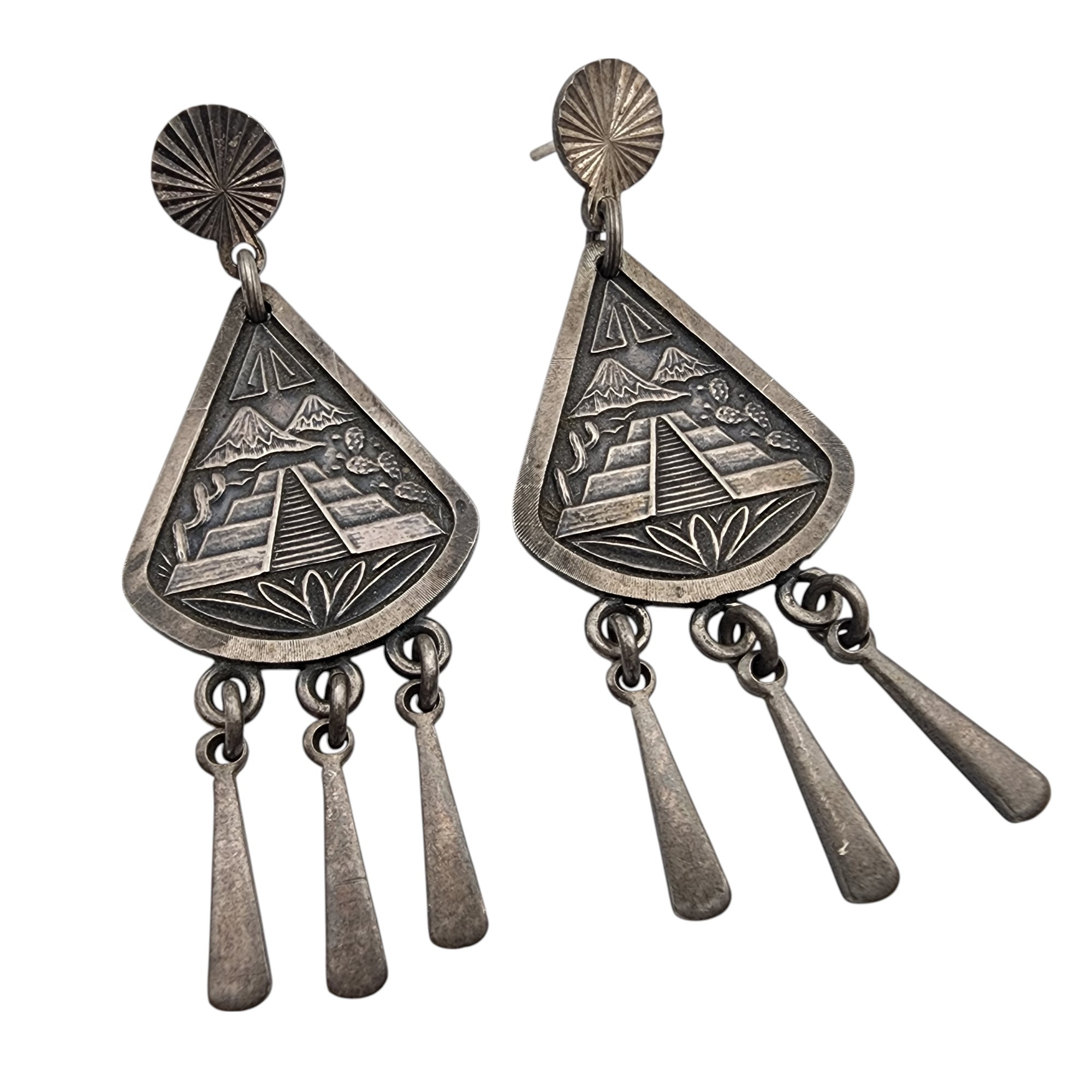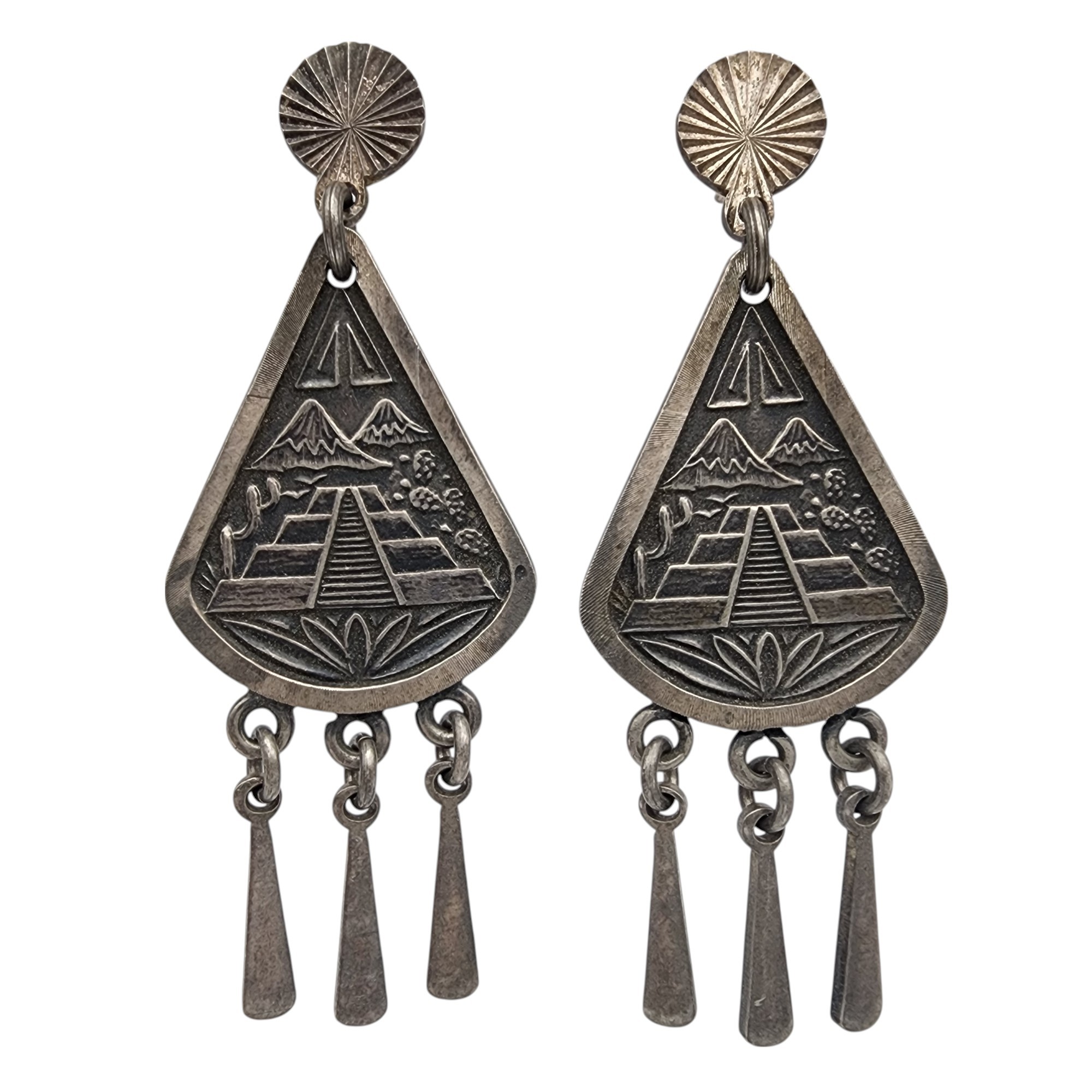 Signed Mexico Sterling Chichen Itza Dangle Earrings