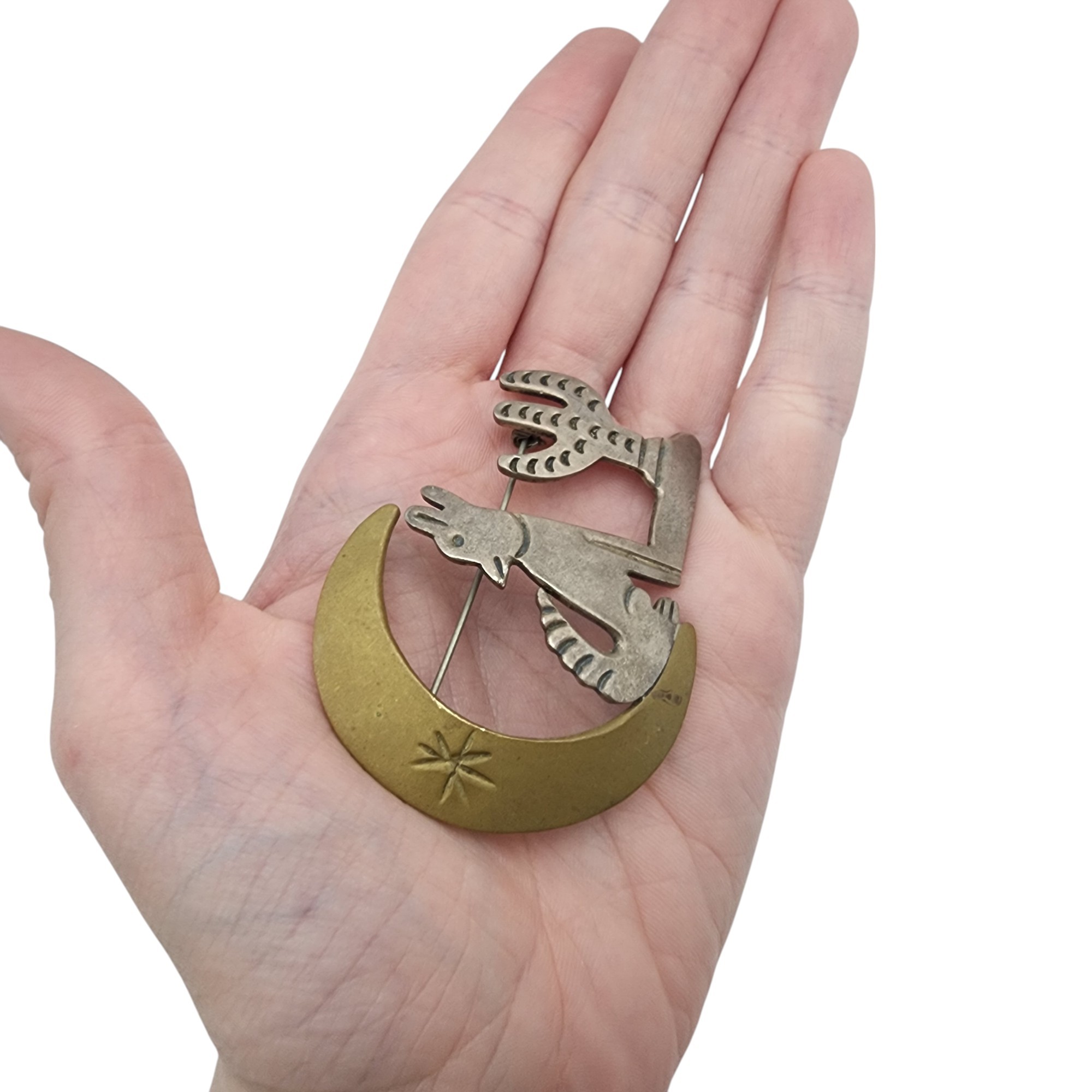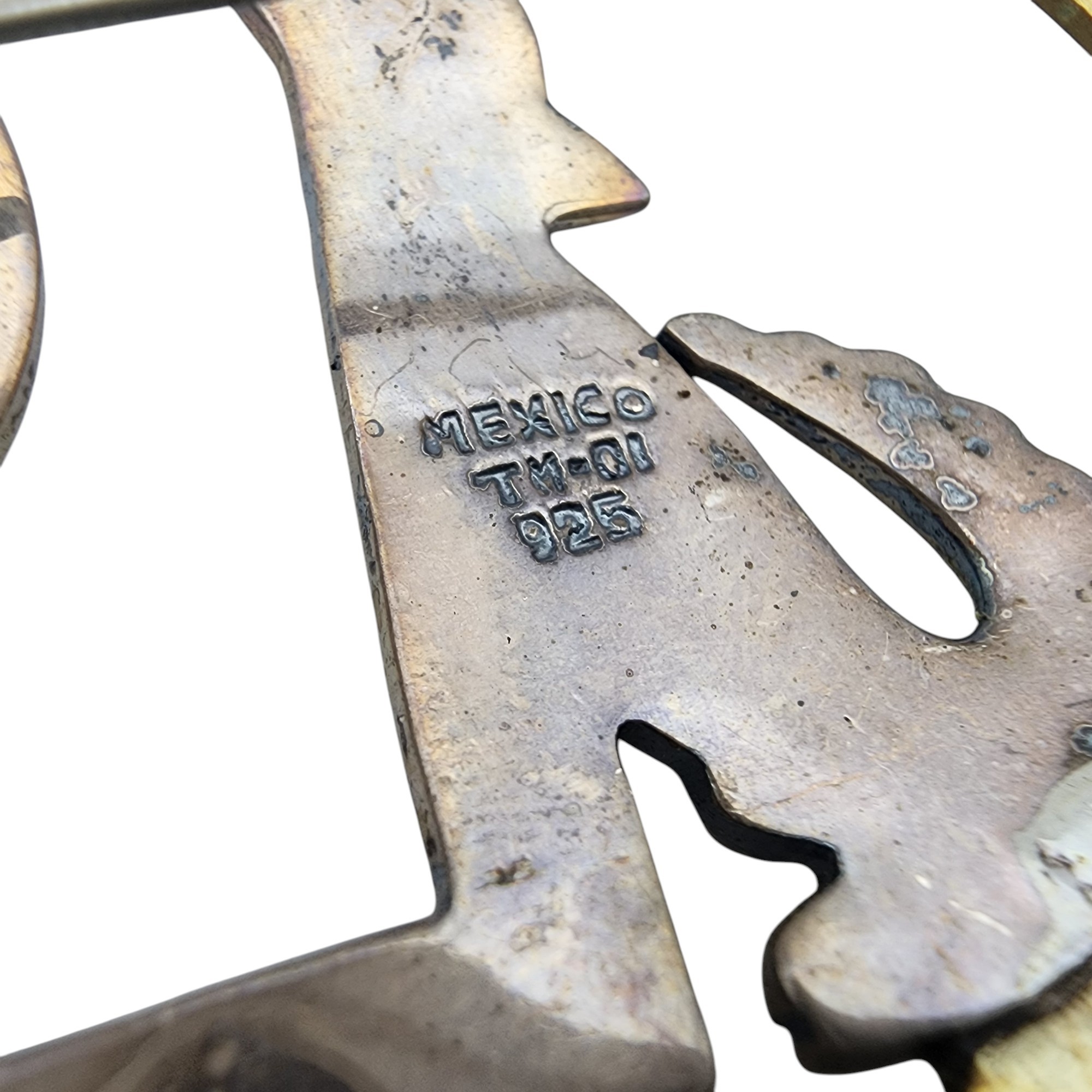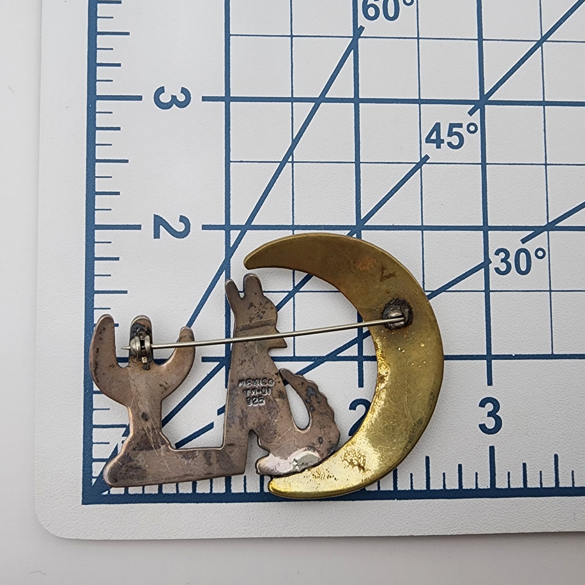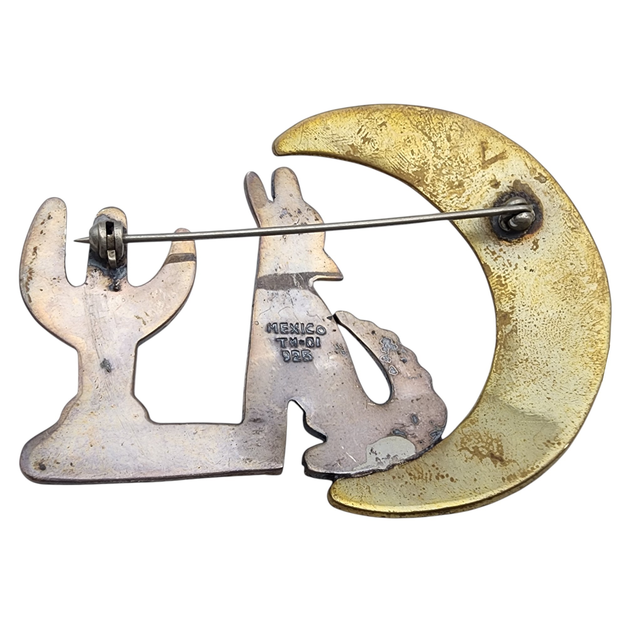 Big! Vintage Mexico TM-01 Taxco Sterling Howling Wolf, Moon, & Cactus Brooch 21.7g