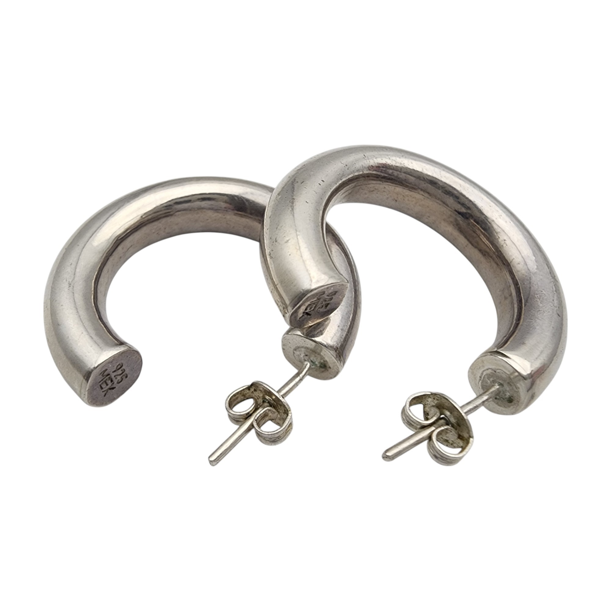 Mexico Sterling Hollow Form Hoop Earrings 7g