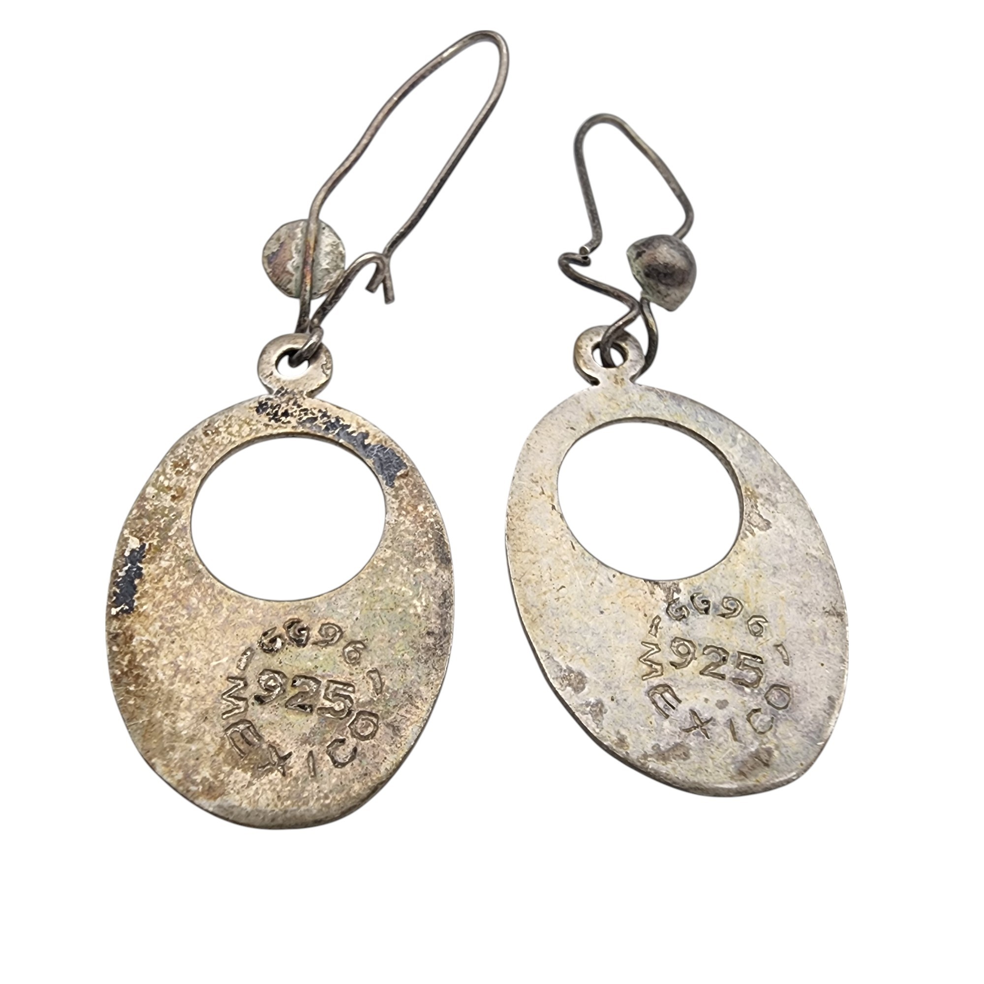 Signed GG 96 Mexico Sterling Etched Earrings 3.1g, as is – earring hooks out of shape