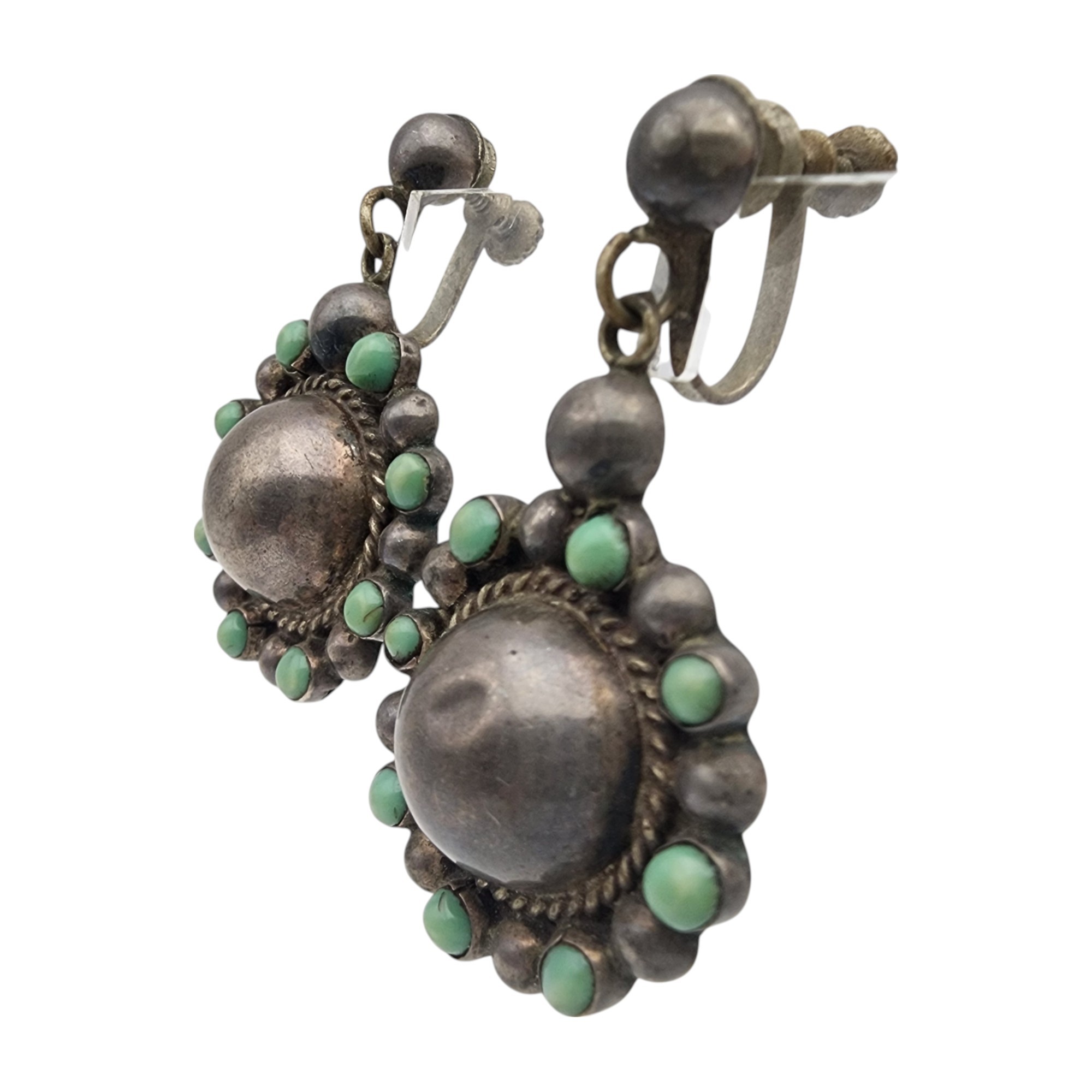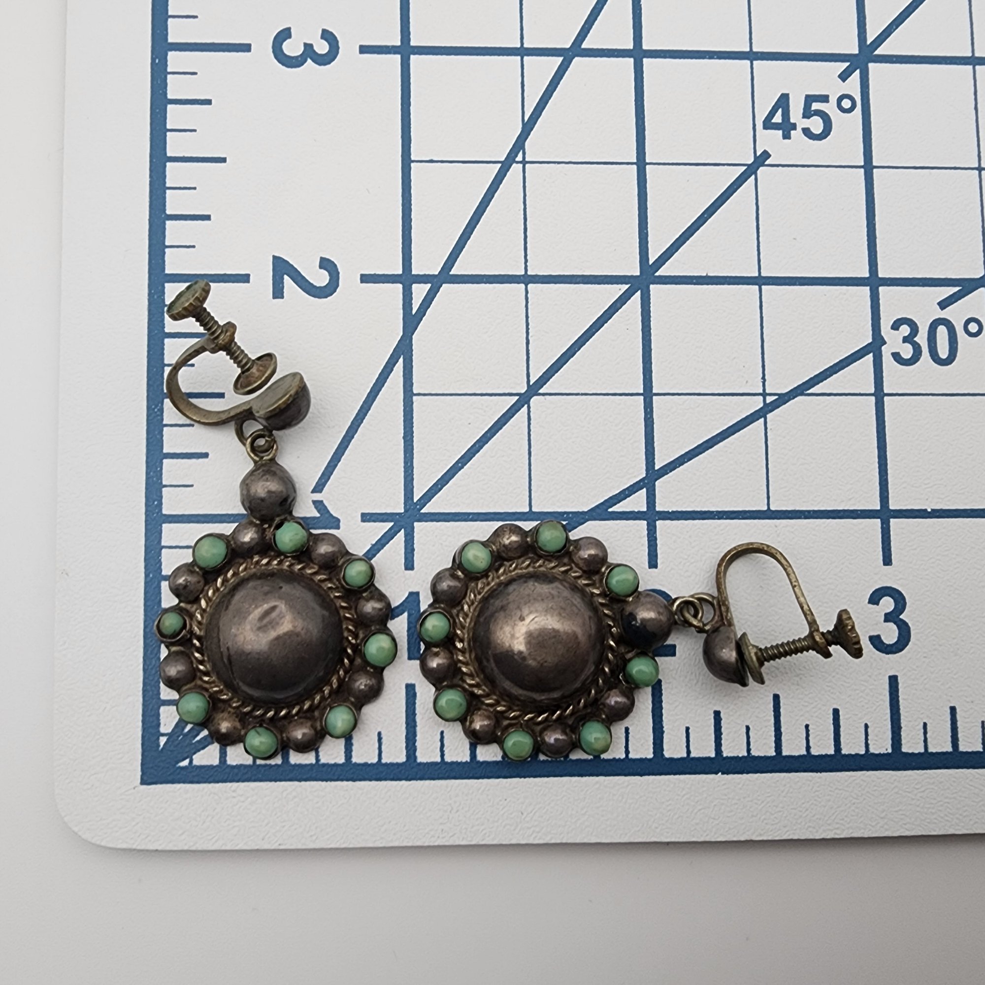 Signed VCC Mexico Sterling Turquoise? Dome Earrings 8.9g, as is – dimples in dome of earring