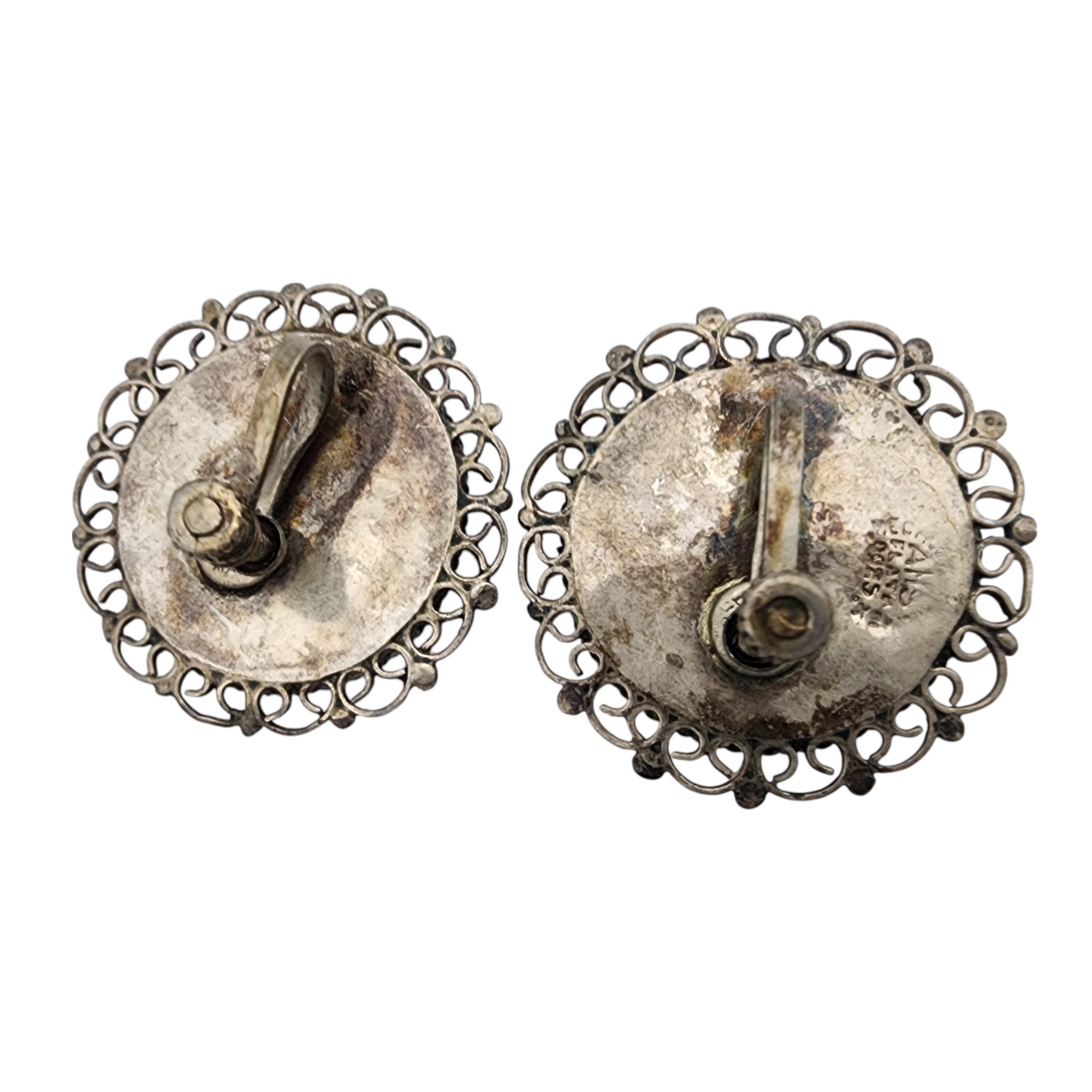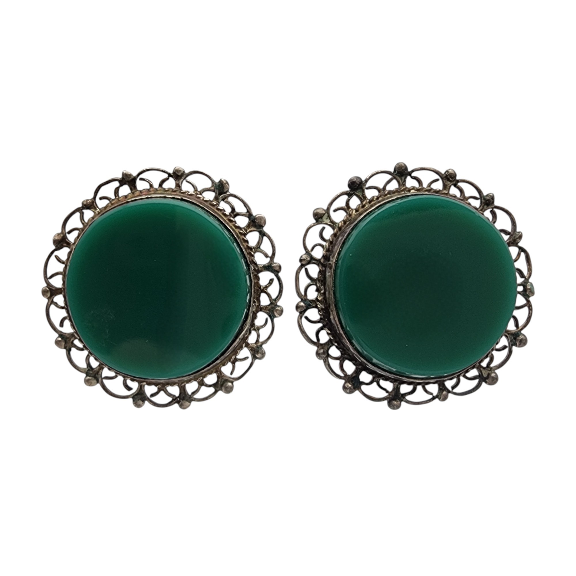 Signed Mexico Sterling Green Onyx Disc Earrings