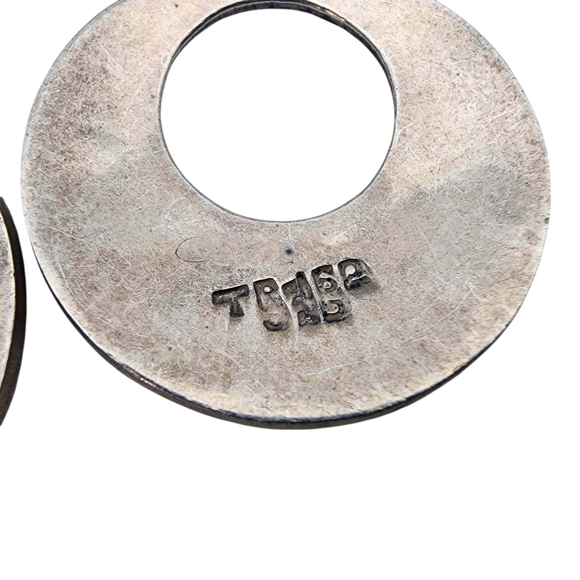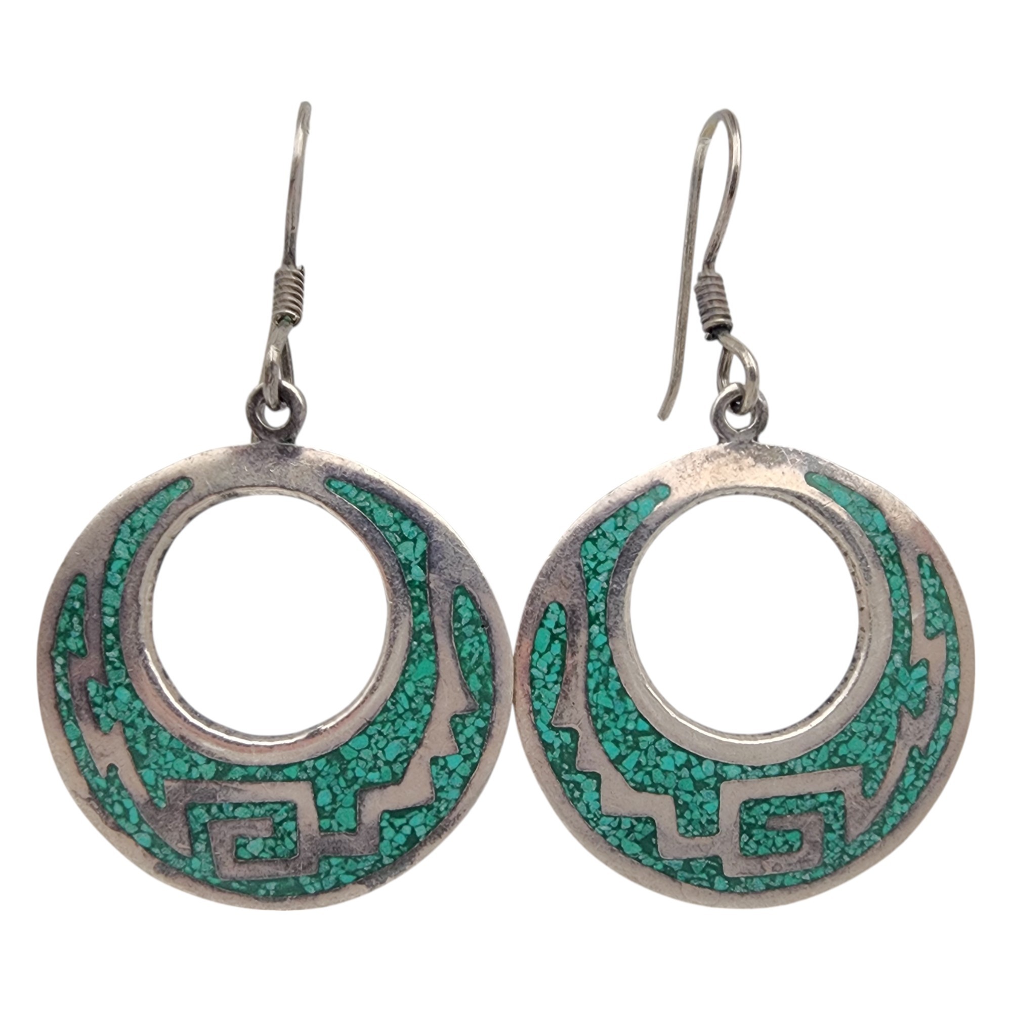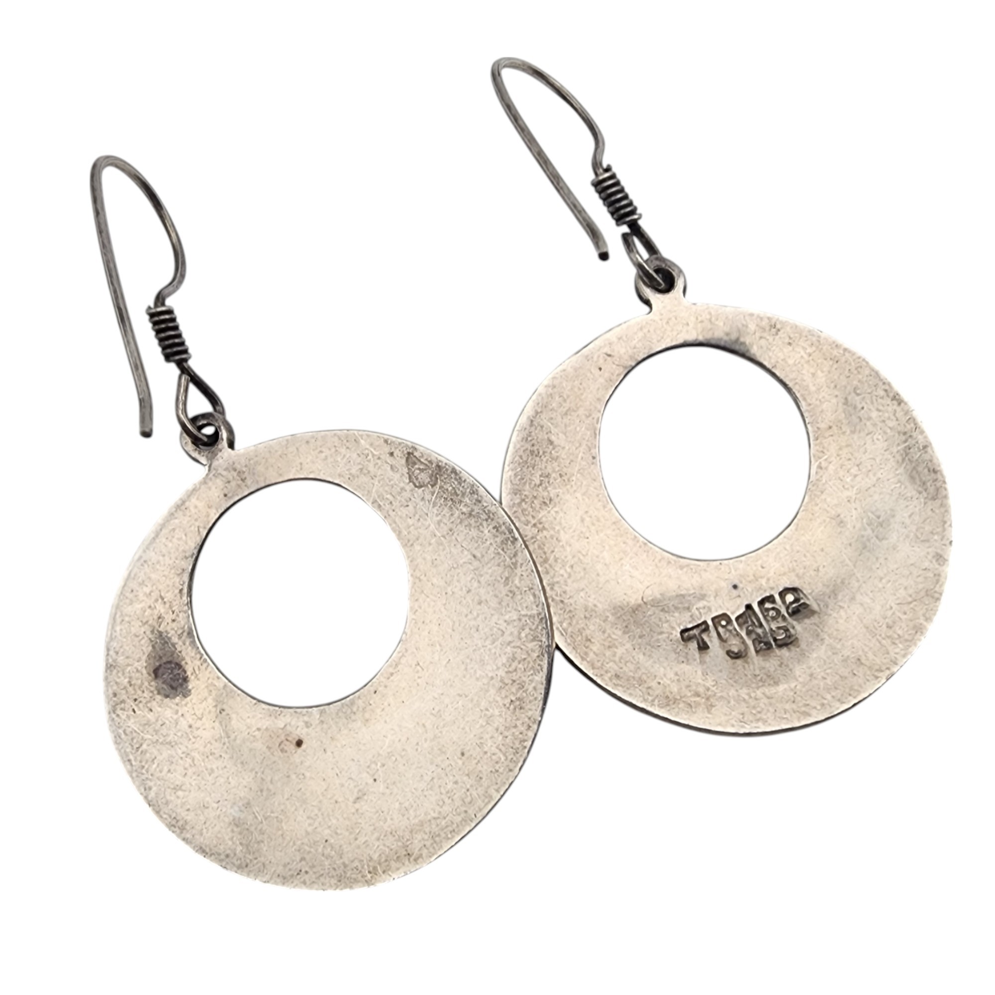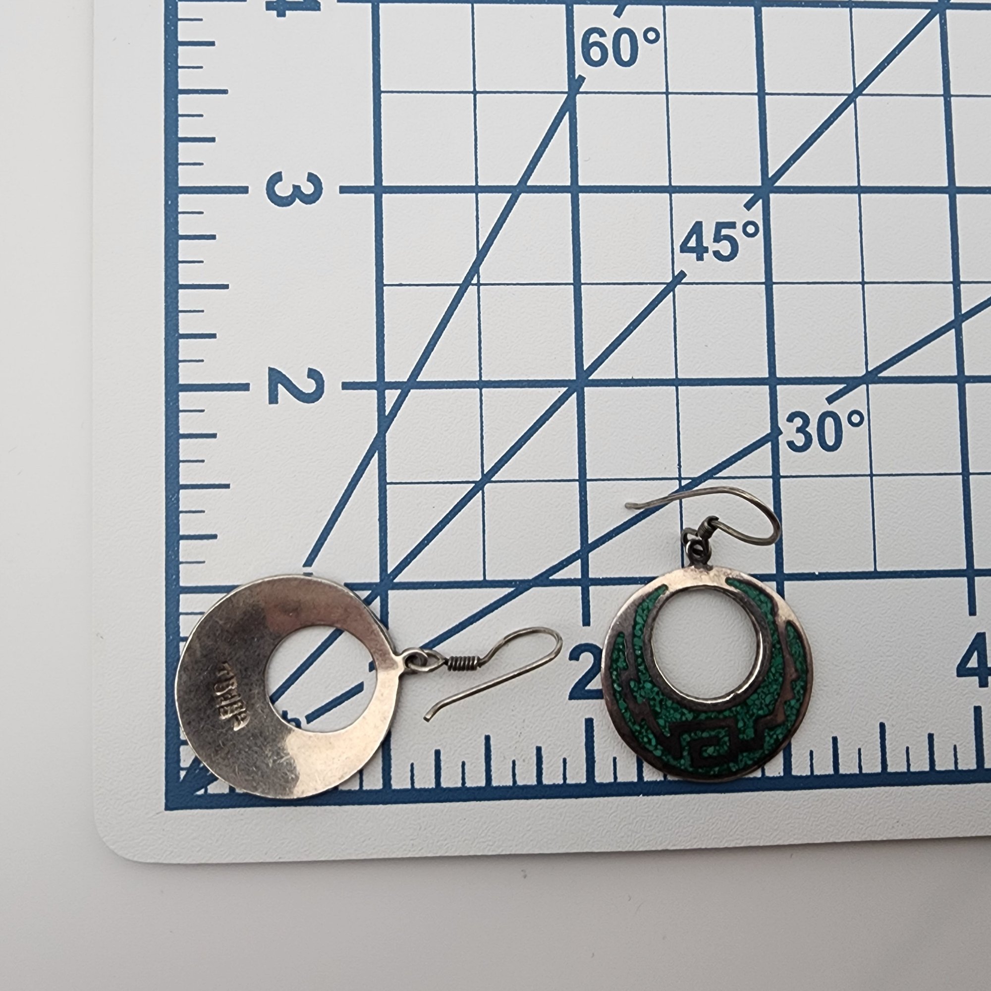 TR-162 Taxco Mexico Sterling Crushed Inlay Earrings 10.2g