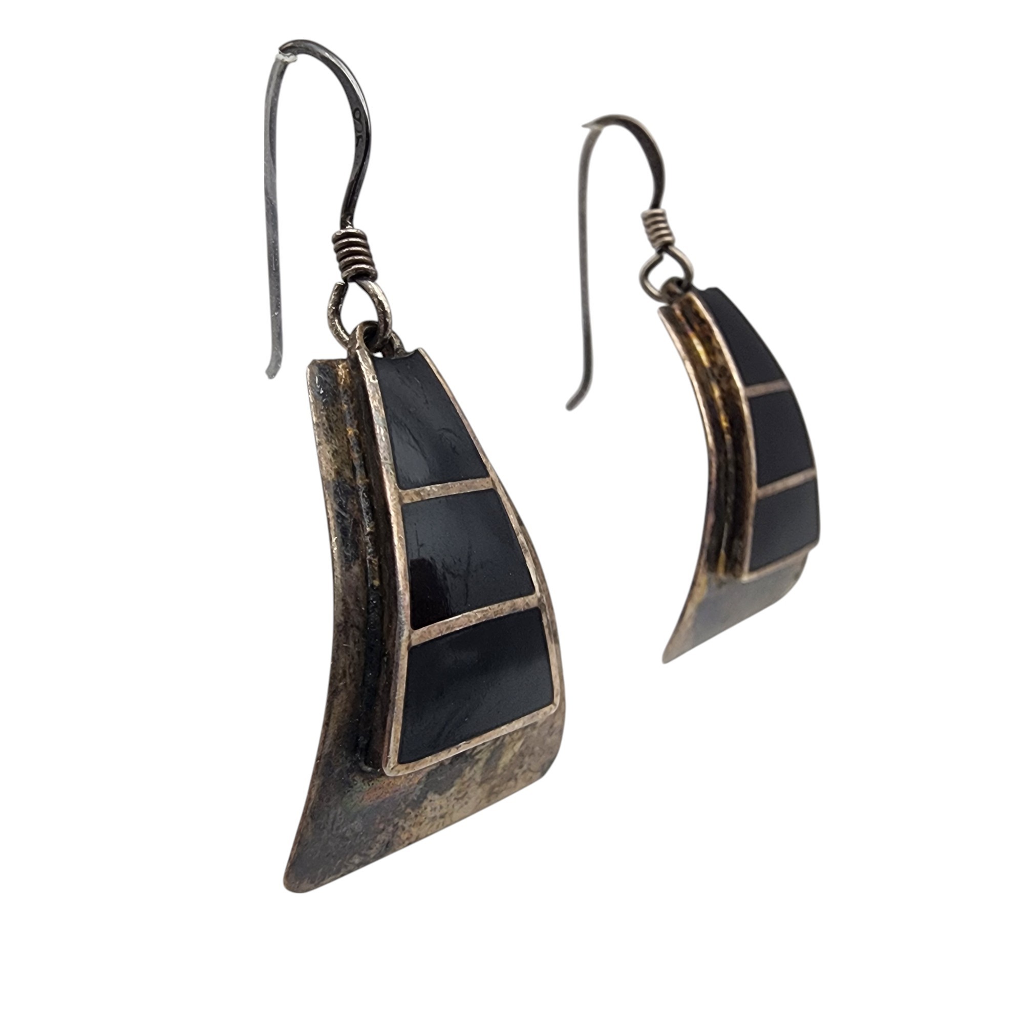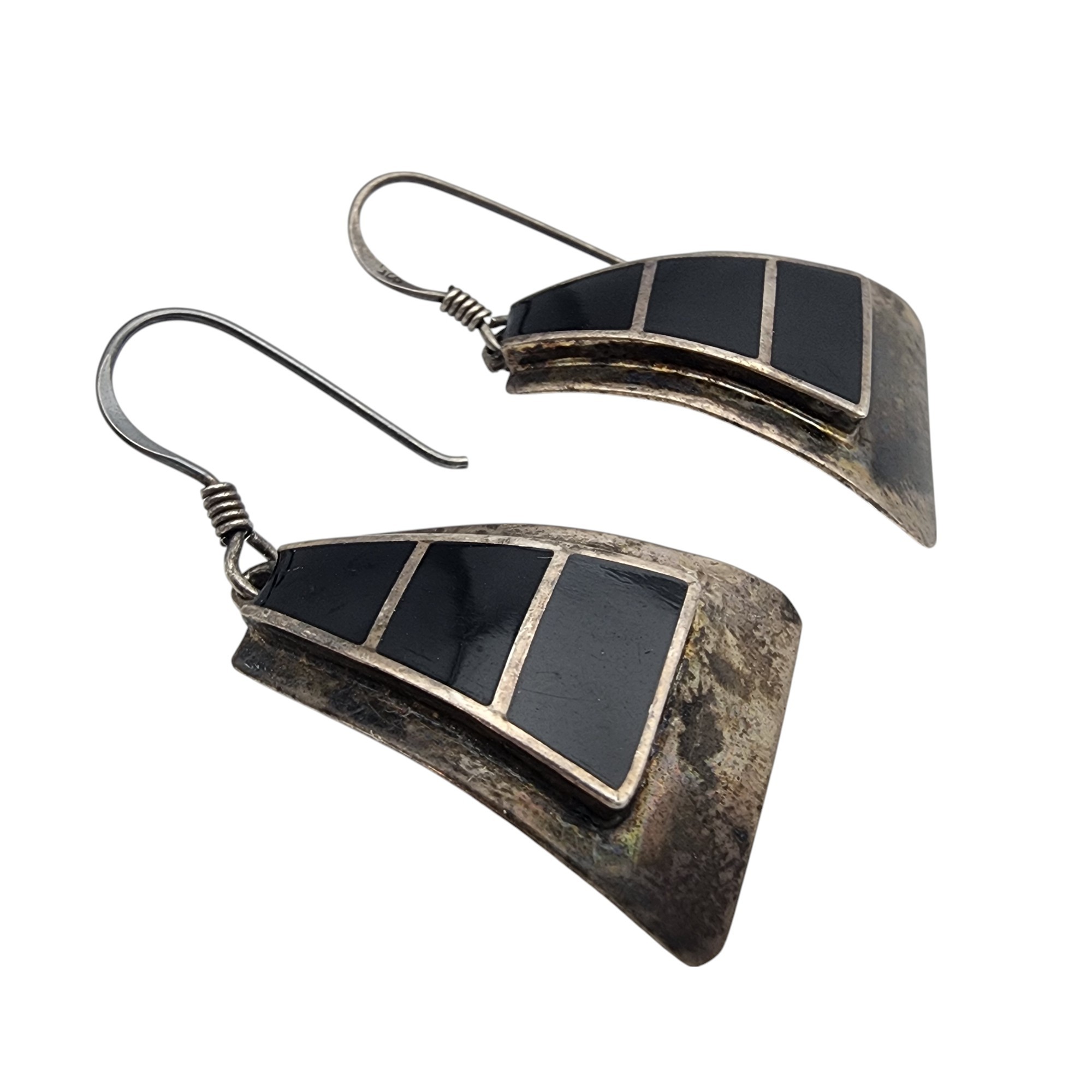 TN-47 Taxco Mexico Sterling Onyx Dangle Earrings 5g