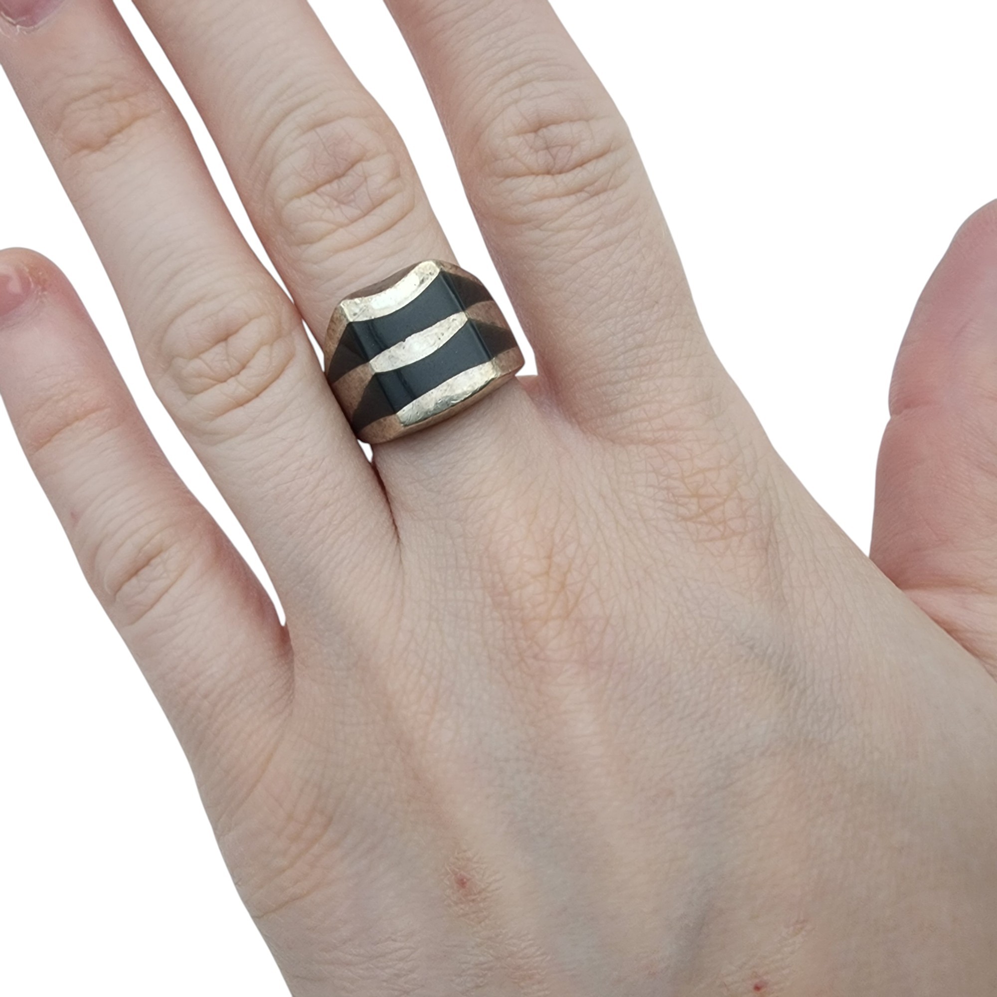 Mexico Sterling Onyx Inlay Ring Sz 7.75, 14.5g
