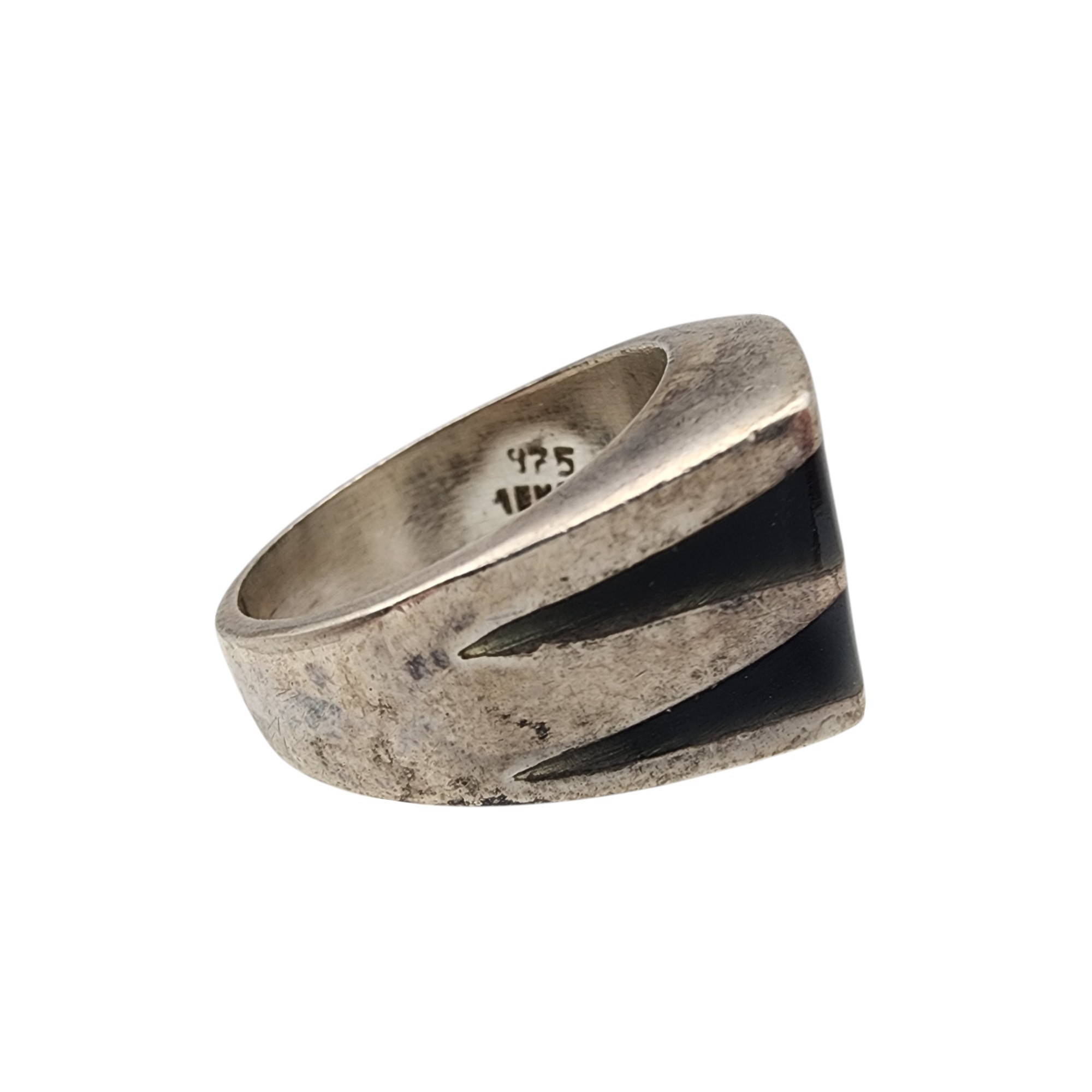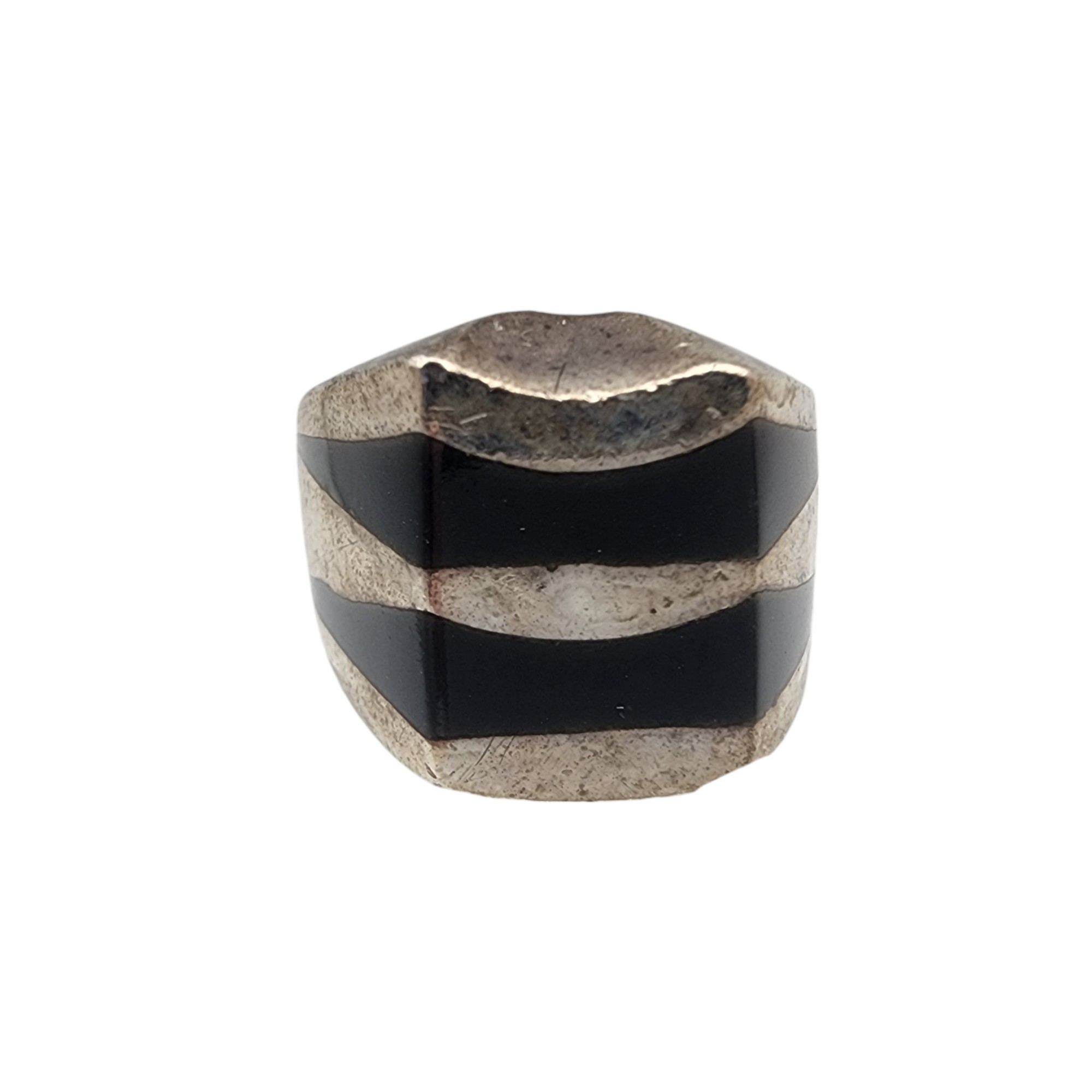 Mexico Sterling Onyx Inlay Ring Sz 7.75