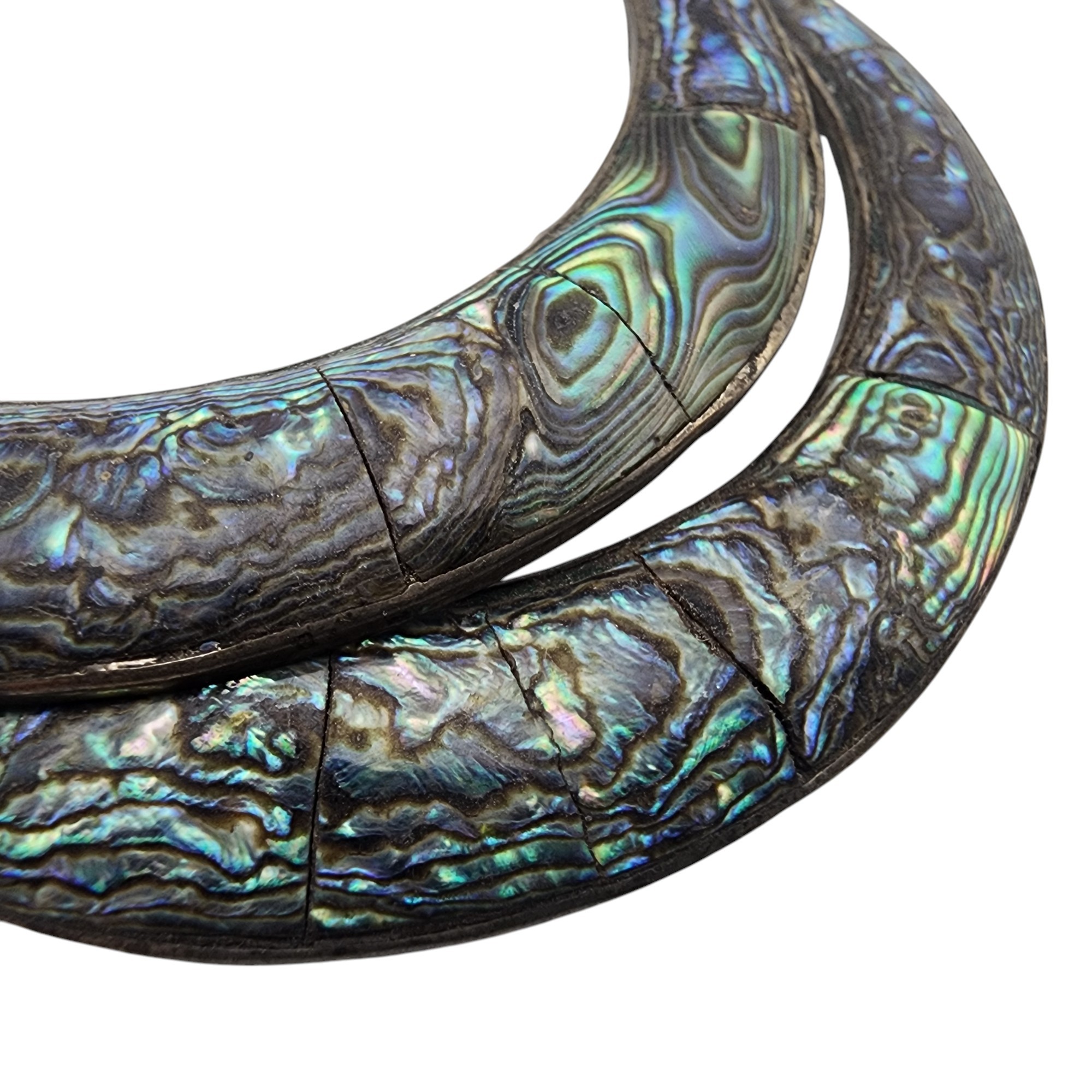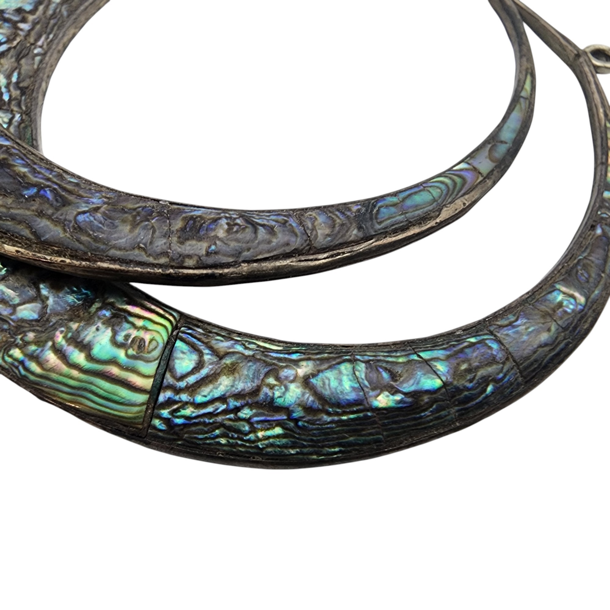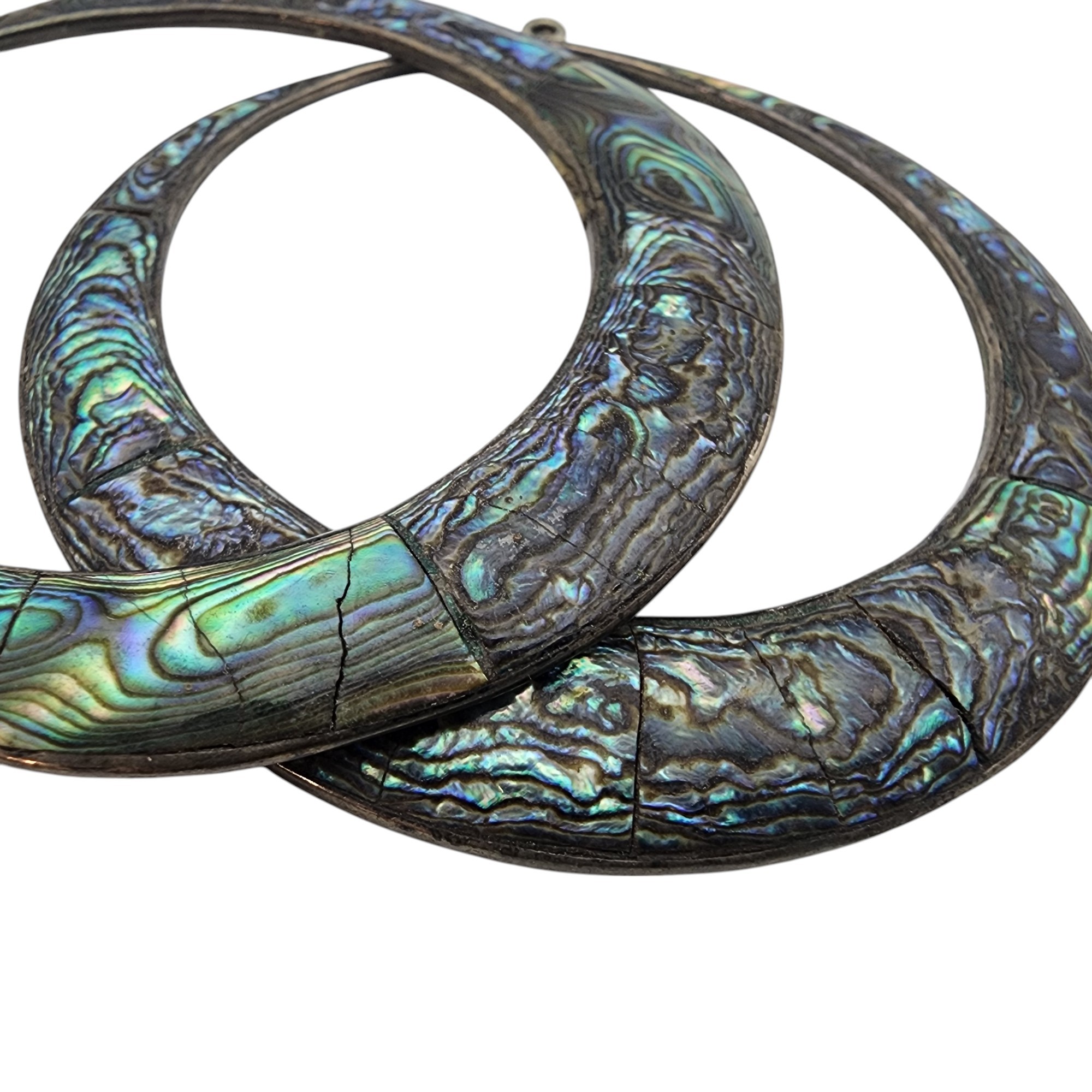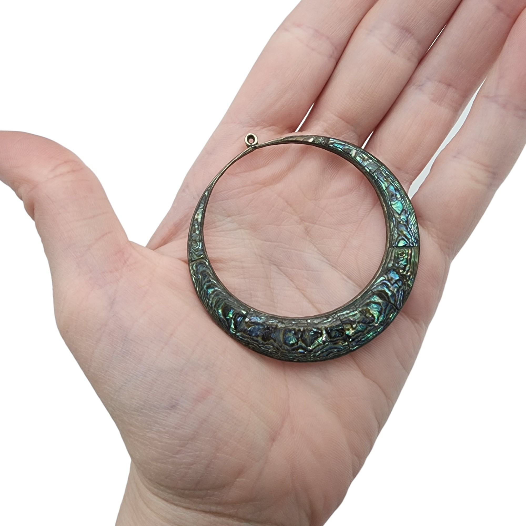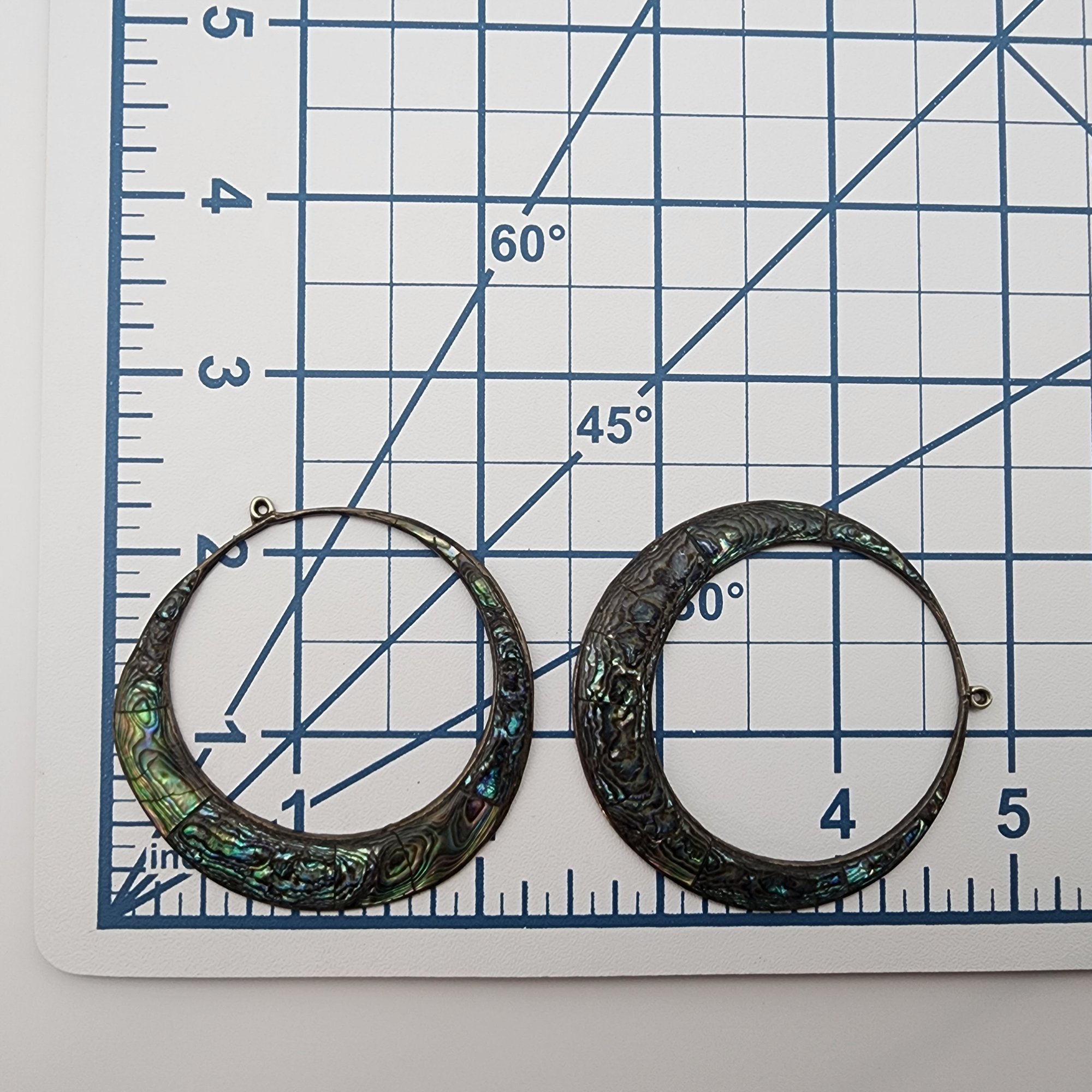 Large! Vintage Mexico Sterling Abalone Hoop Earring Pieces, 12.1g, as is – breaks in abalone, no hooks
