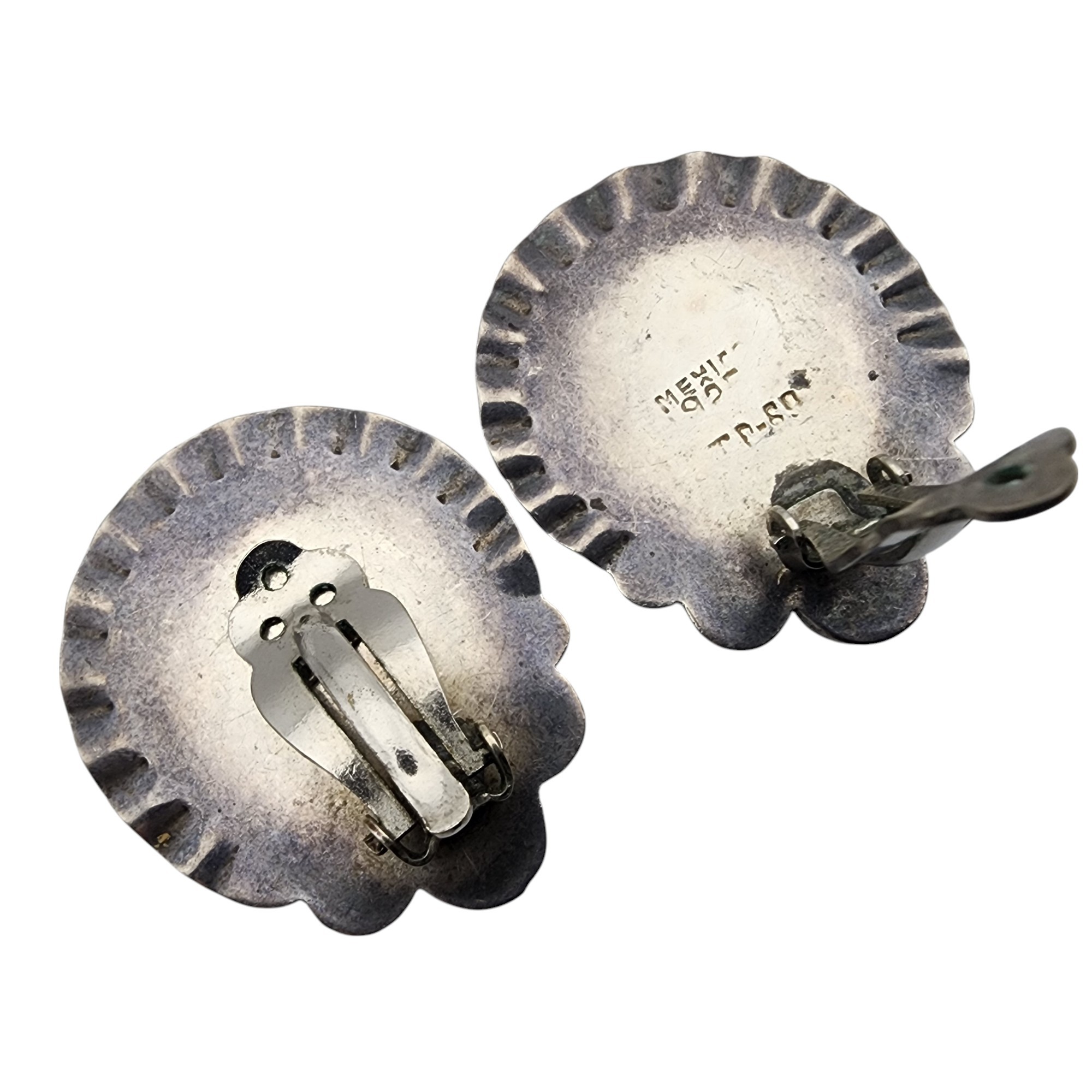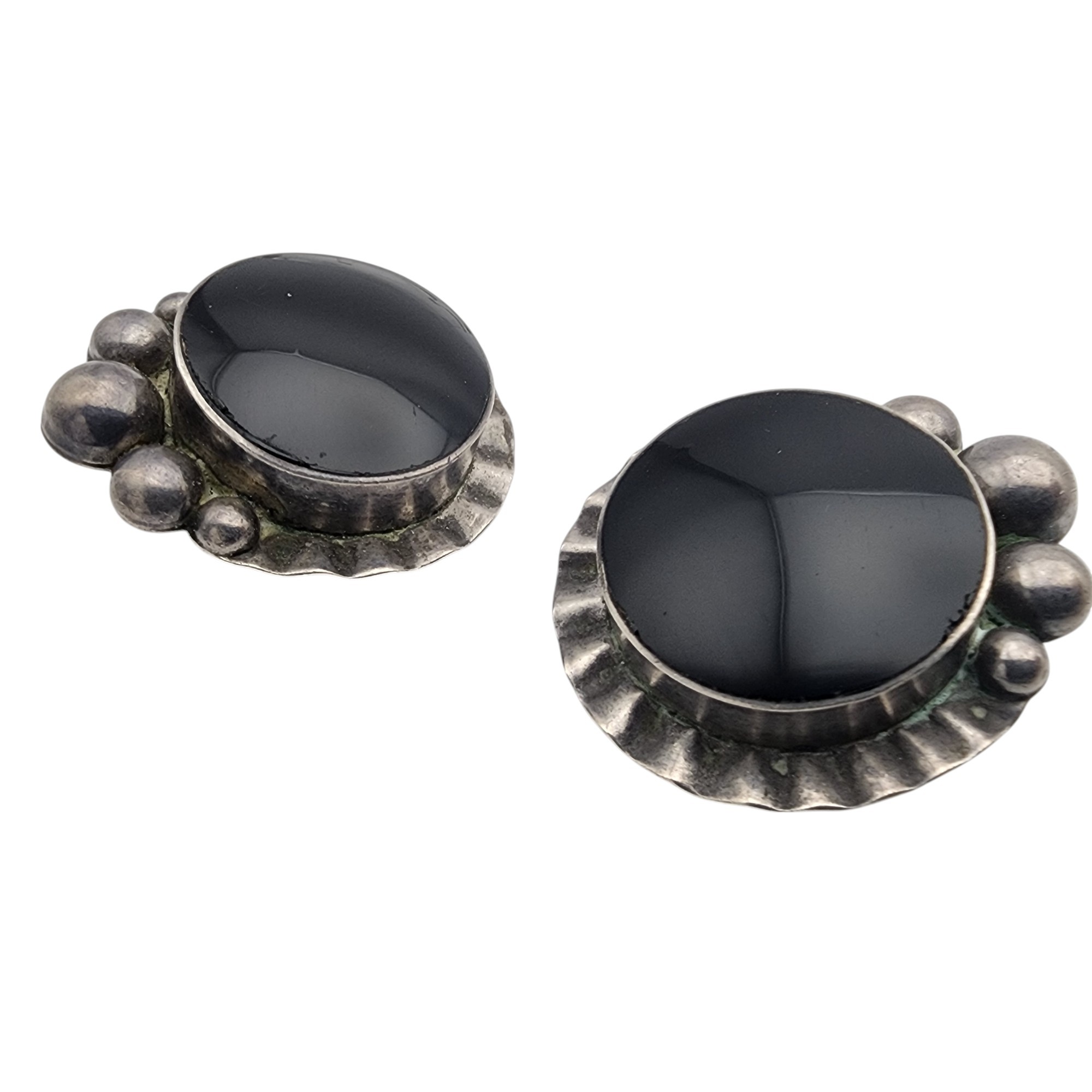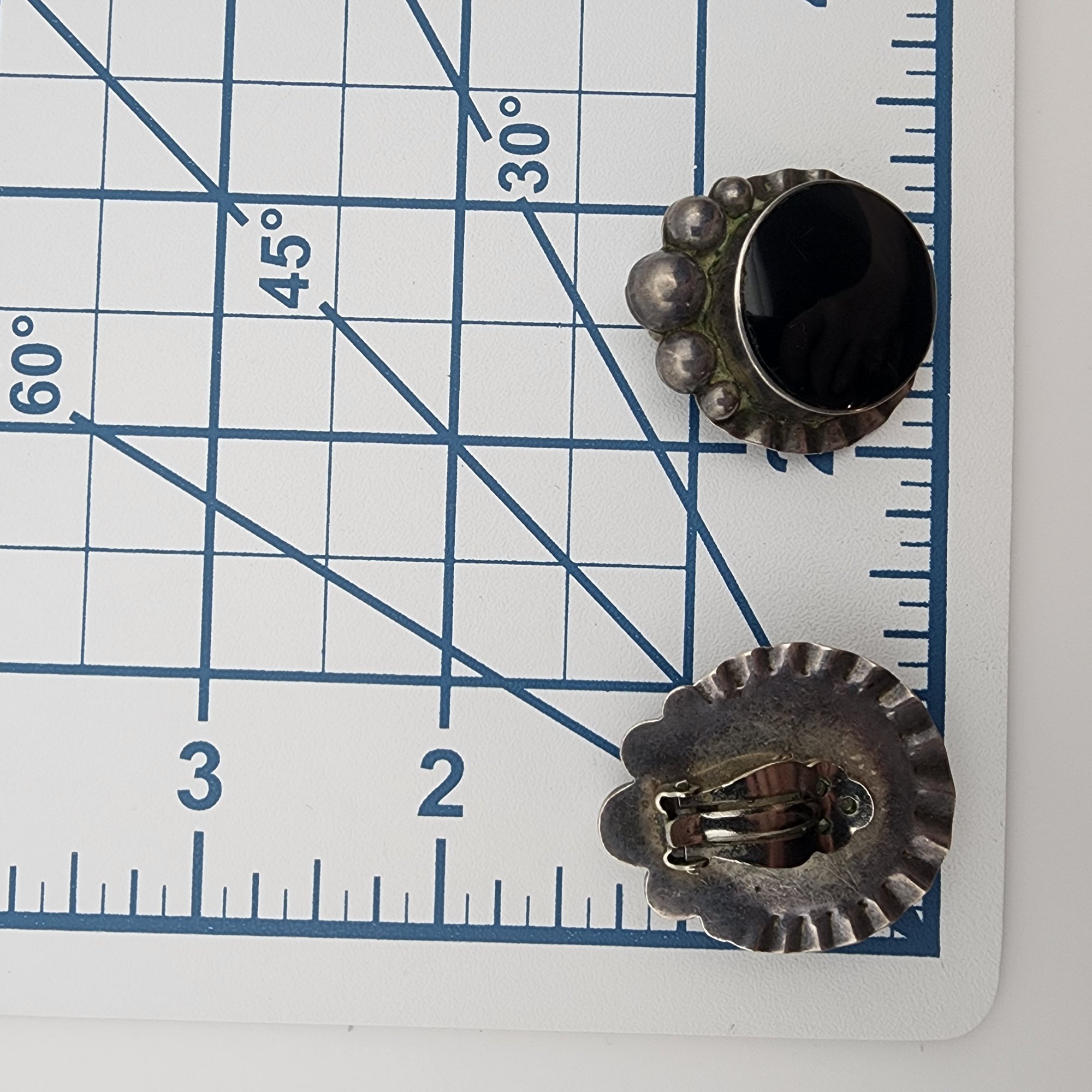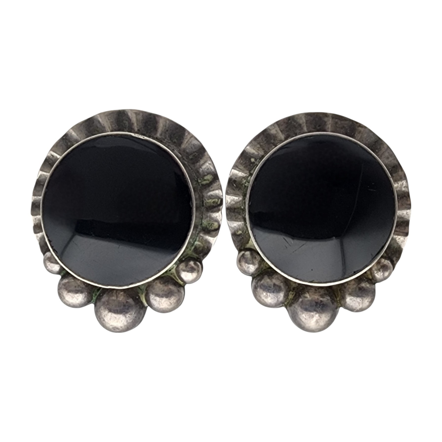 Gorgeous Vintage Taxco Sterling Onyx Large Medallion Earrings 25.7g, surface scratches and wear along edges – see photos
