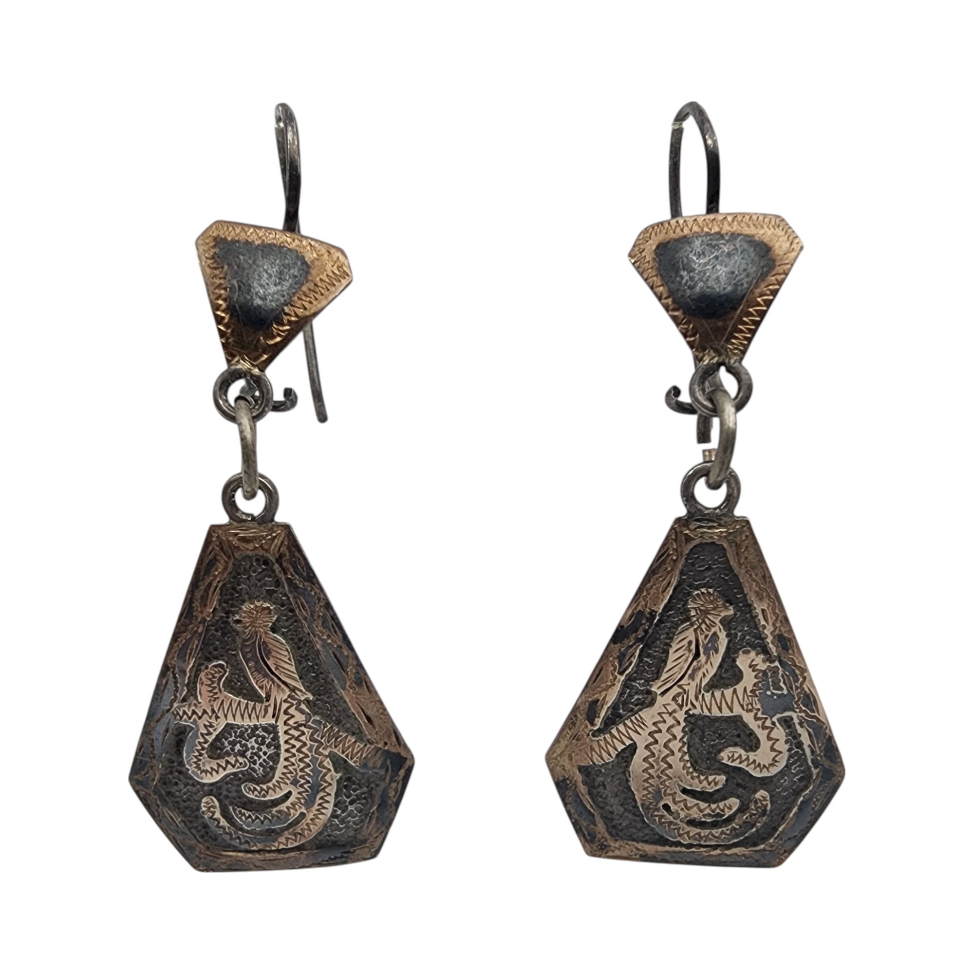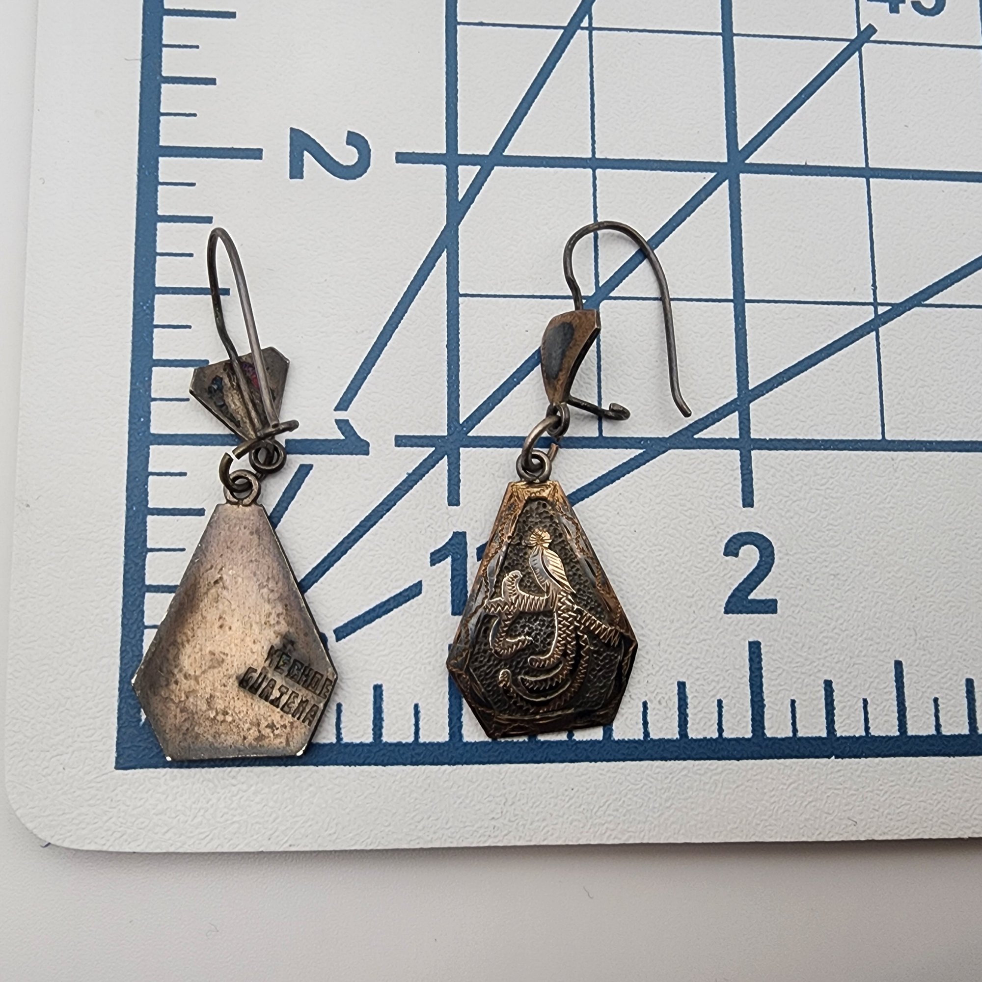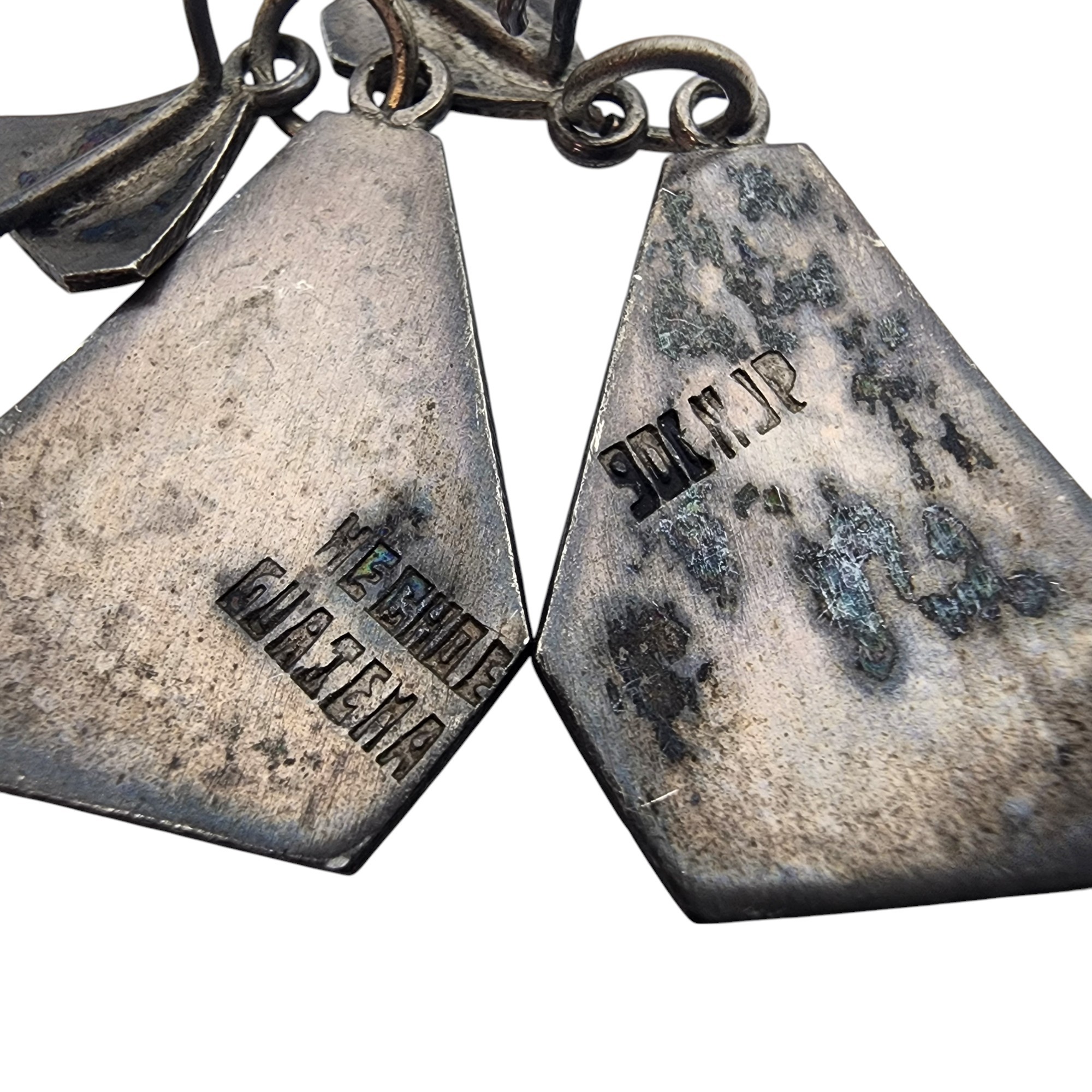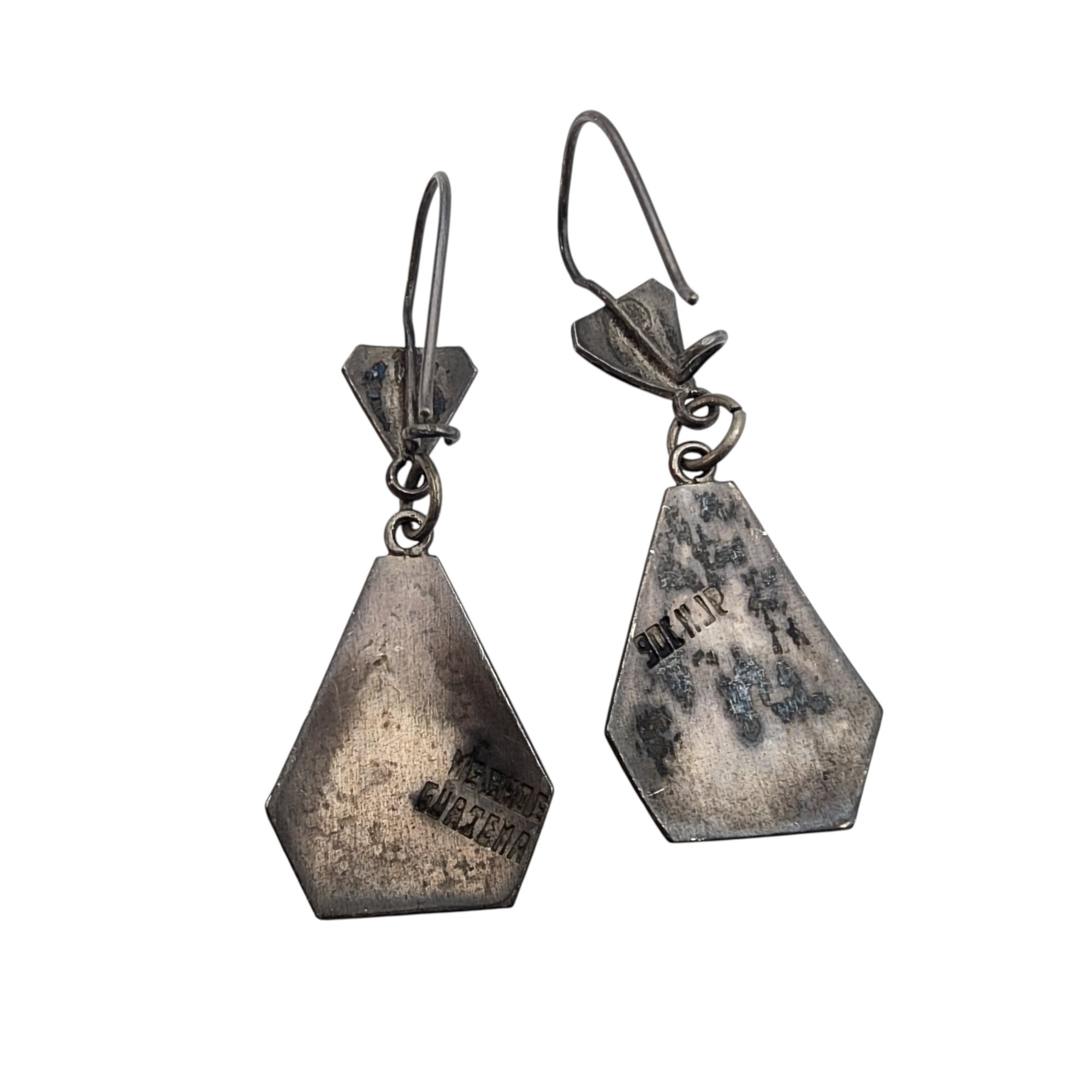 Signed RJP Vintage Guatemala 900 Silver Quetzal Dangle Earrings, 4.4g