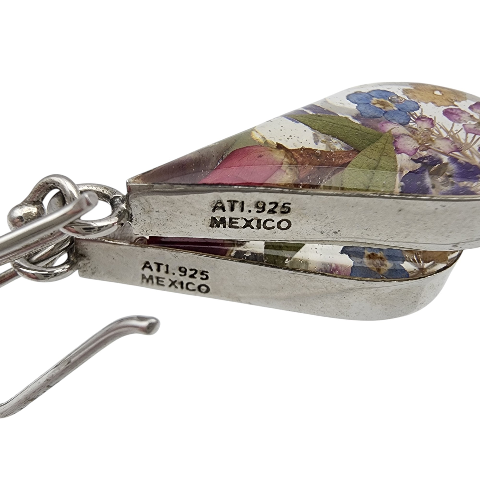 Signed ATI Mexico Sterling Resin Flower Earrings 4.7g