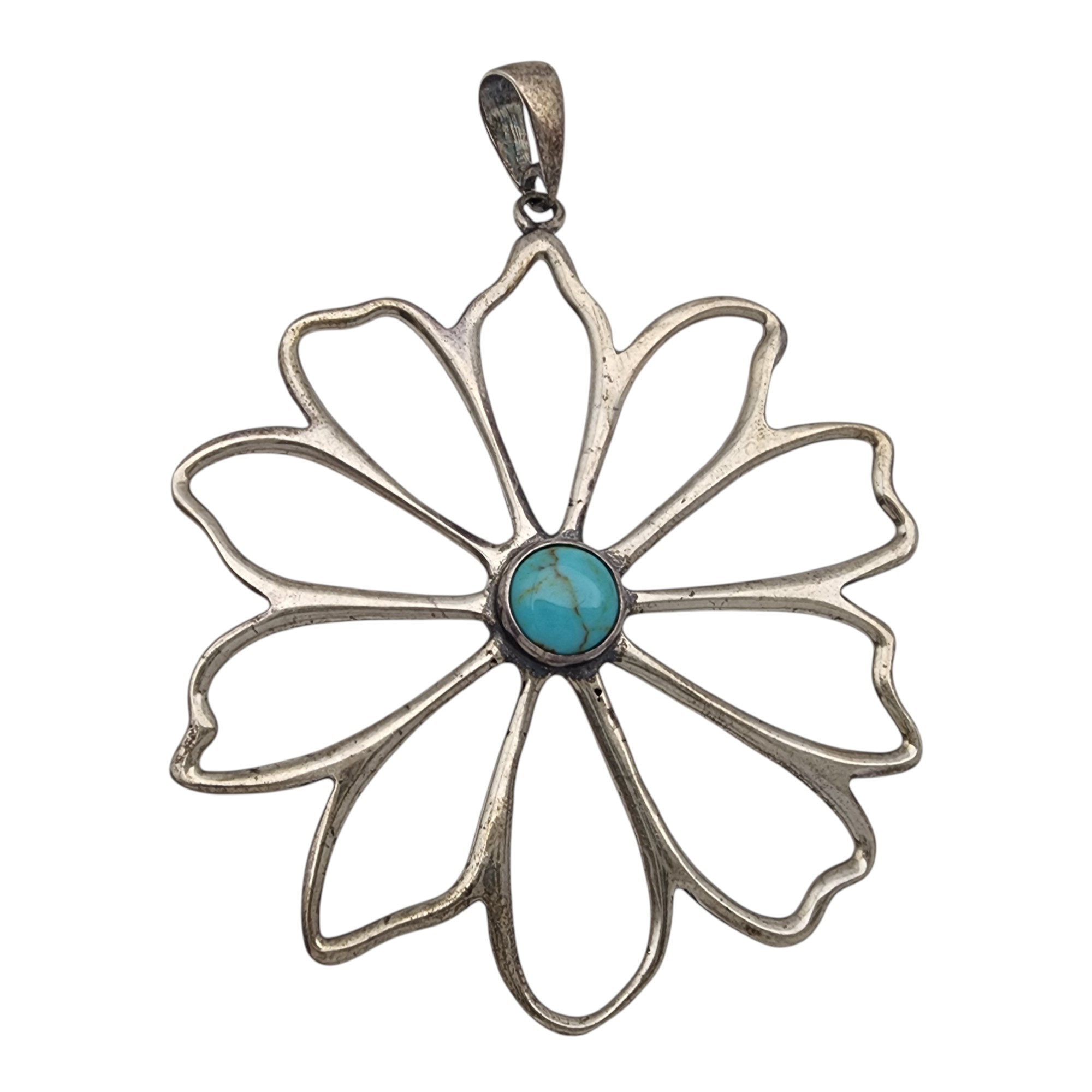 Mexico Sterling Large Flower Pendant, 10.1g