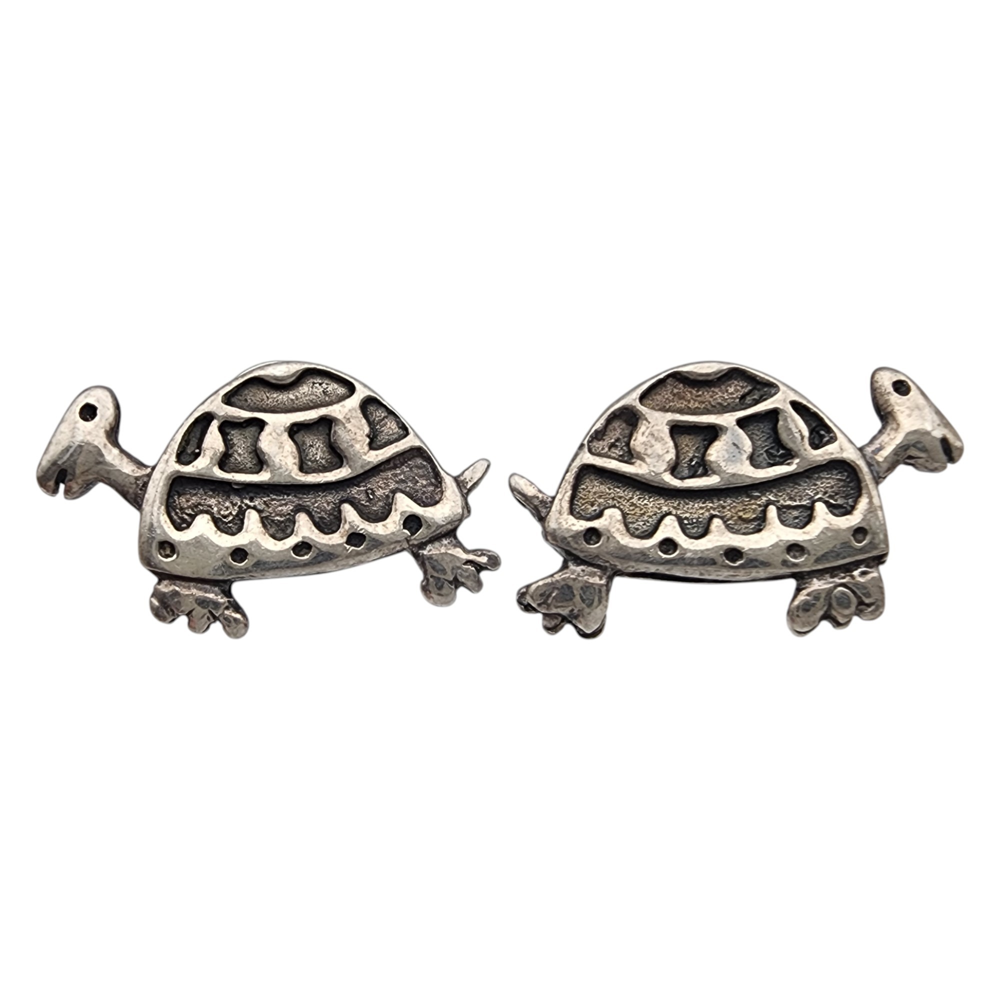 Signed Maceiras Mexico Sterling Turtle Earrings