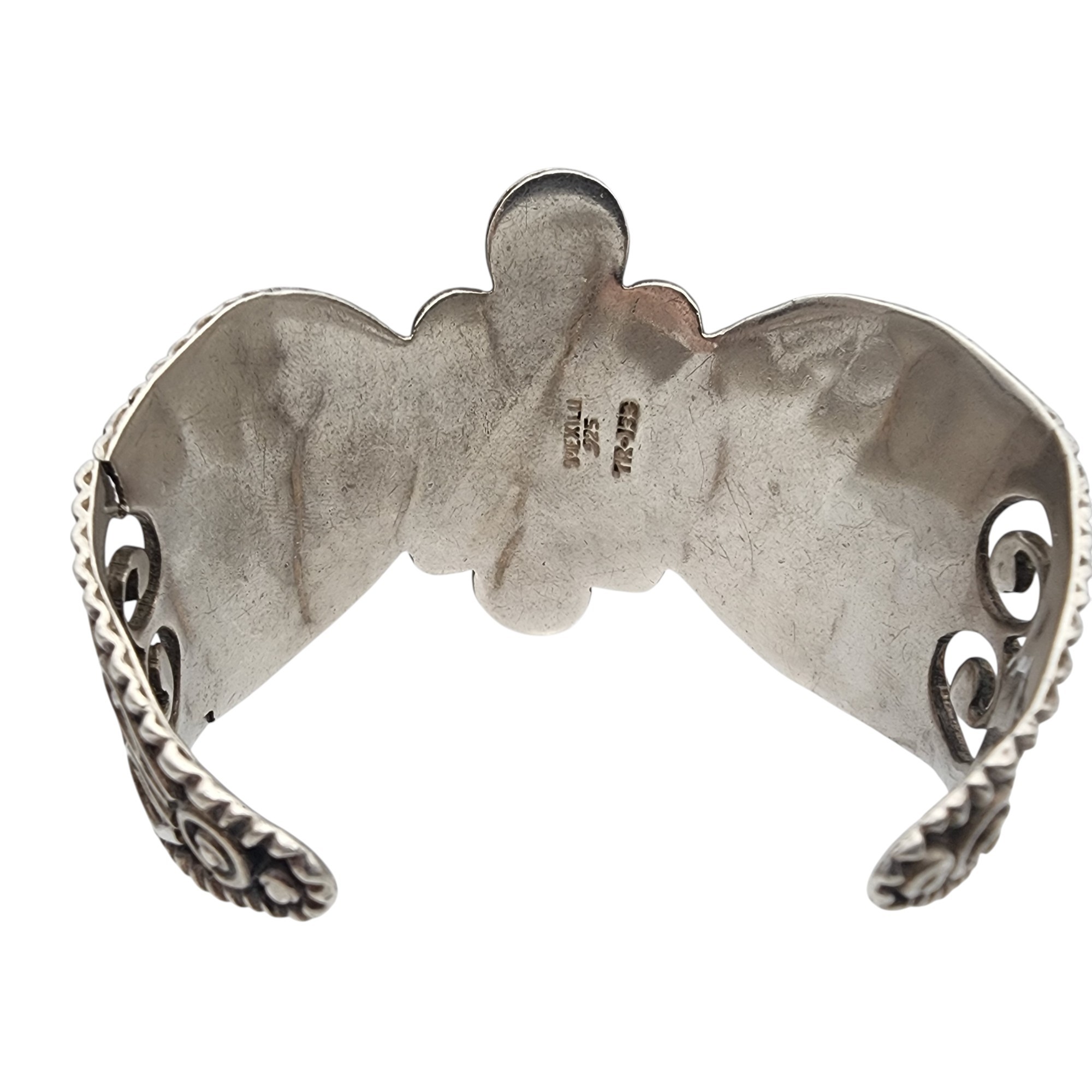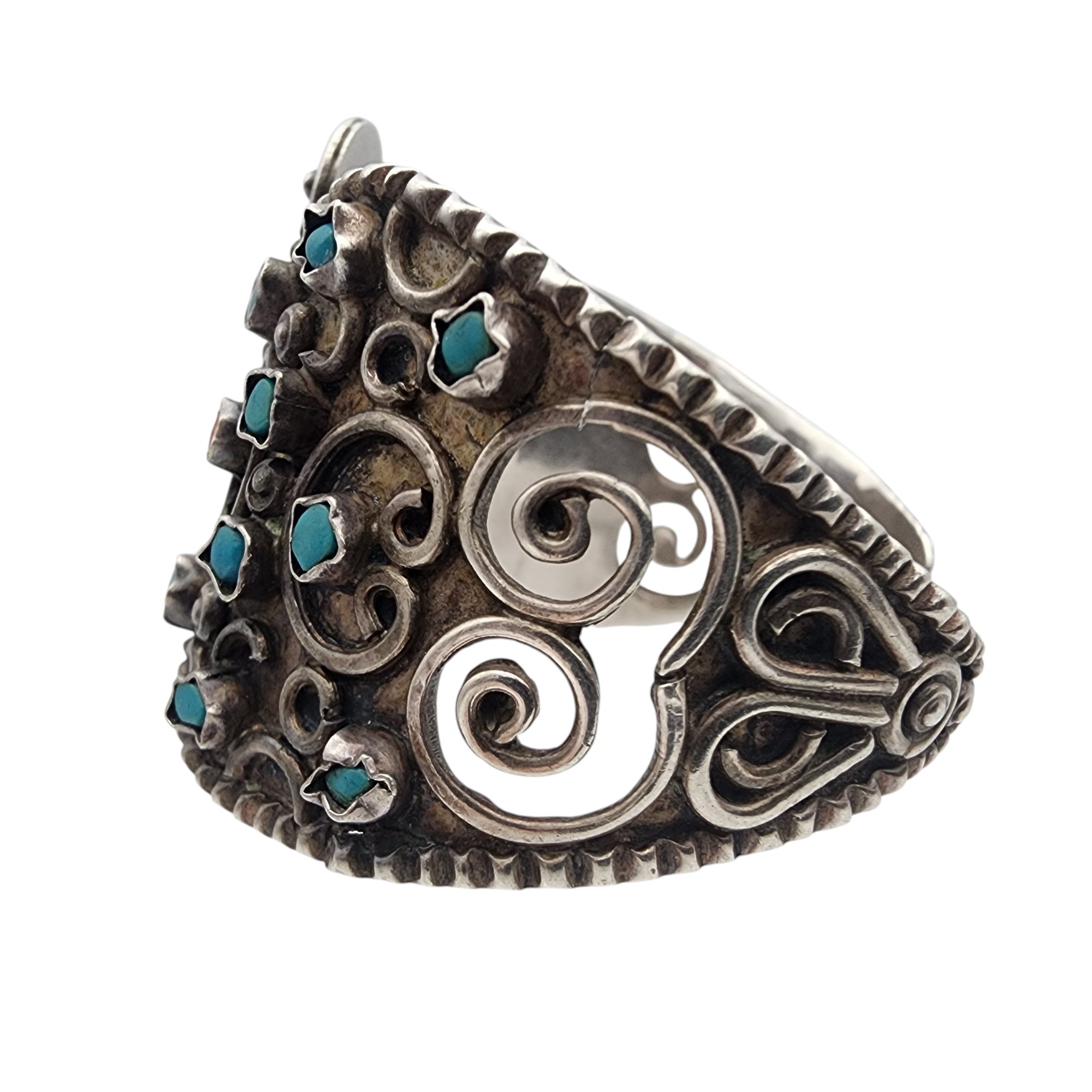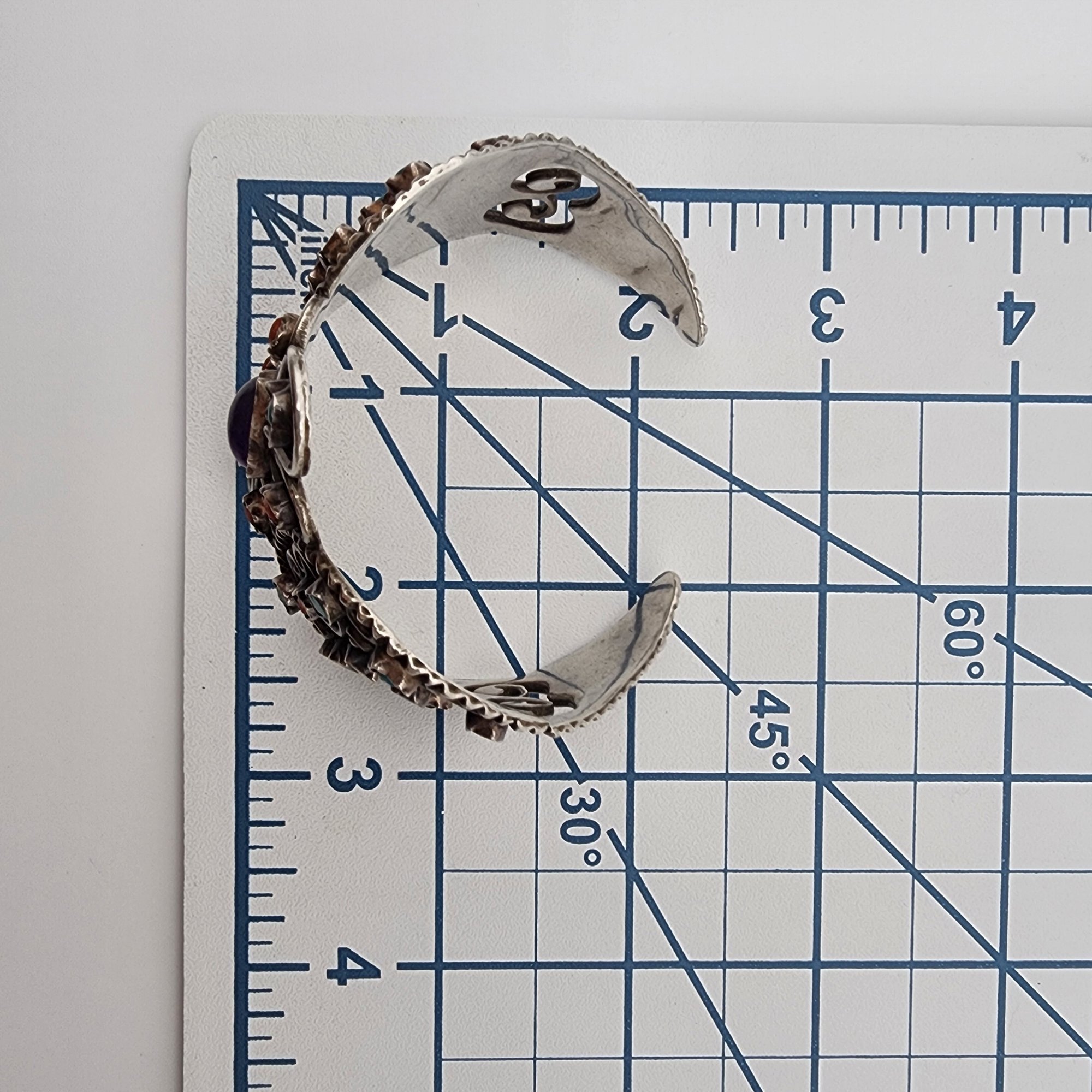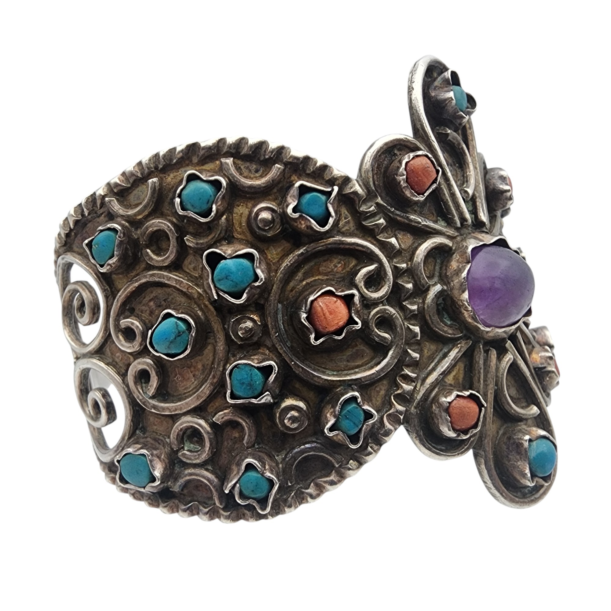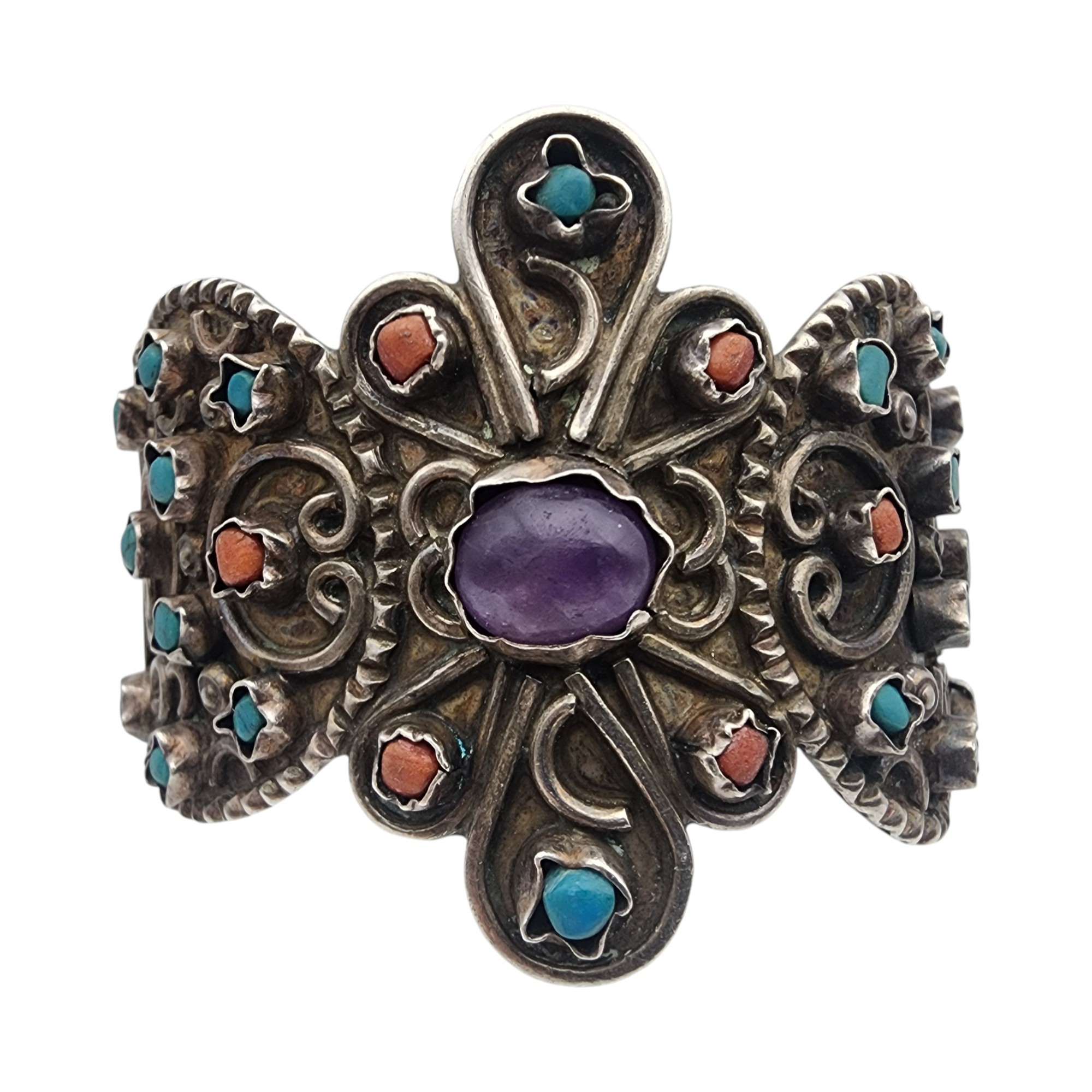 MATL Style TR-133 Taxco Mexico Sterling Turquoise, Amethyst, Coral Baroque Cuff Bracelet 44.2g – Note: there is a small crack – see photos