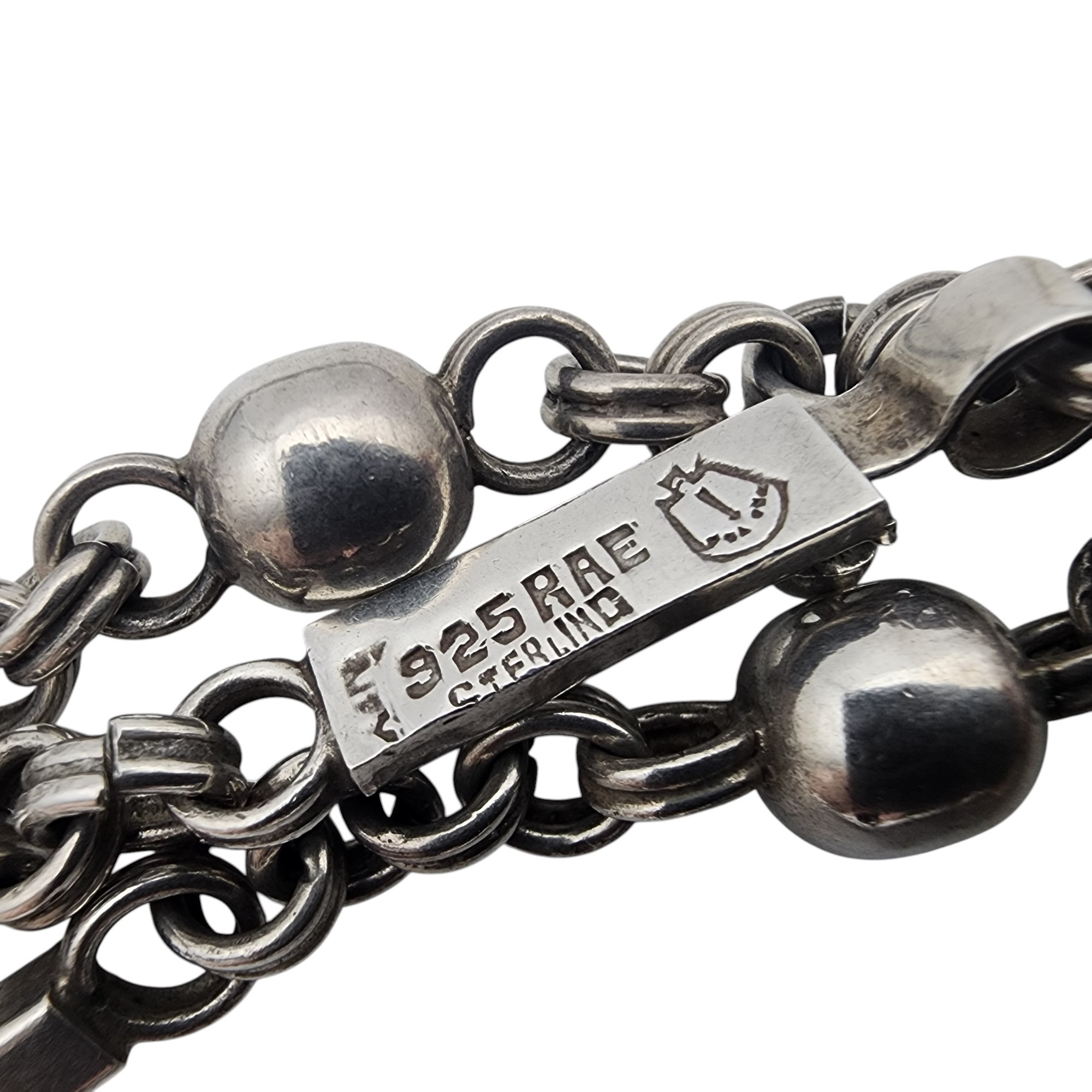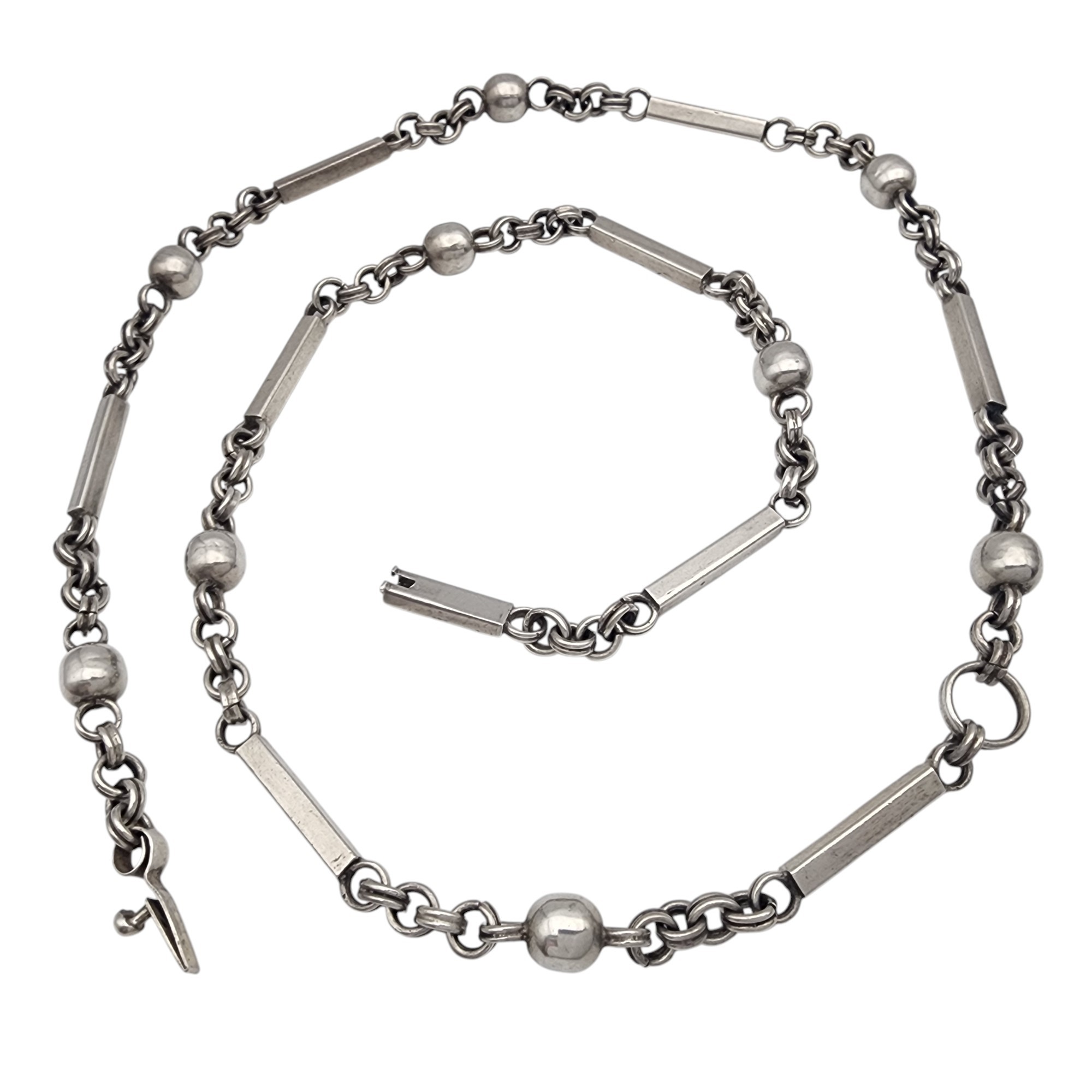 Signed ‘RAE’ Mexico Eagle 1 Sterling Bar and Bead Chain Necklace – 57.9g – a very nice necklace! – approx 28″