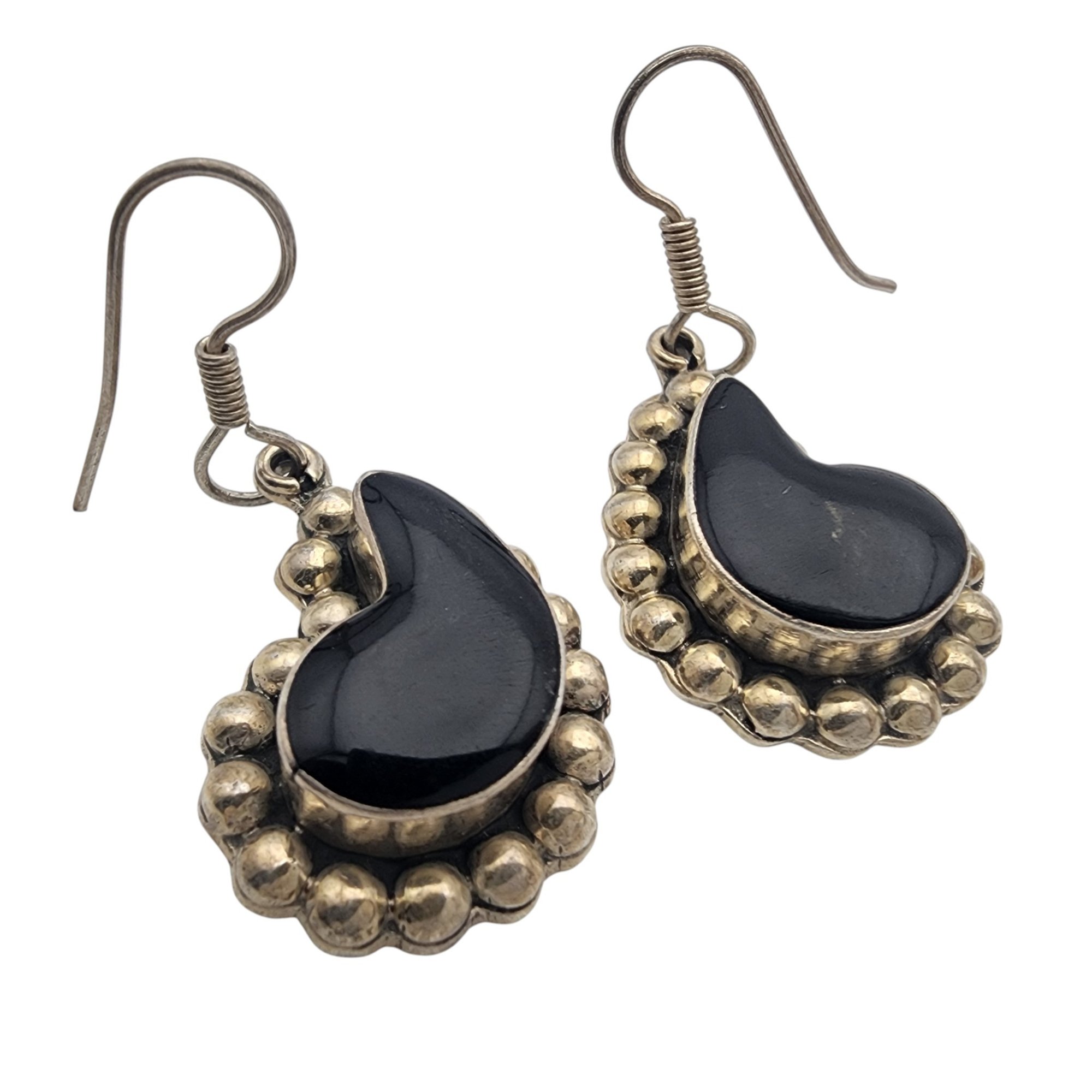 Mexico Sterling Onyx Dangle Earrings – 13.6g