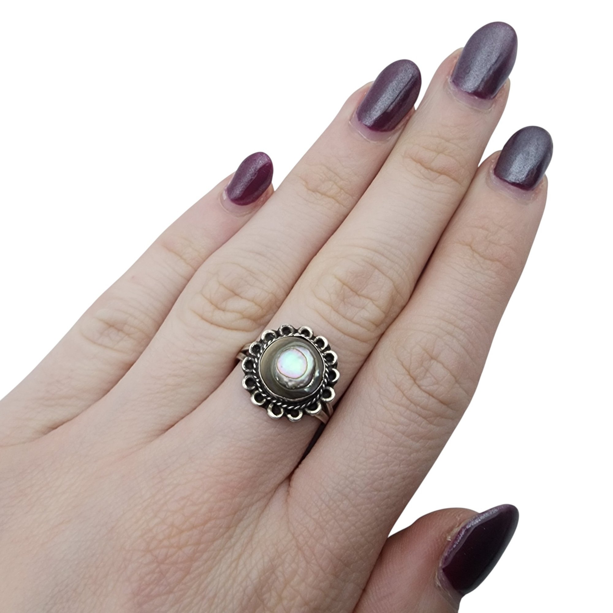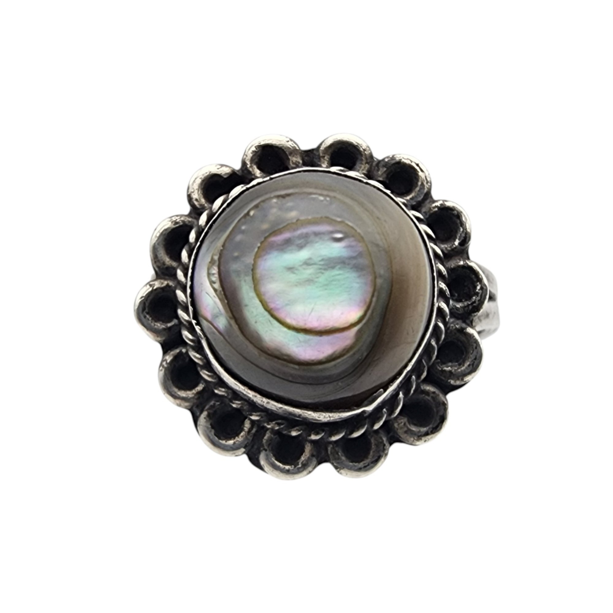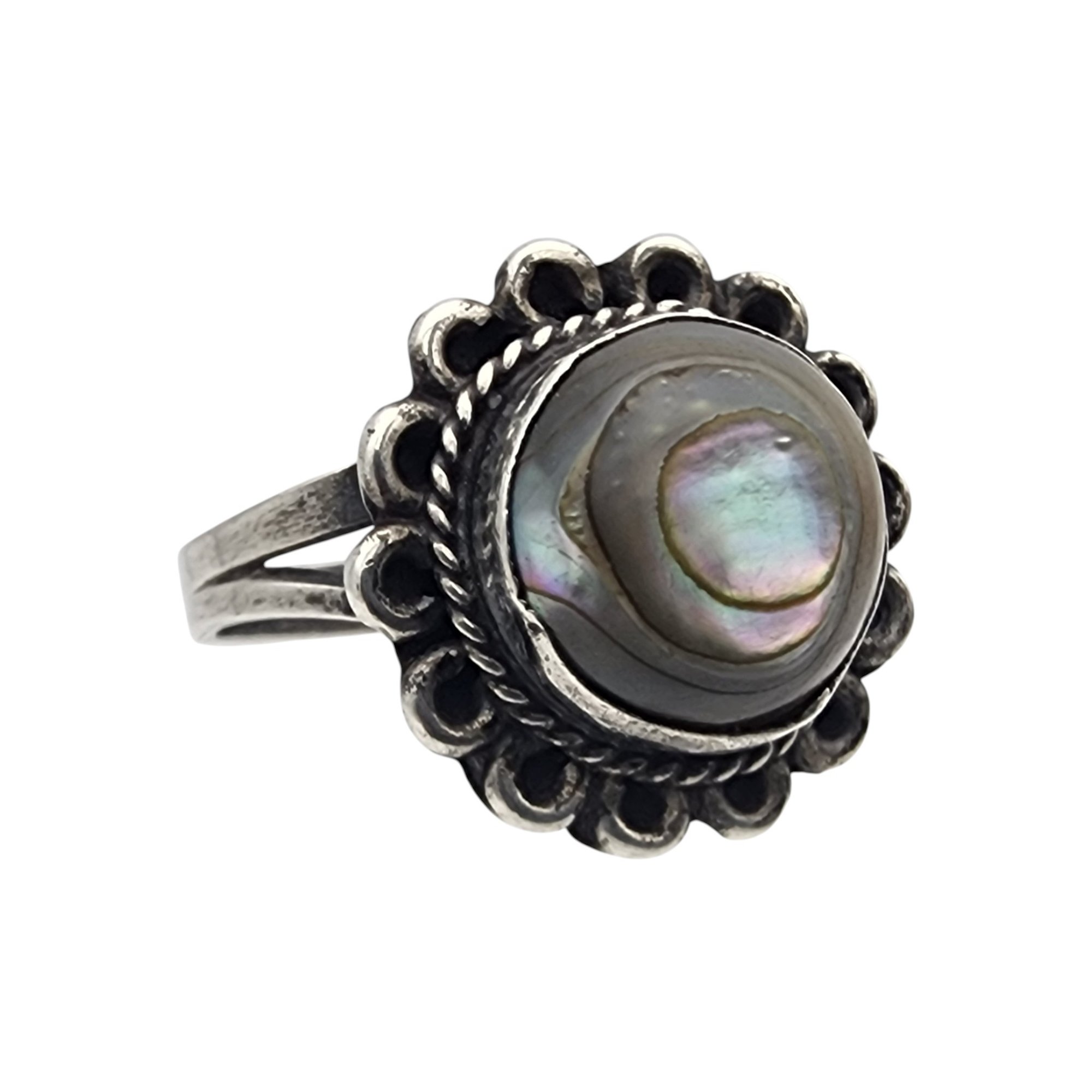 Signed Mexico Sterling Abalone Ring Sz 7 – 3g