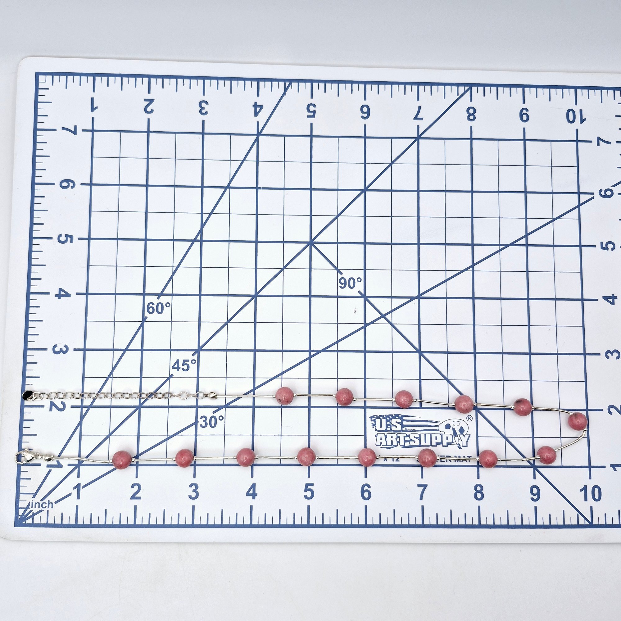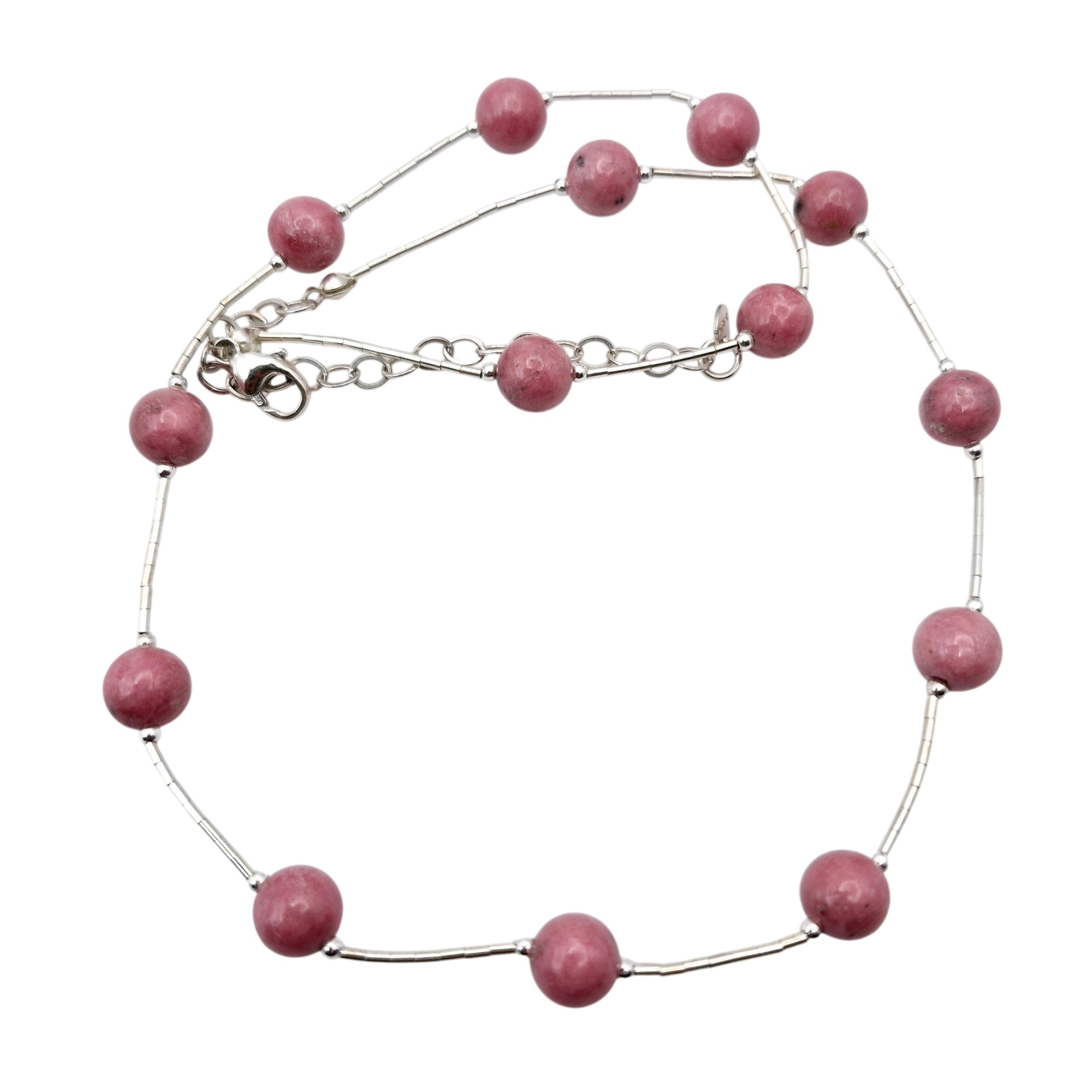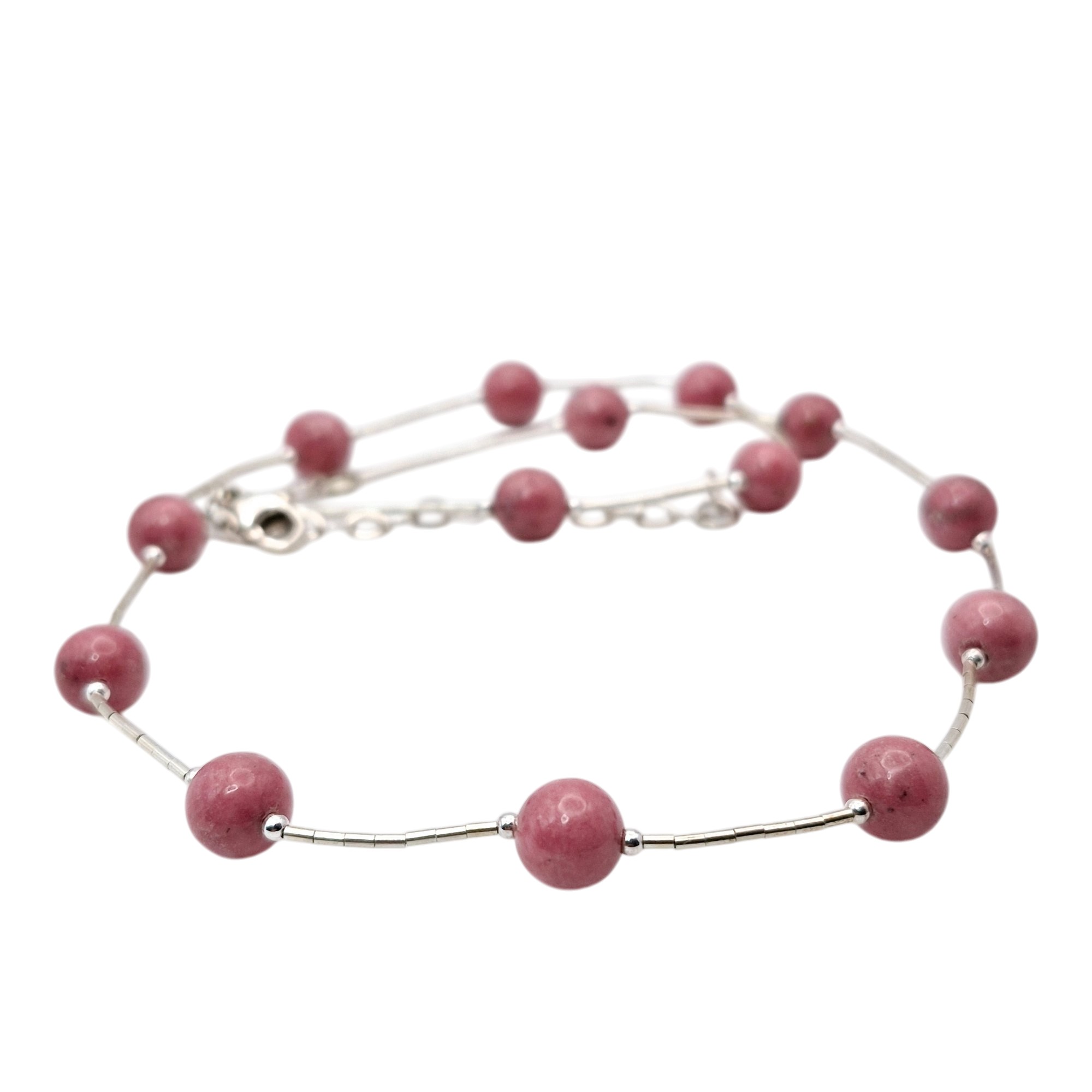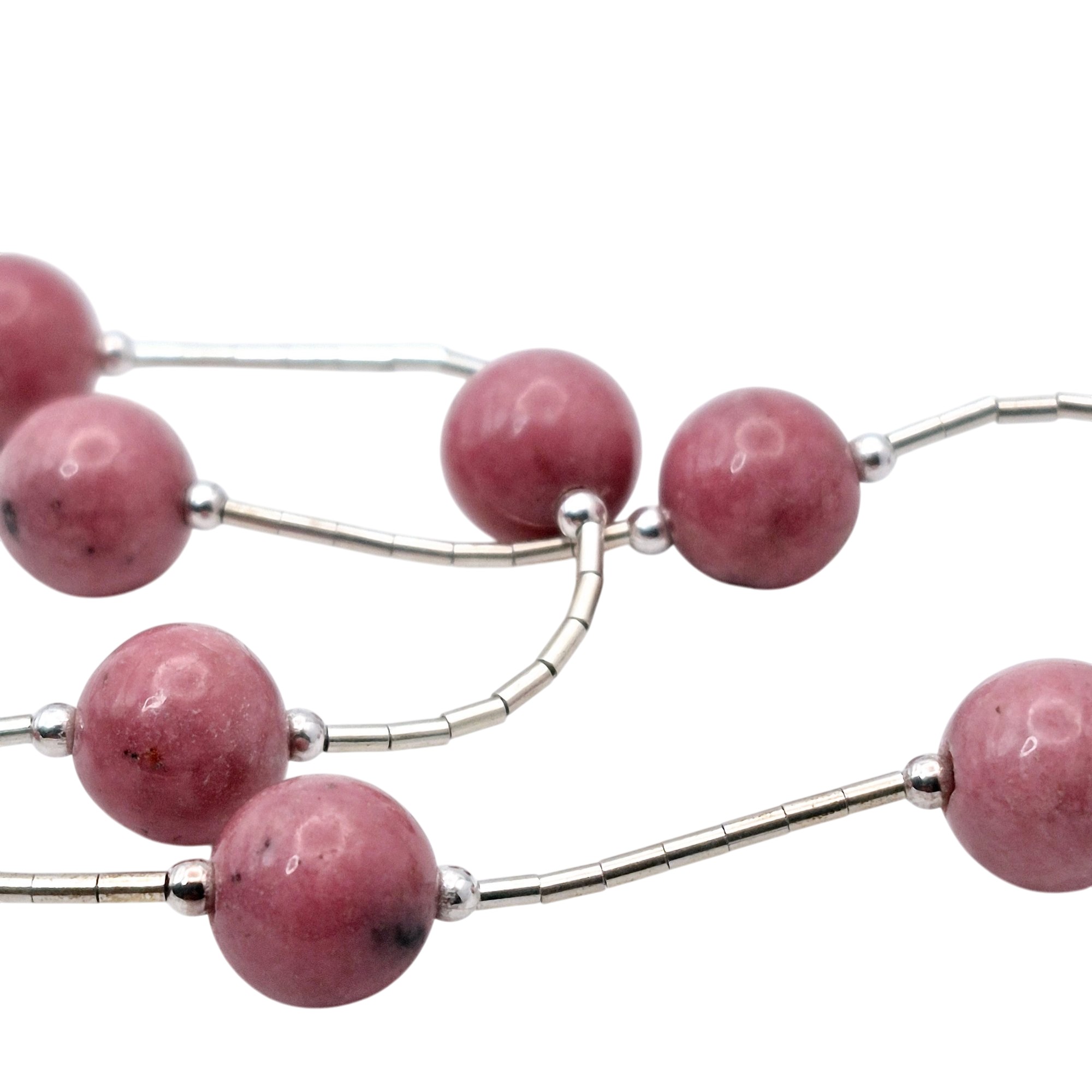 Sterling pink rhodonite Liquid Silver chain bracelet 16.4 G