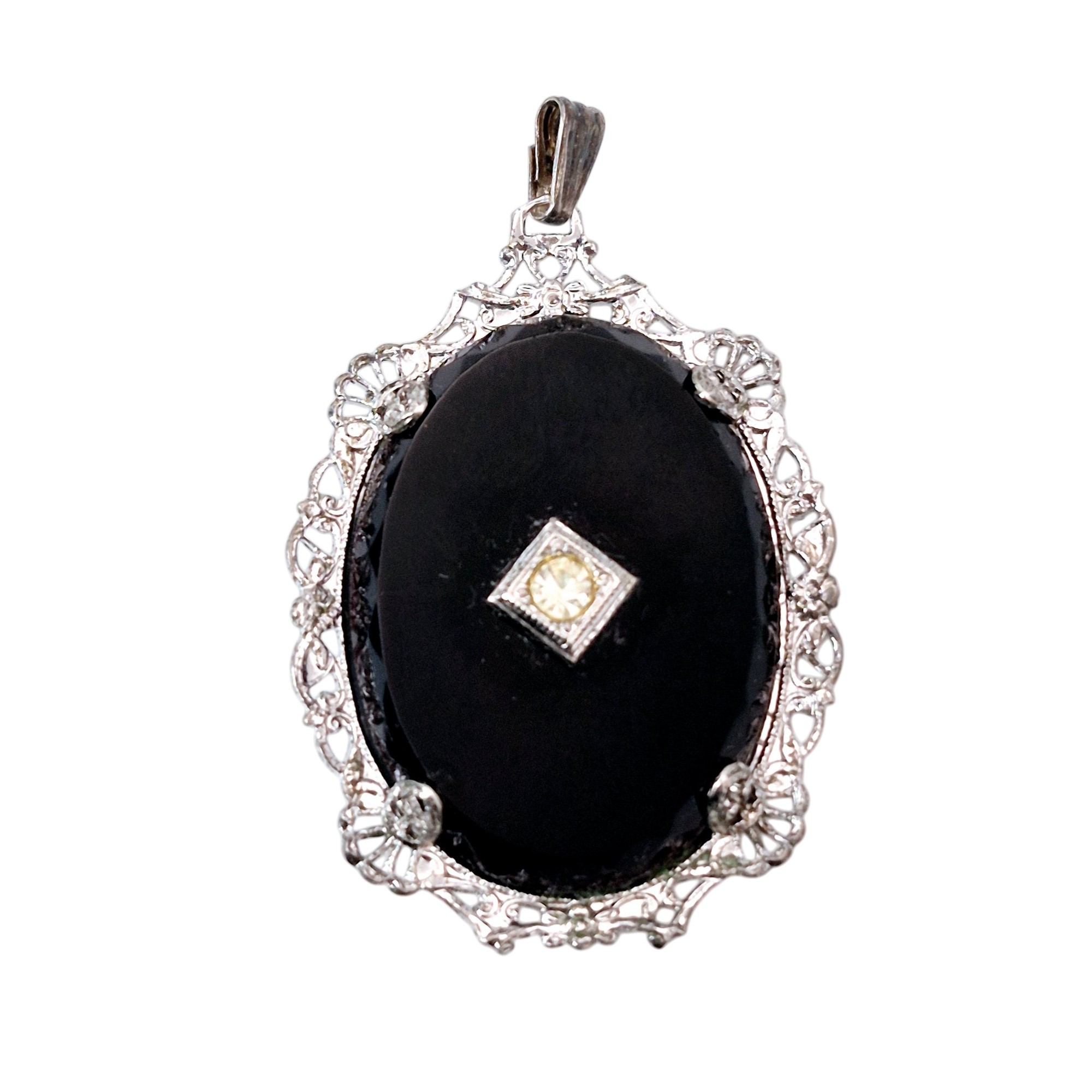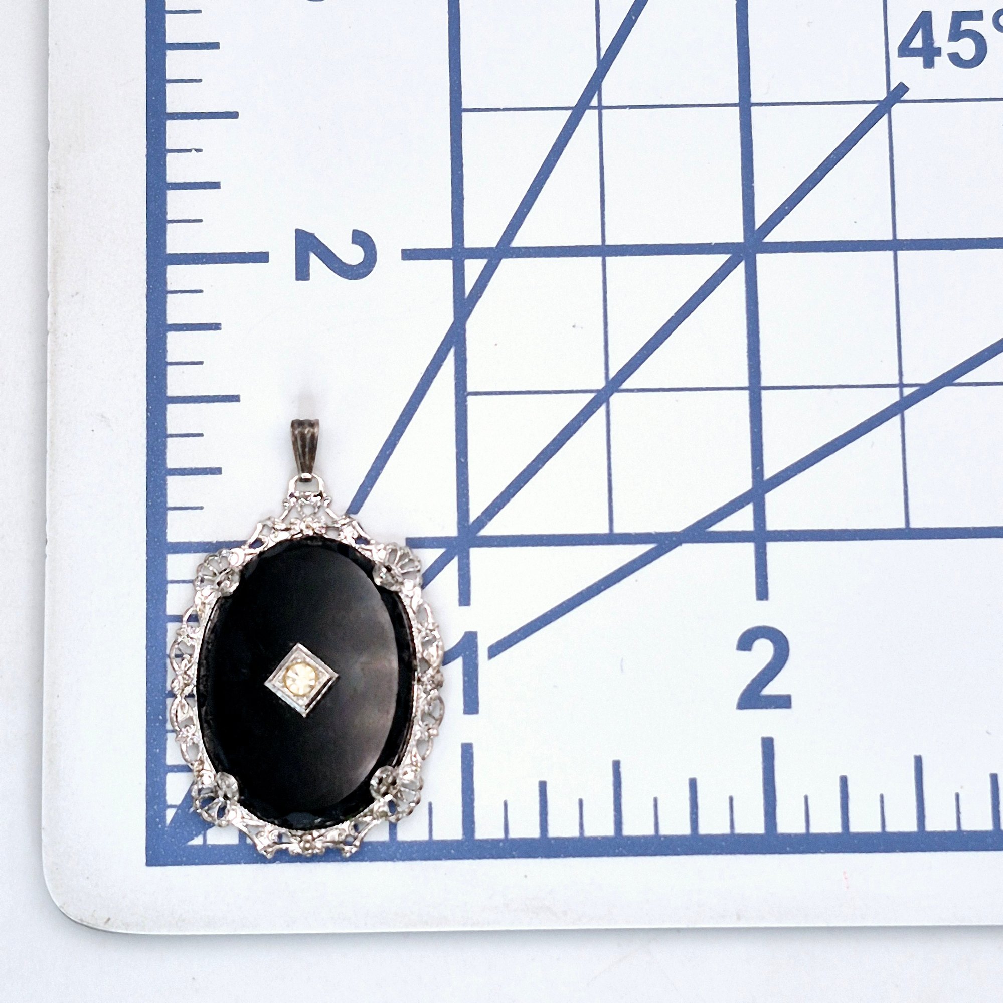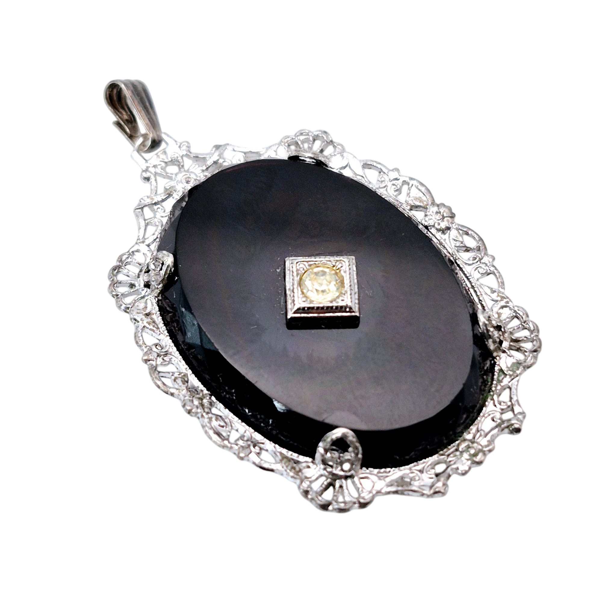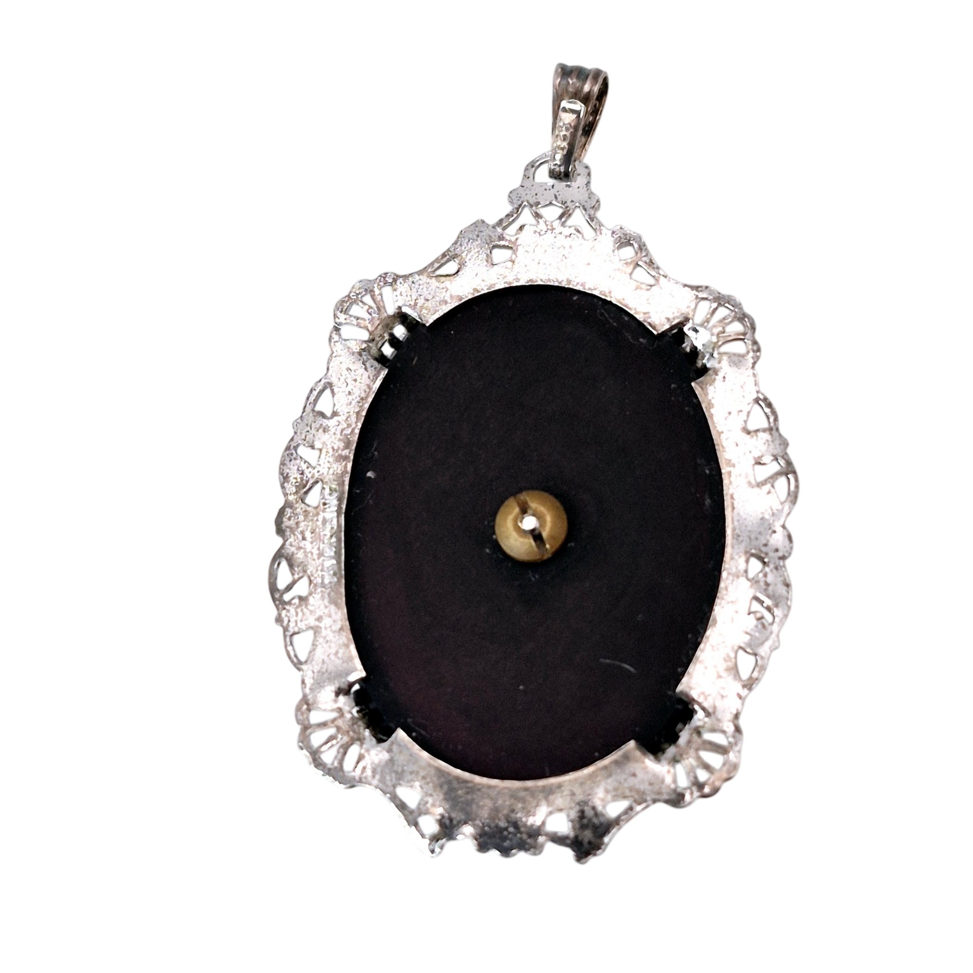 Sterling rhinestone dark stone oval pendant 3.4 G