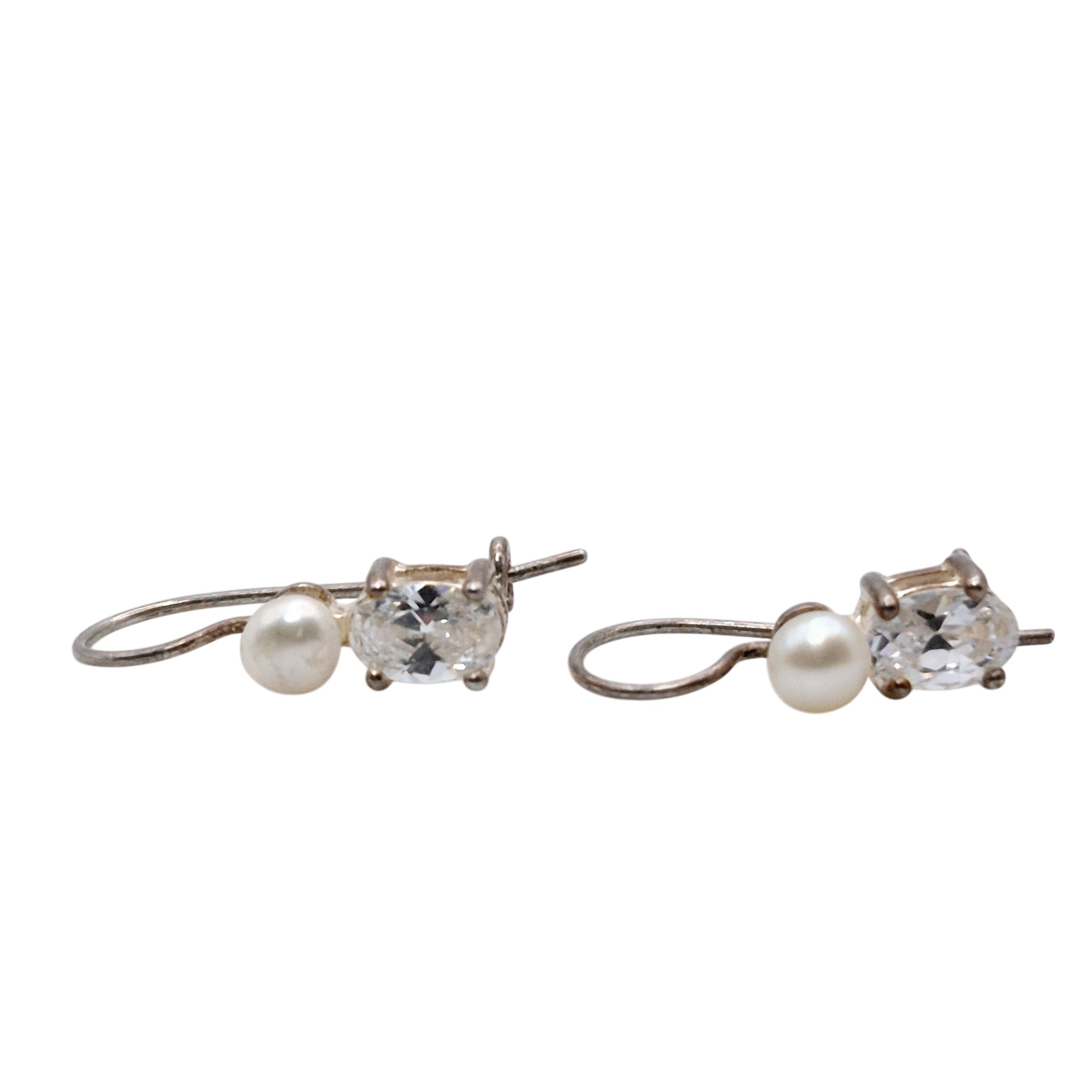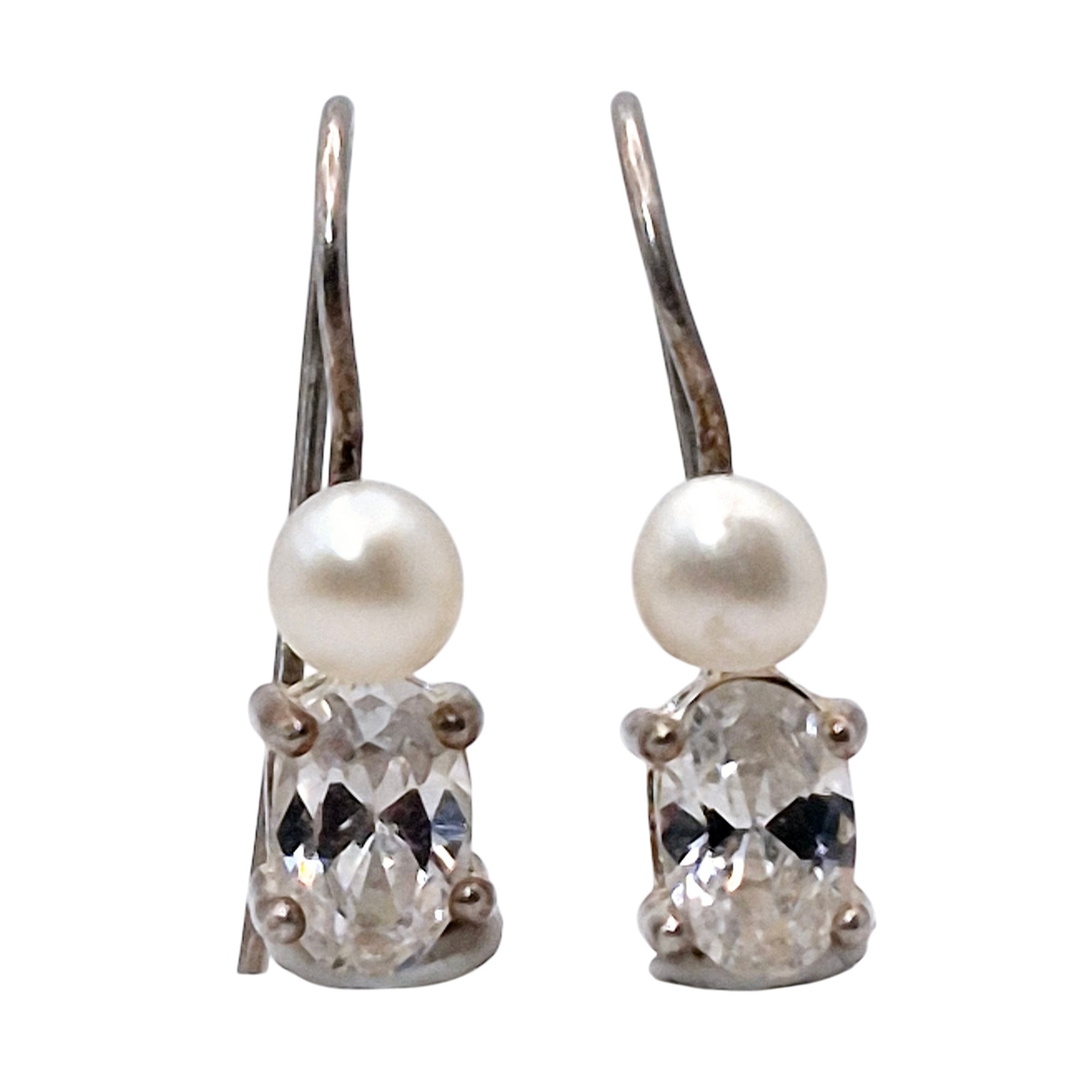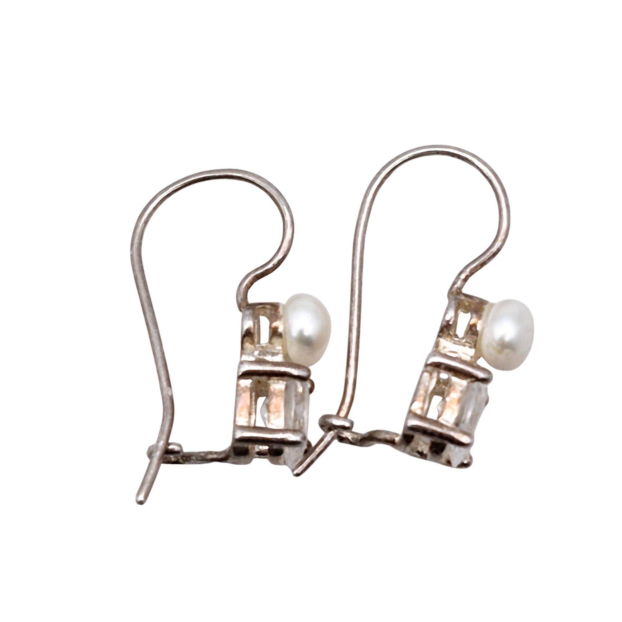 NV Sterling Pearl rhinestone drop earrings 1.7 G
