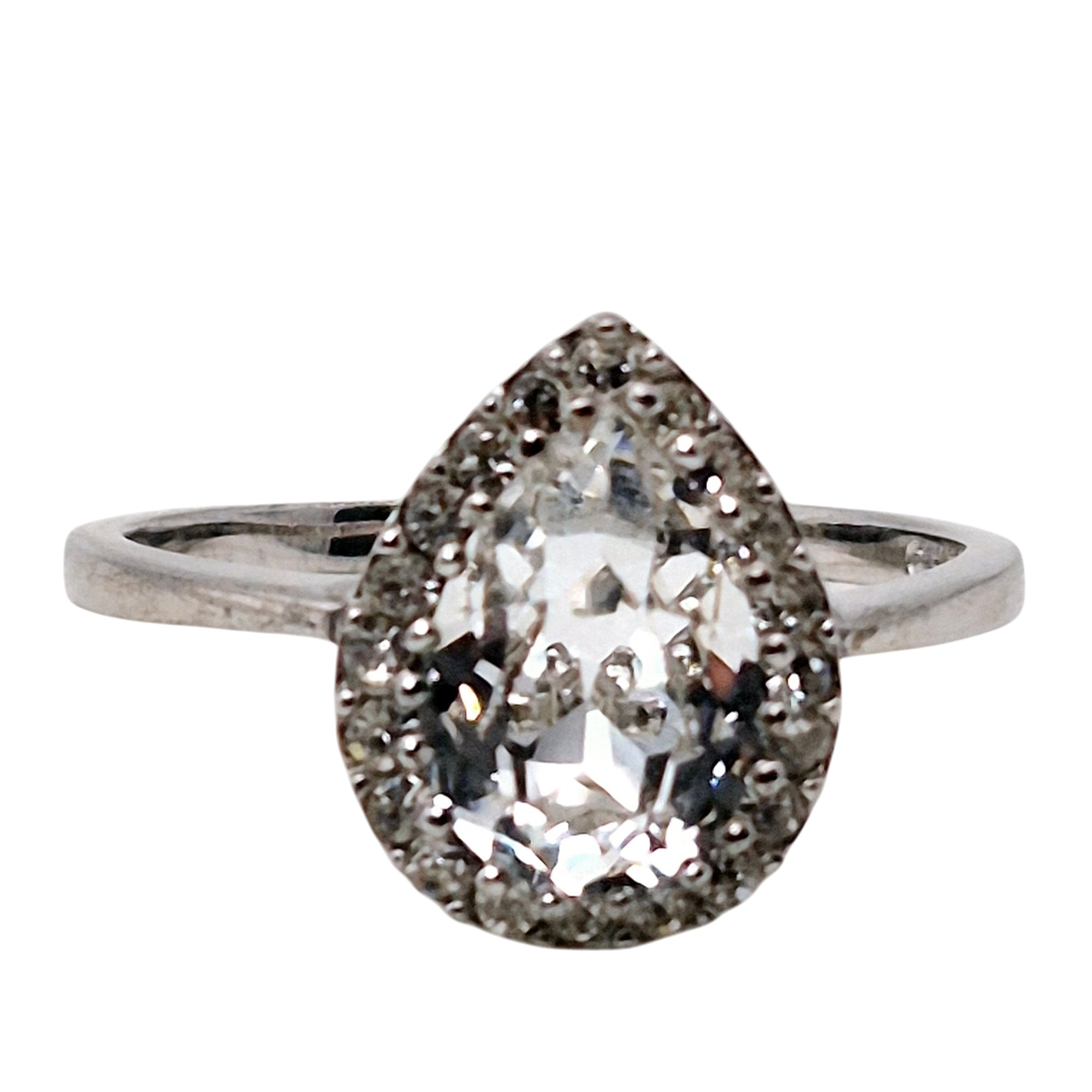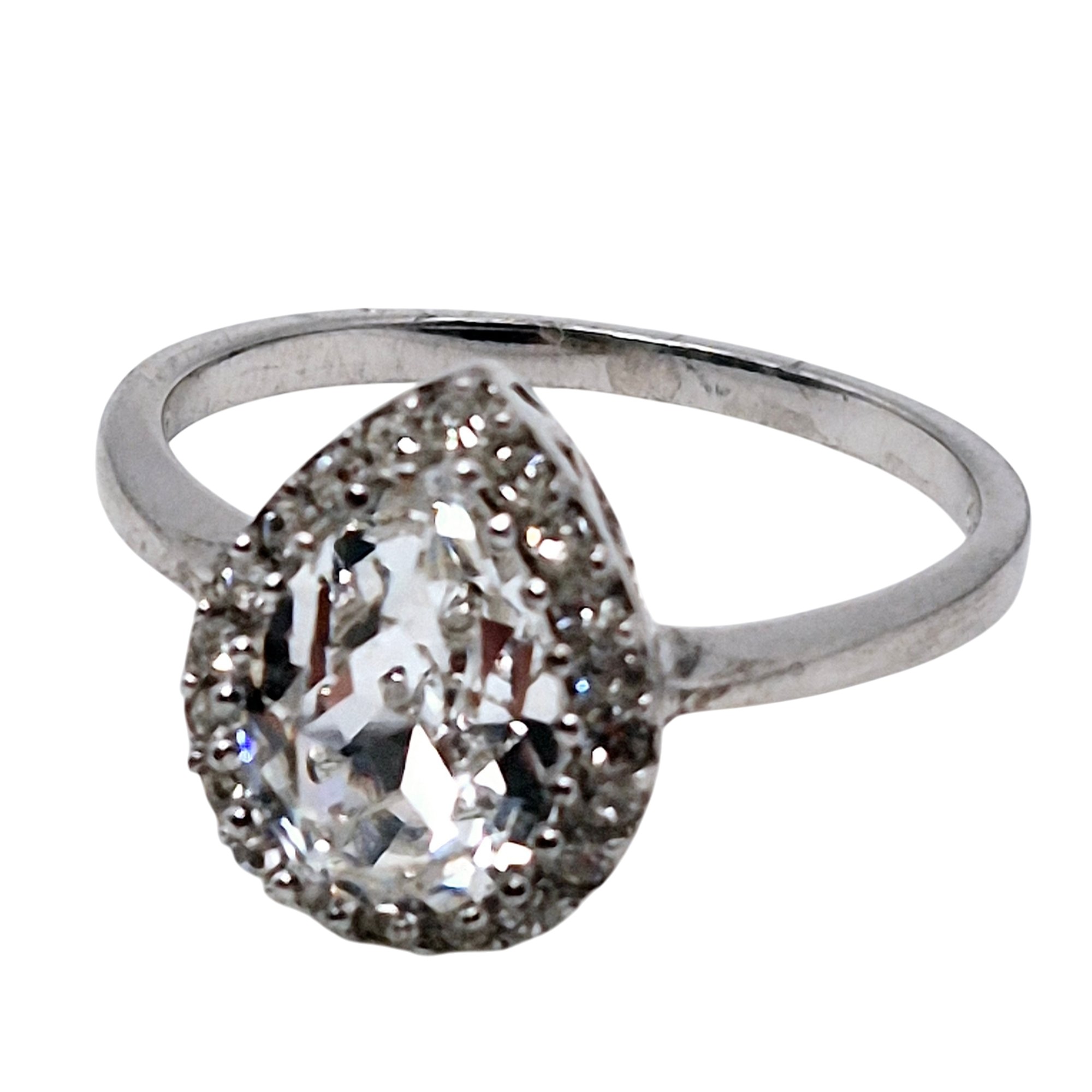 Sterling rhinestone Halo teardrop ring size 8 2.5 g