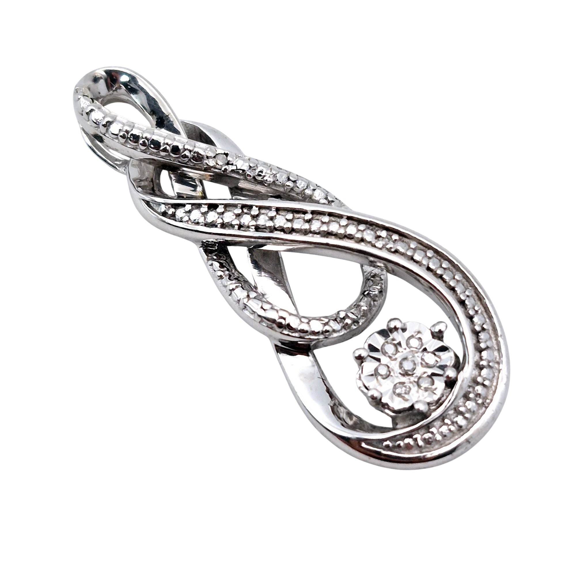 Sterling Diamond accent Twisted floral pendant 3.3 G