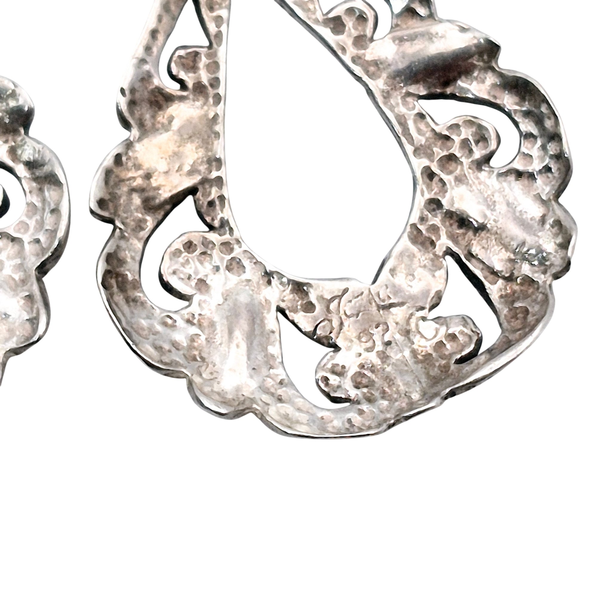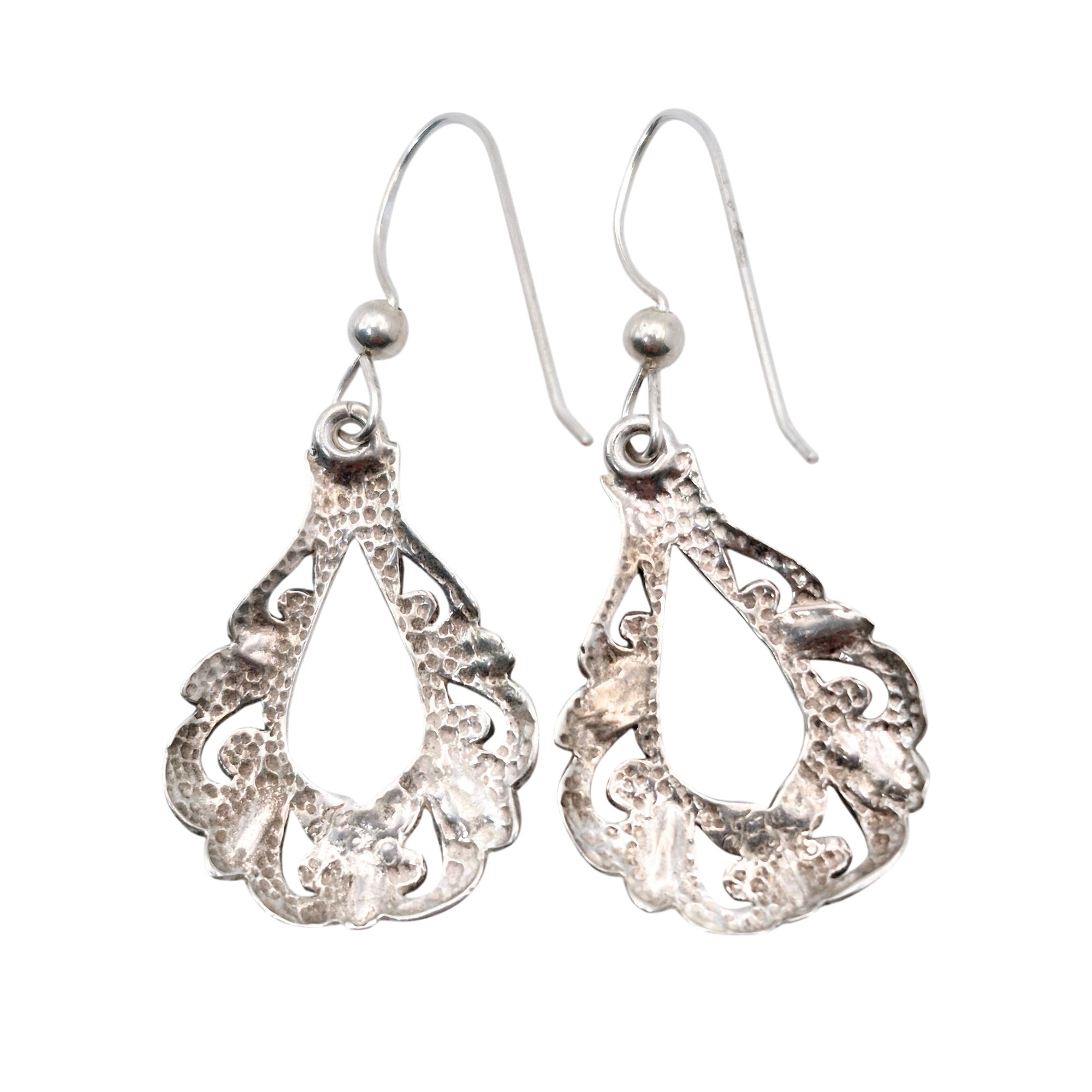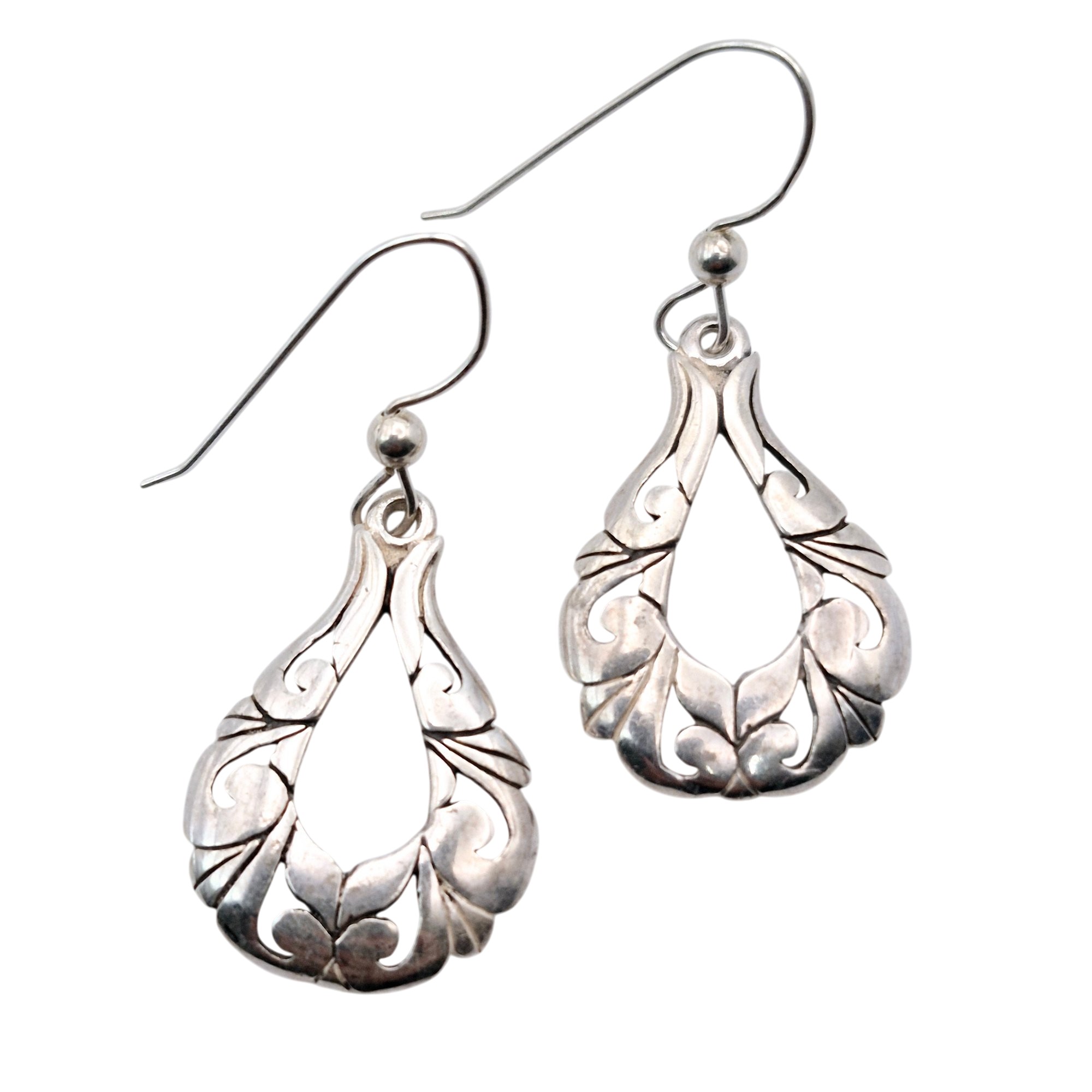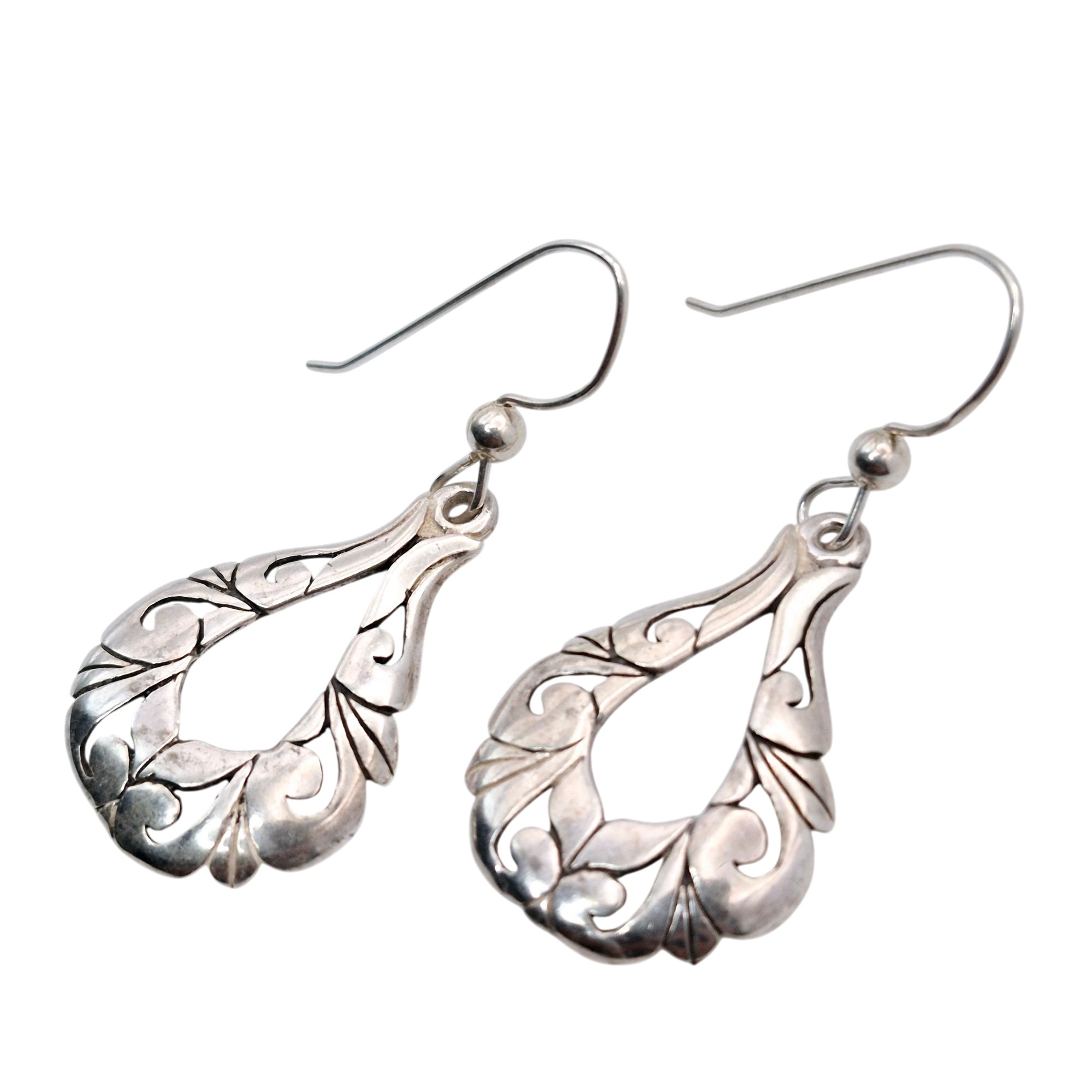 Jezlaine Sterling open scrollwork pear-shaped dangle earrings 3.8 g