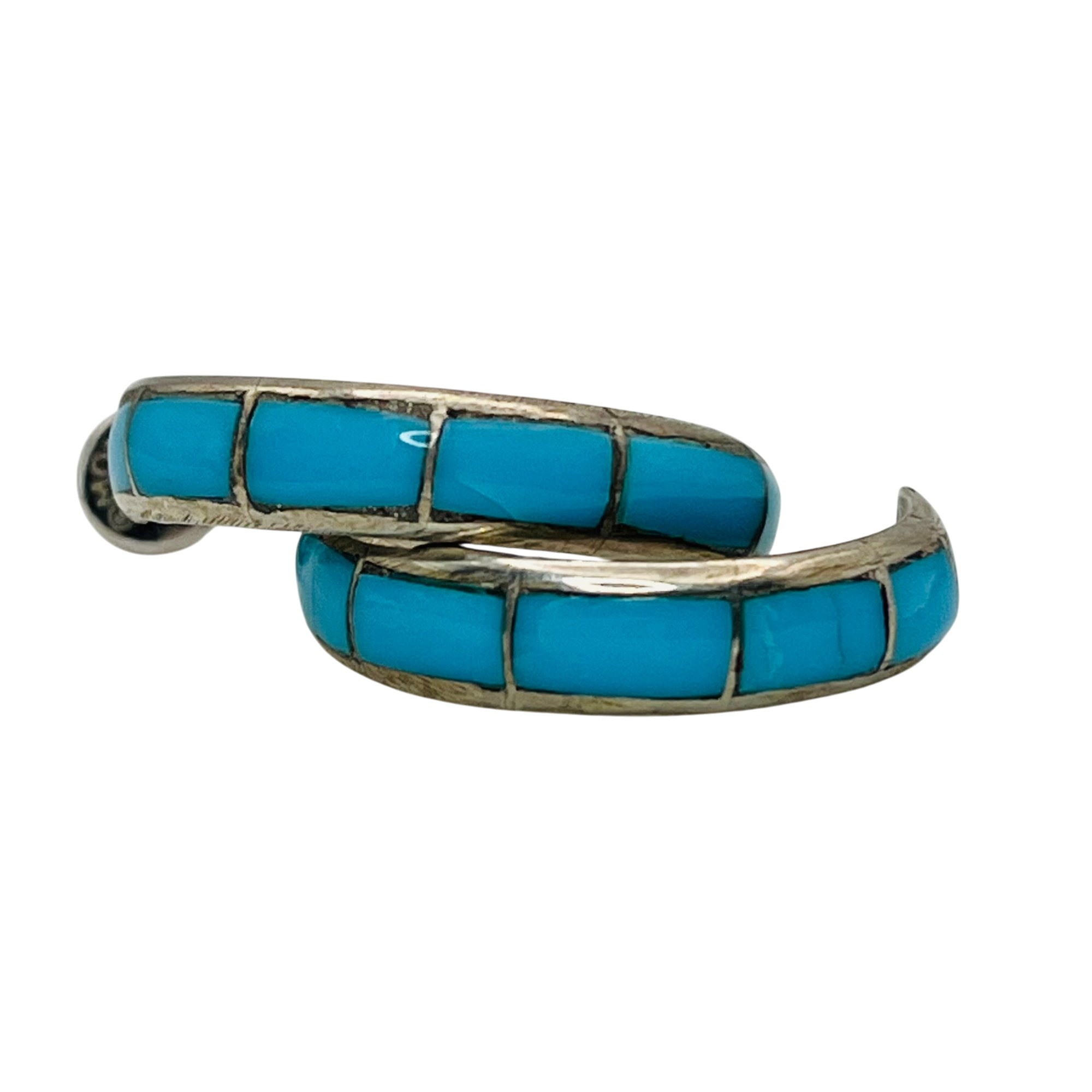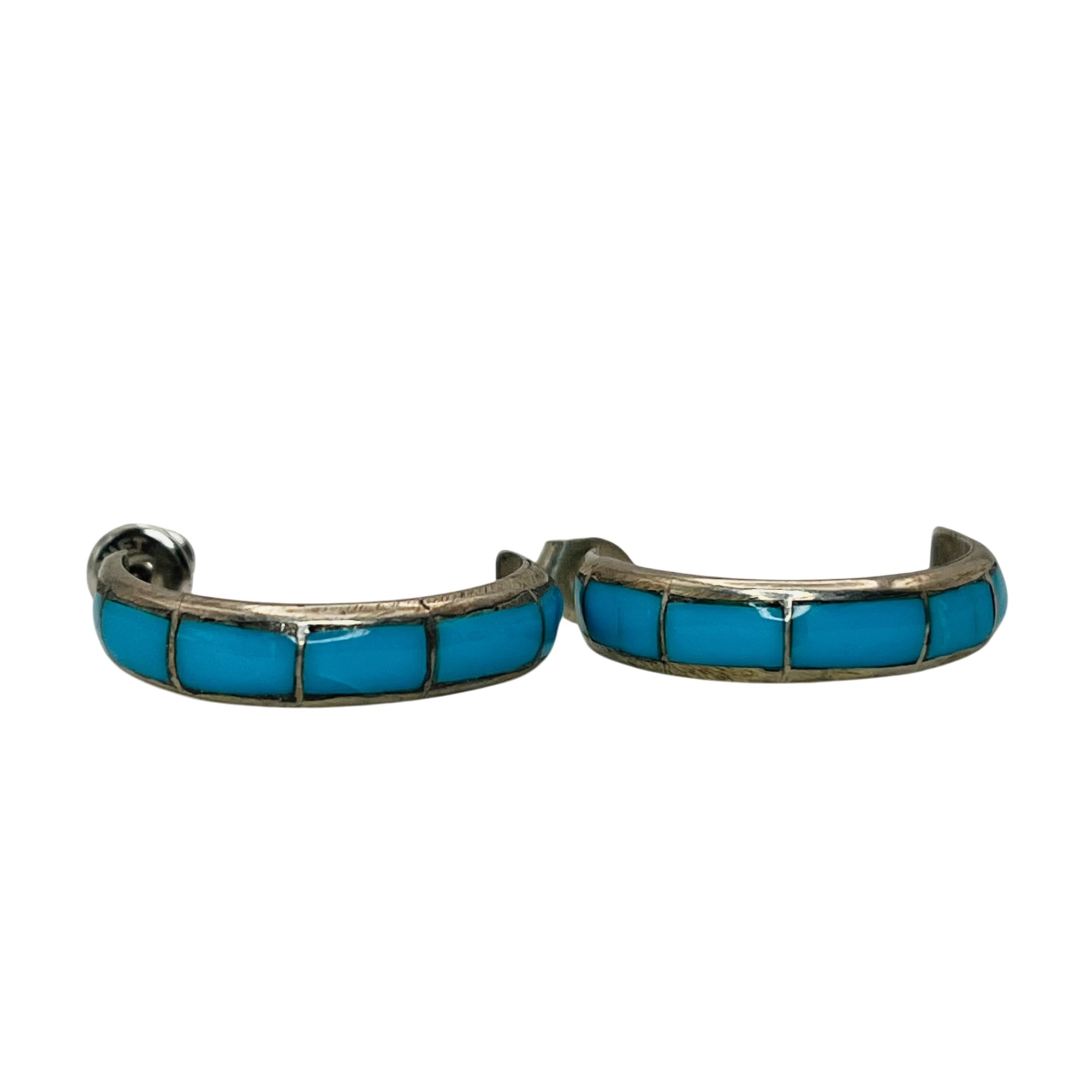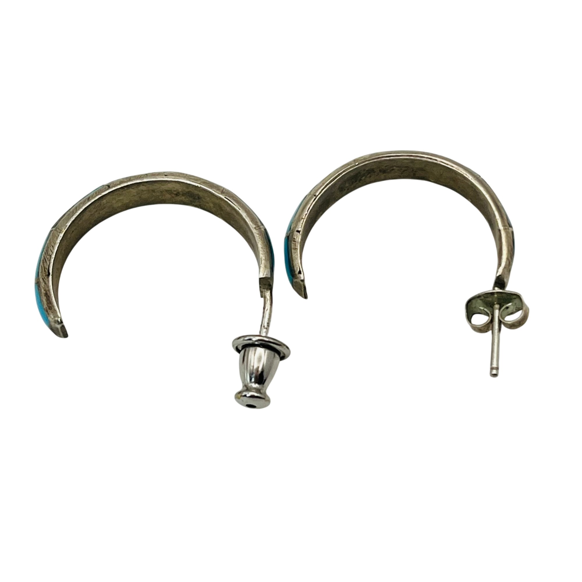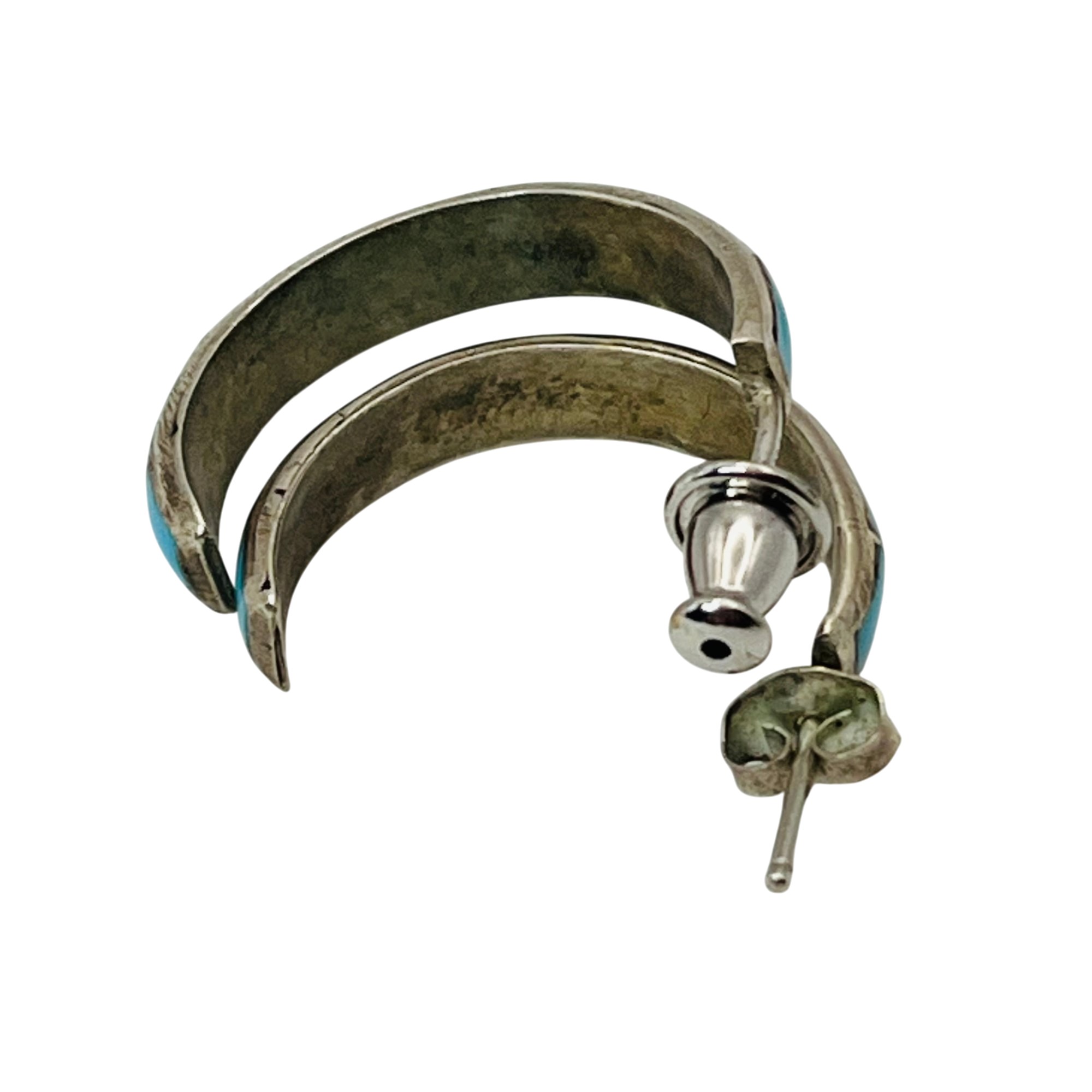 Sterling turquoise Southwest c-hoop stud earrings 3.3 g