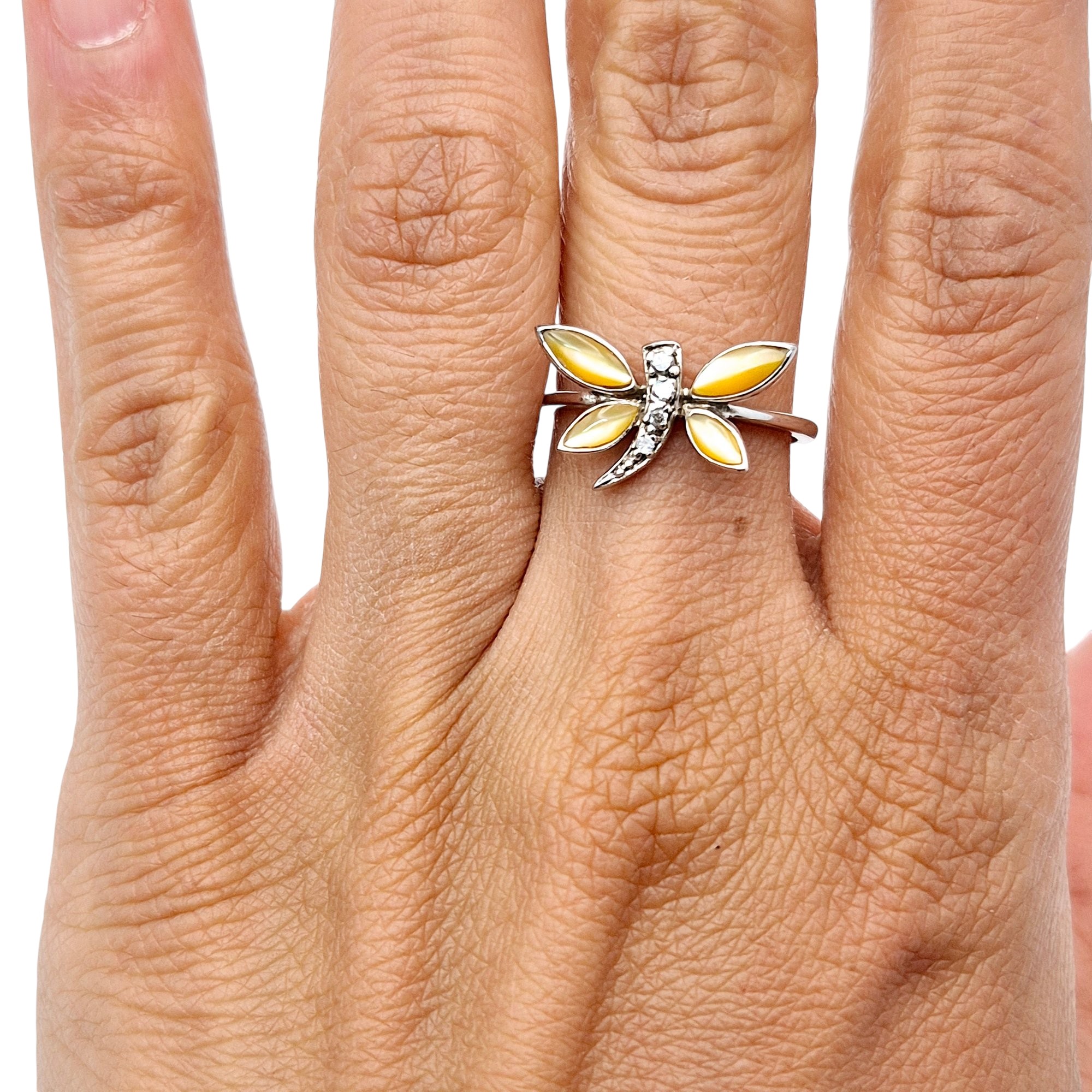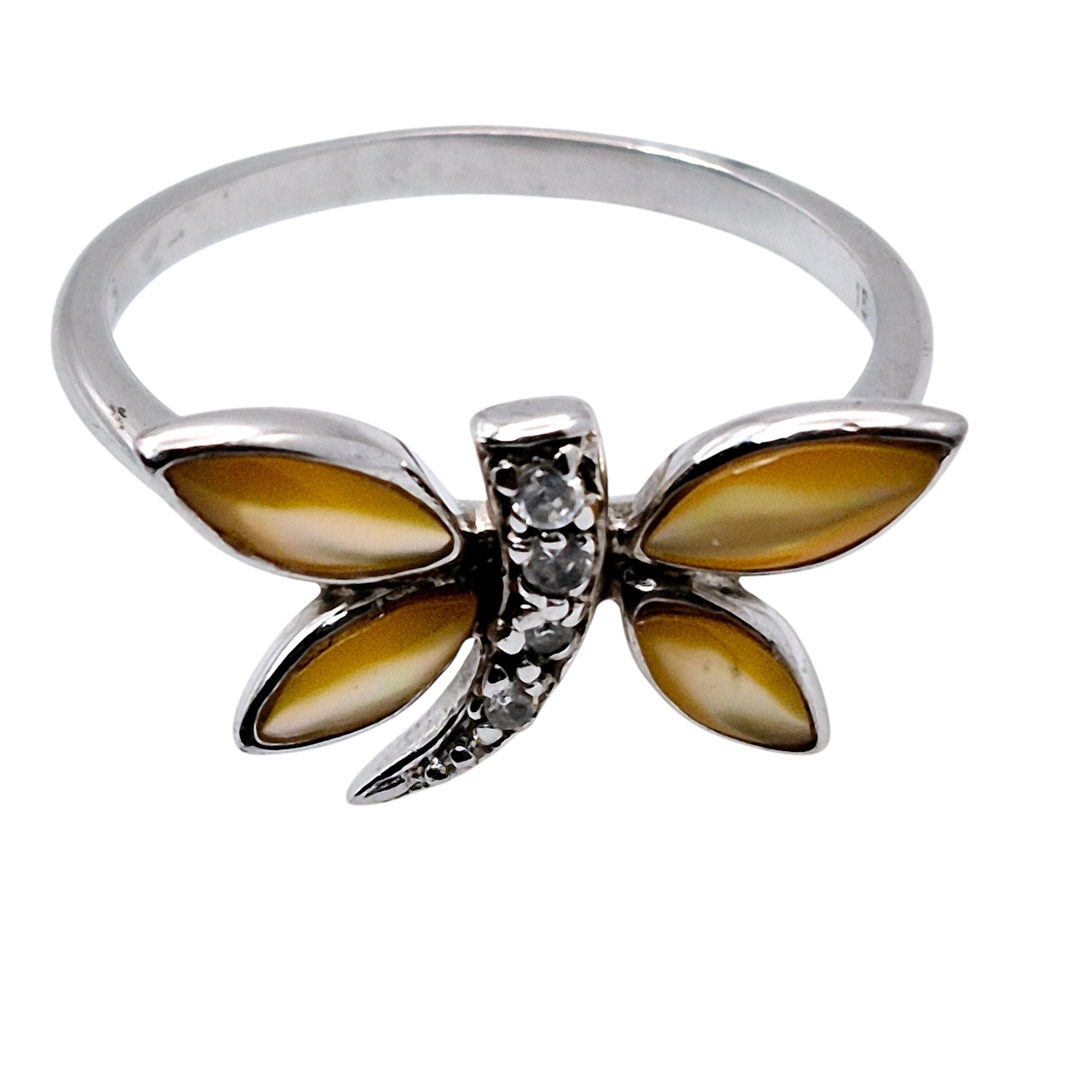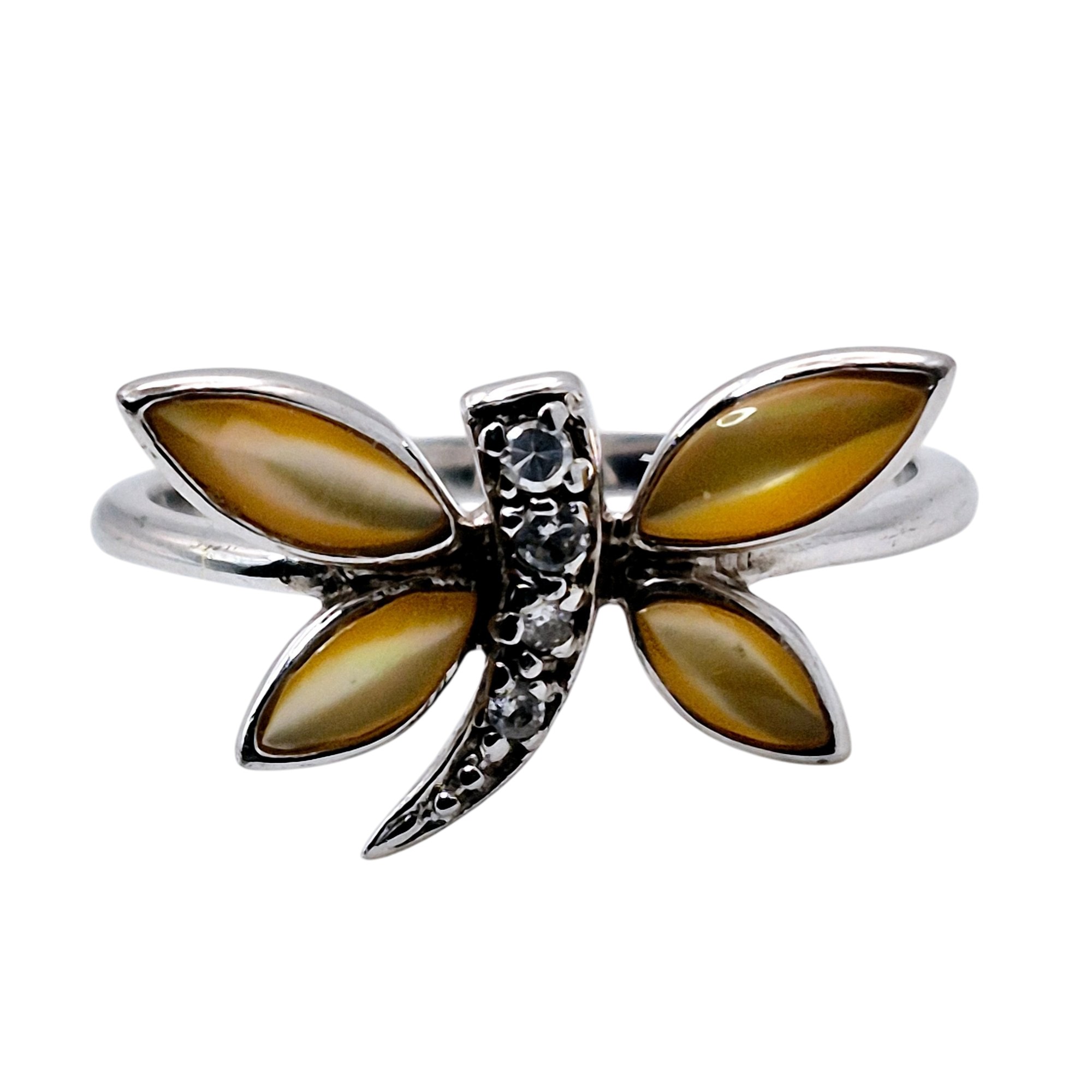 Sterling mother of pearl dragonfly ring size 7 2.2 G