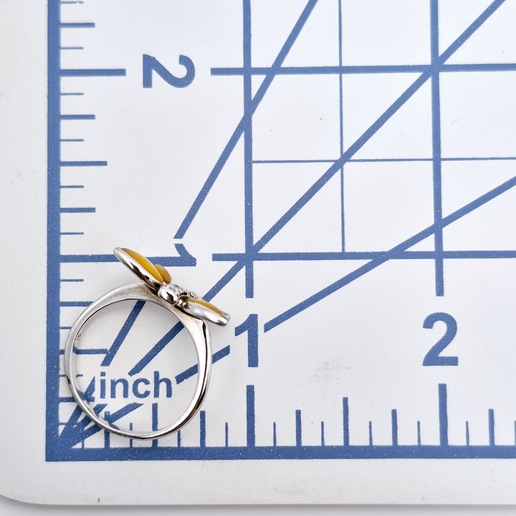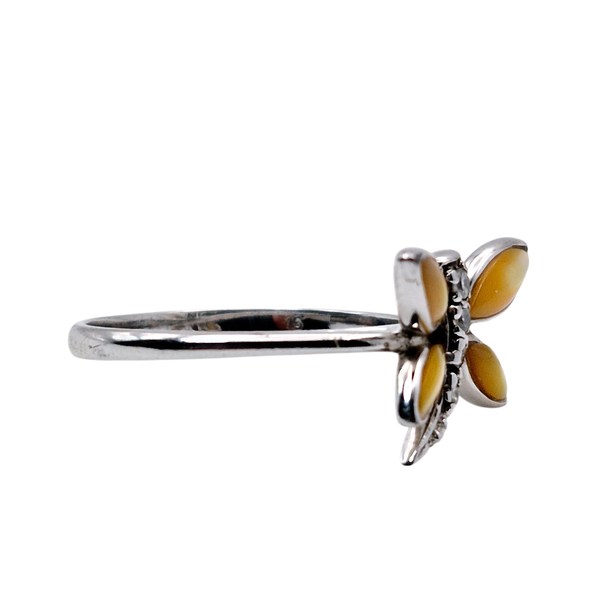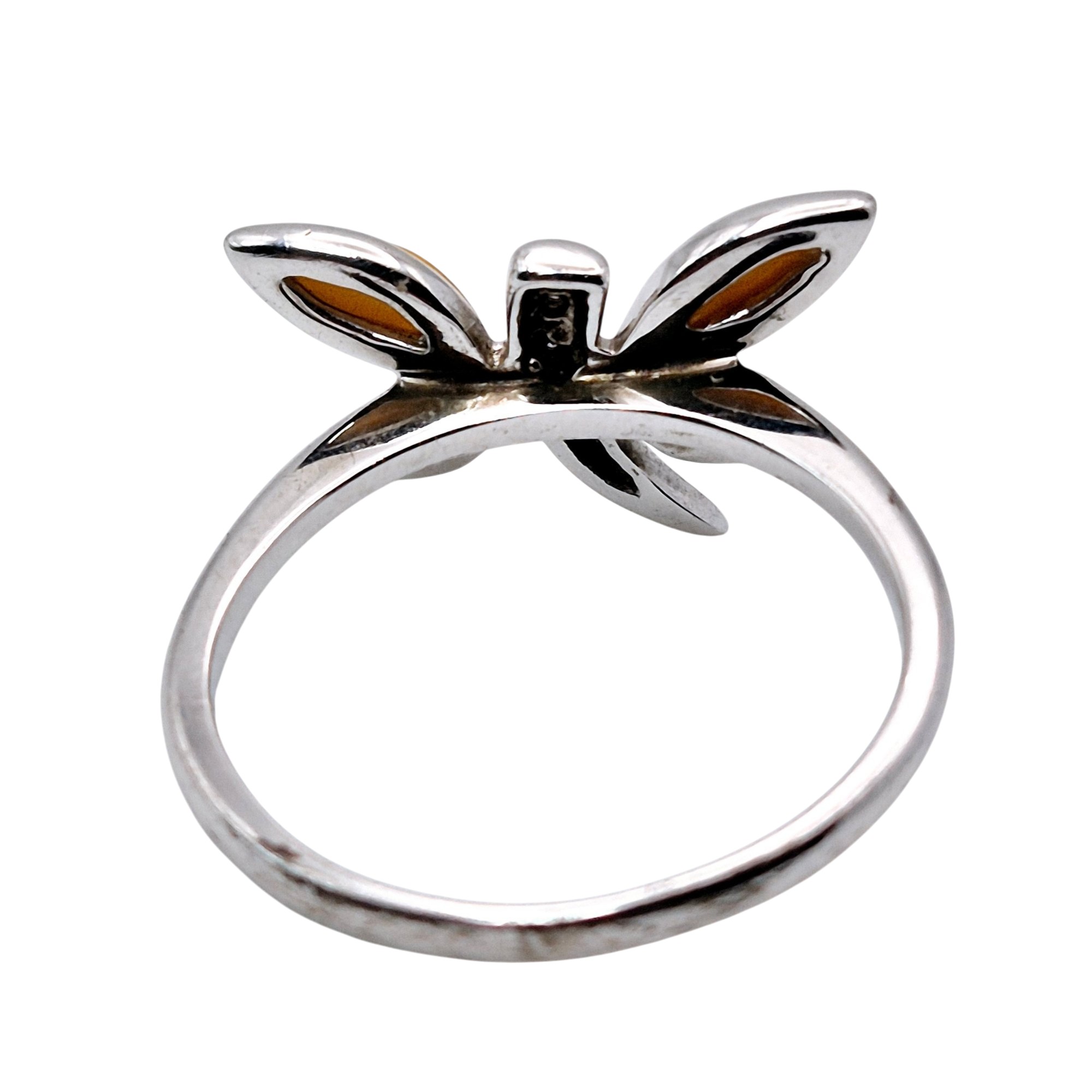 Sterling mother of pearl dragonfly ring size 7 2.2 G