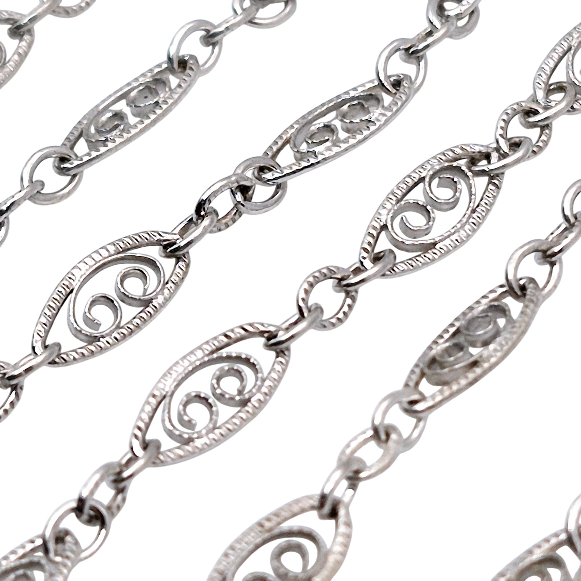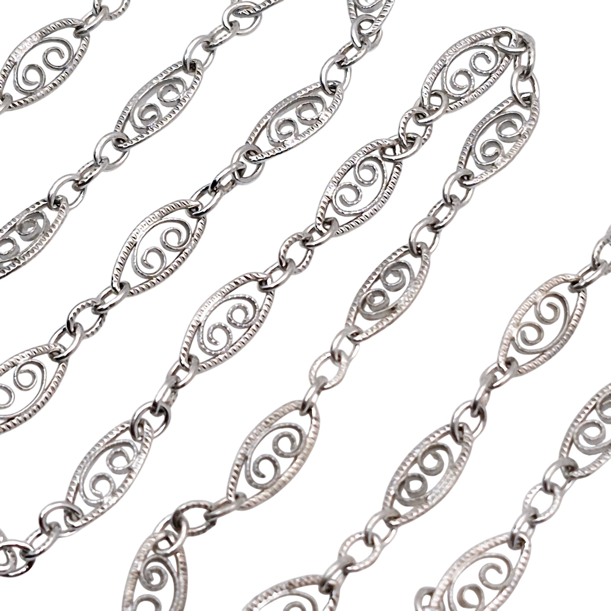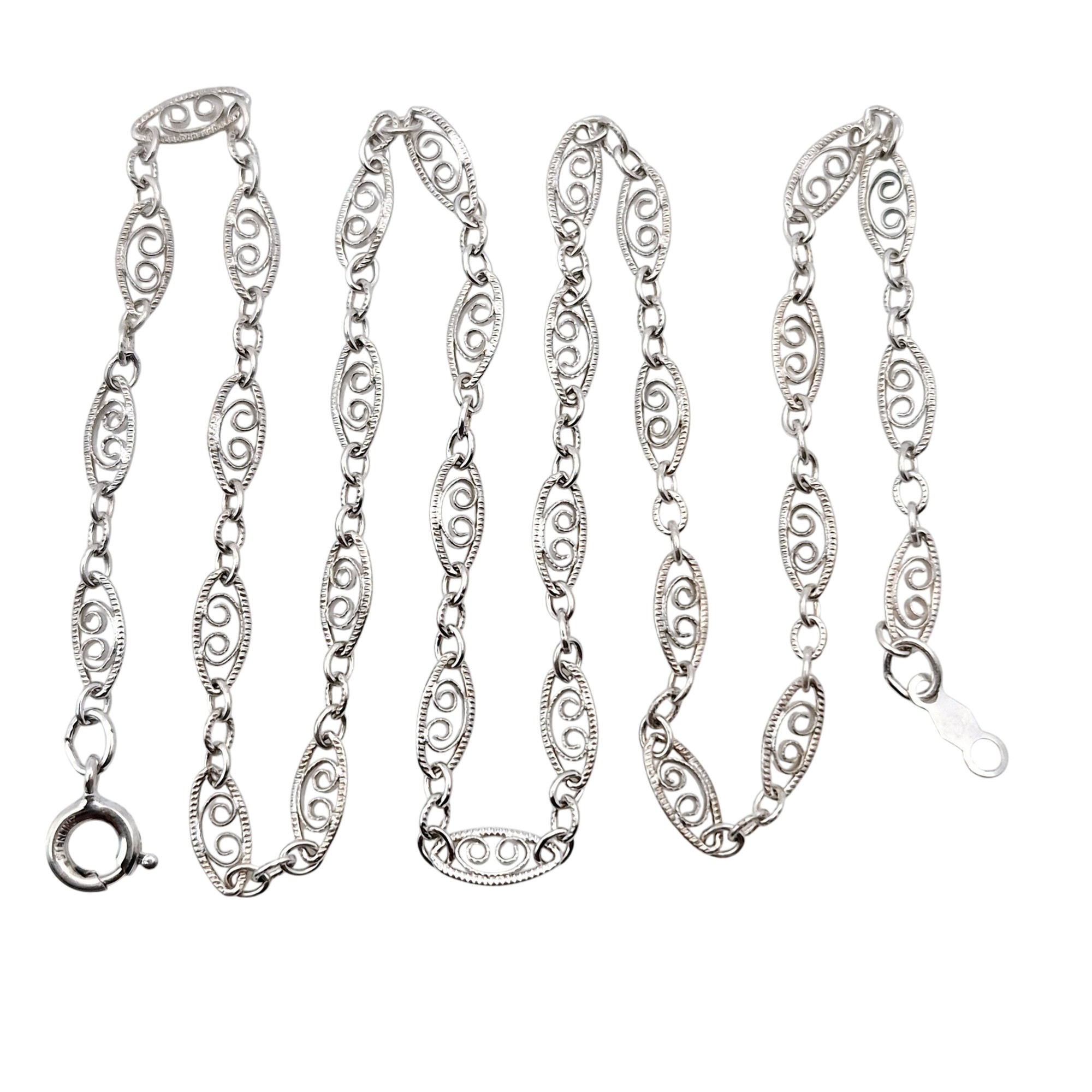 Sterling filigree Marquise shaped link chain necklace 3.3 G