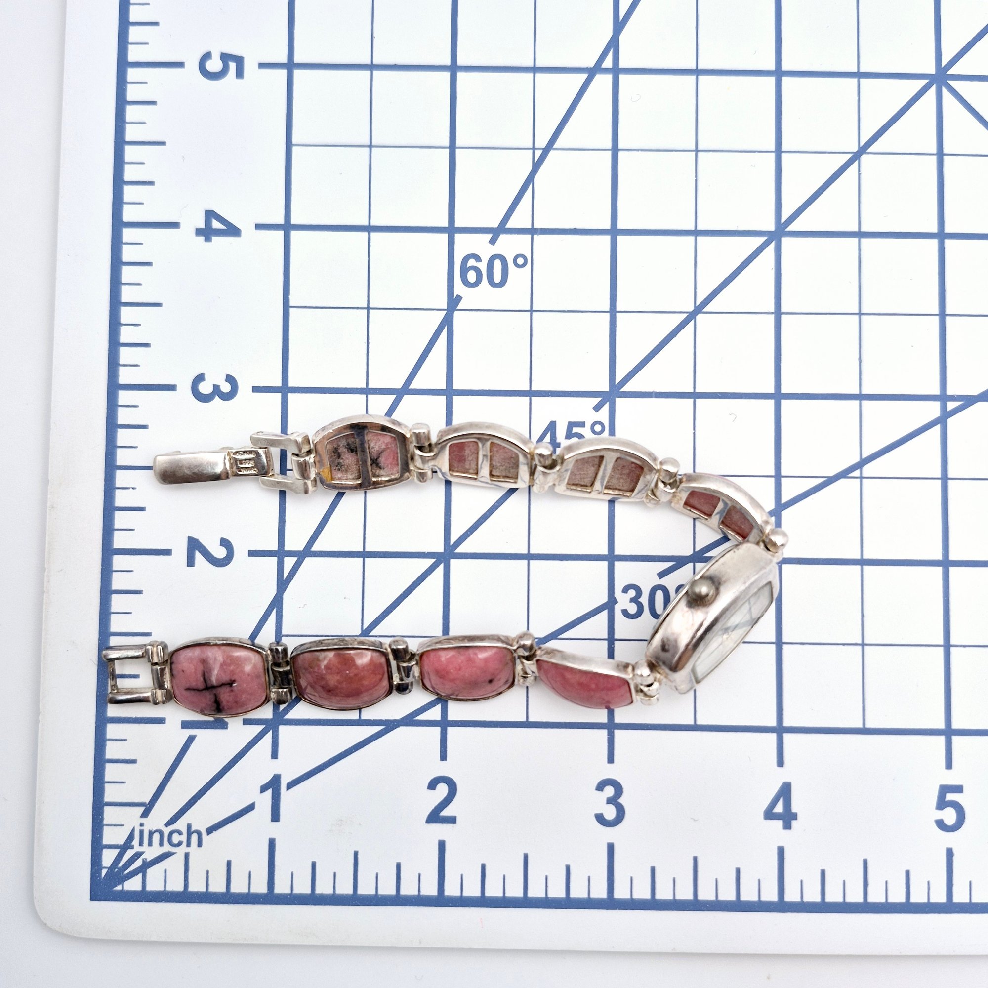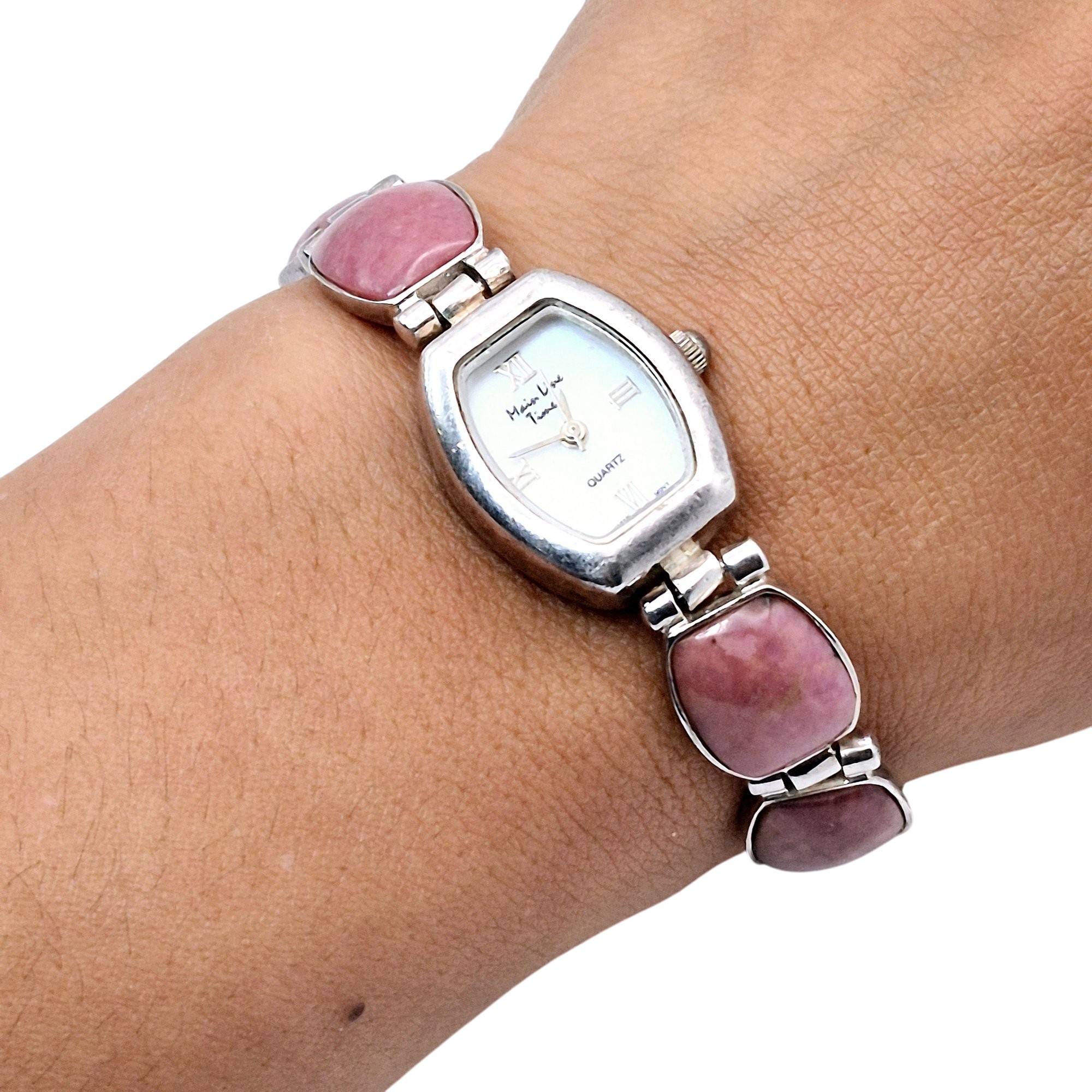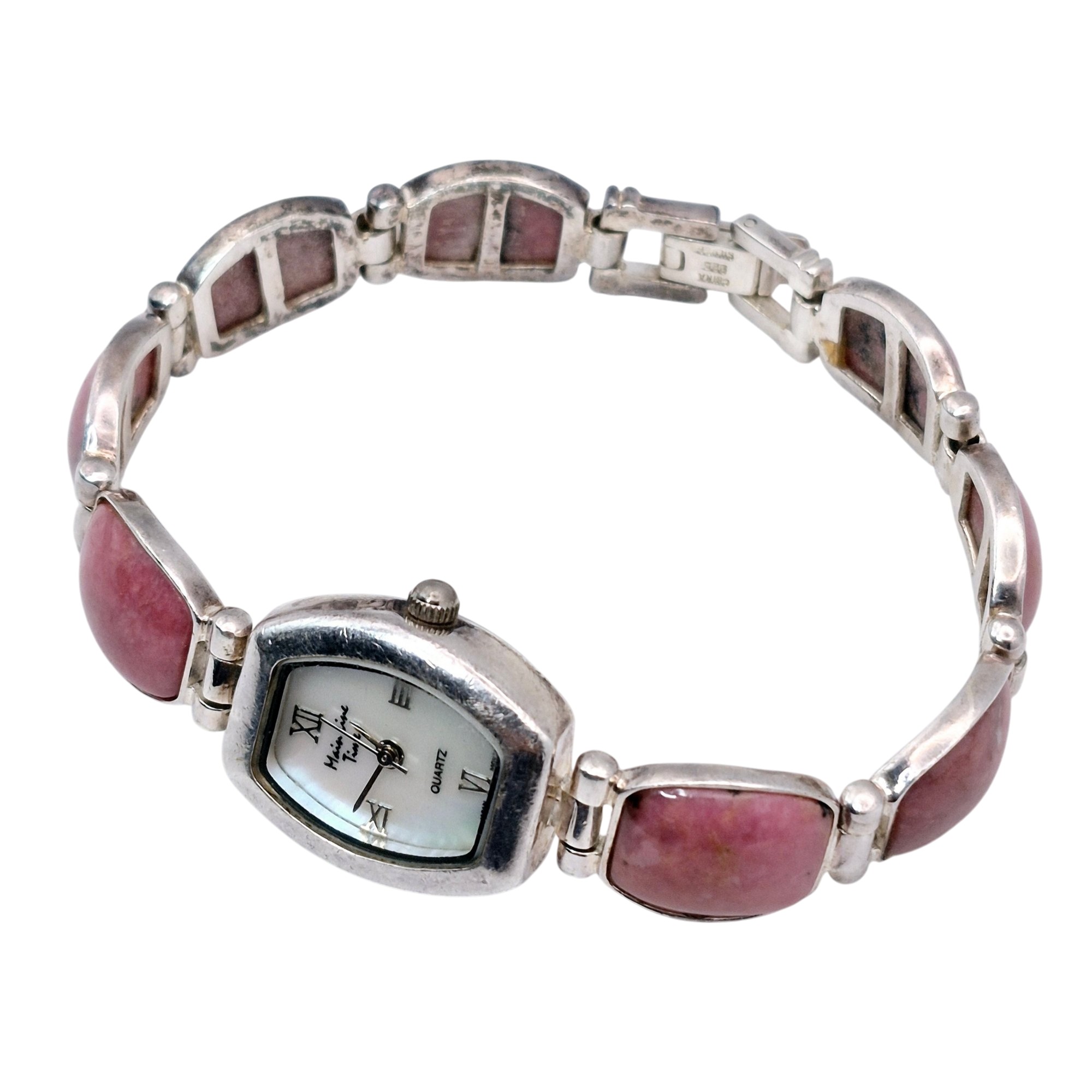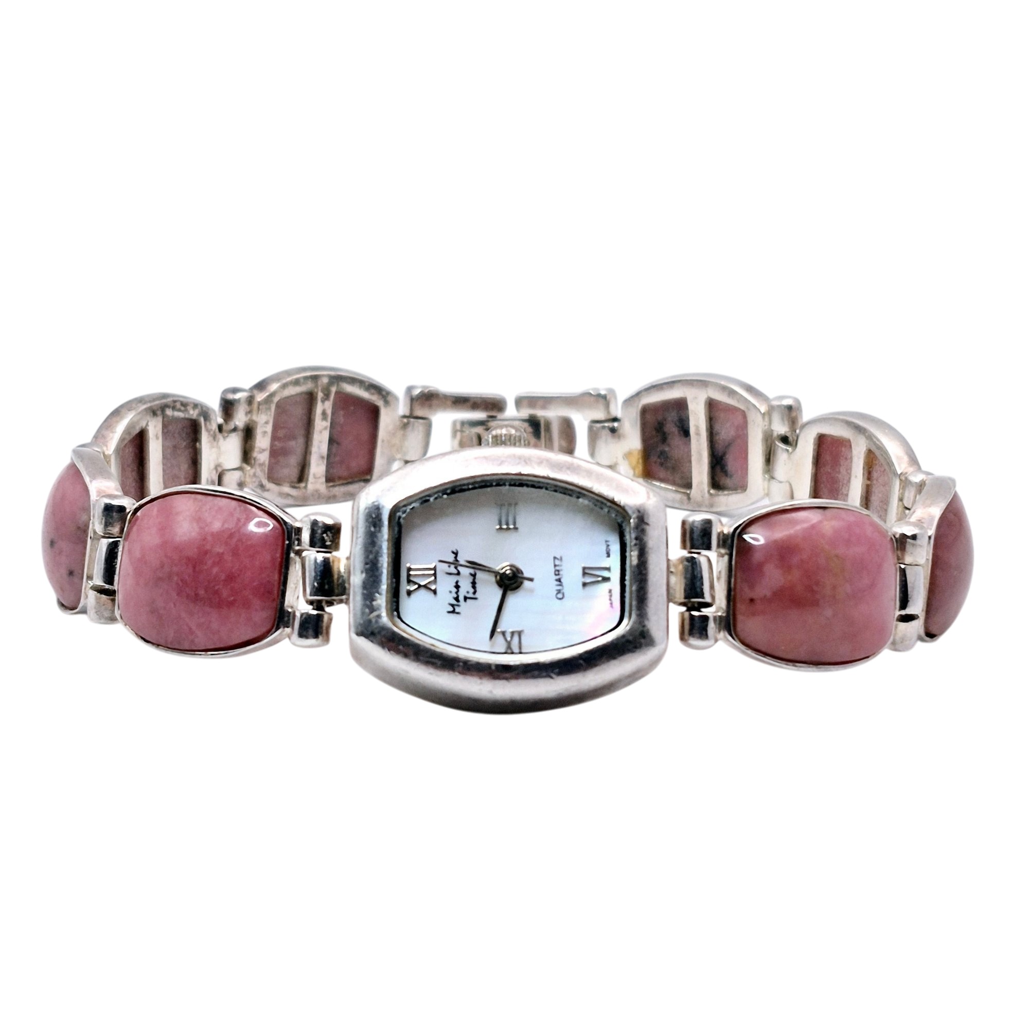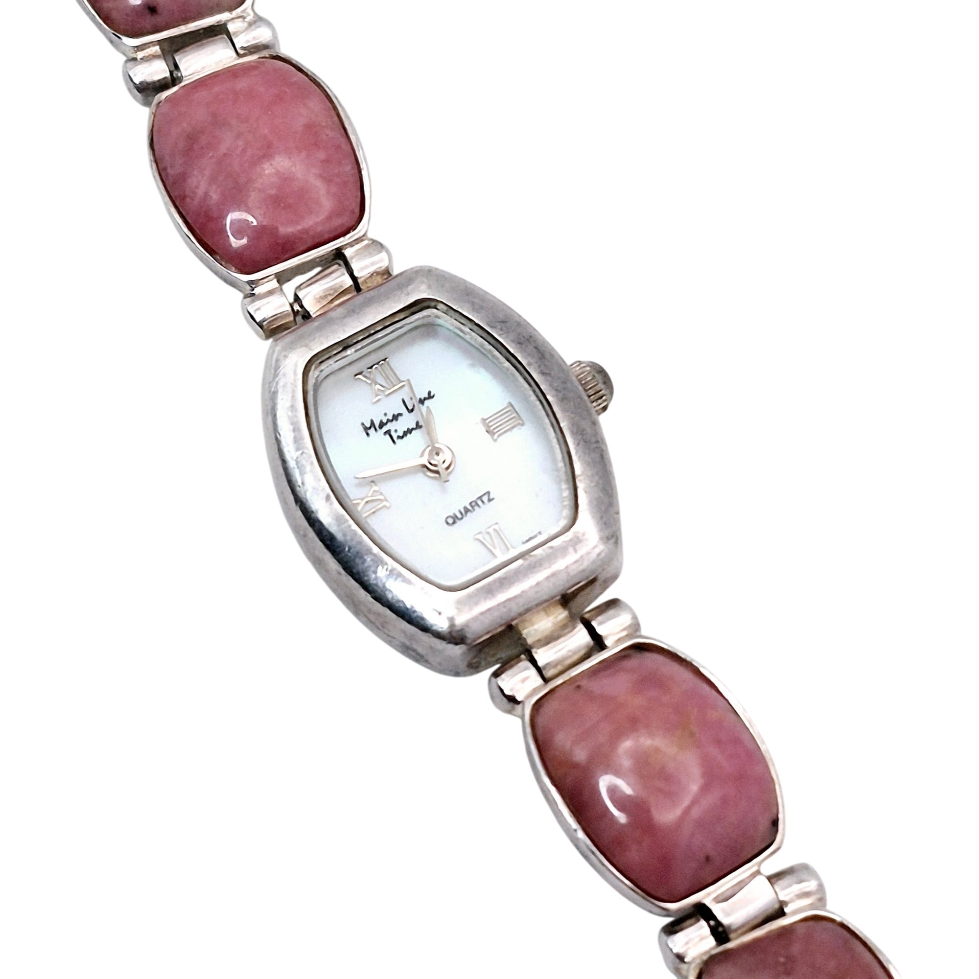 Main Line time s480 Sterling rhodonite links stainless steel watch face back wrist watch 39.8 G Not in working condition