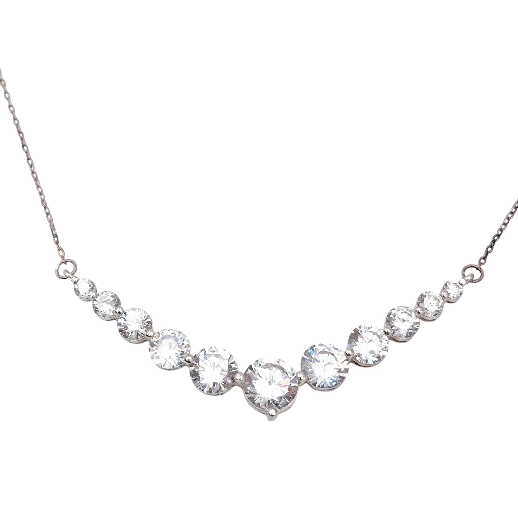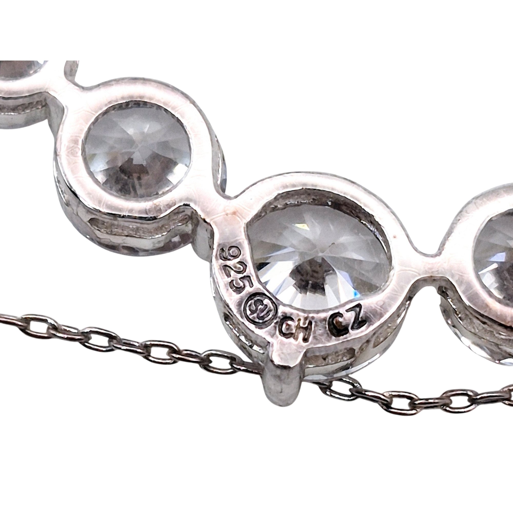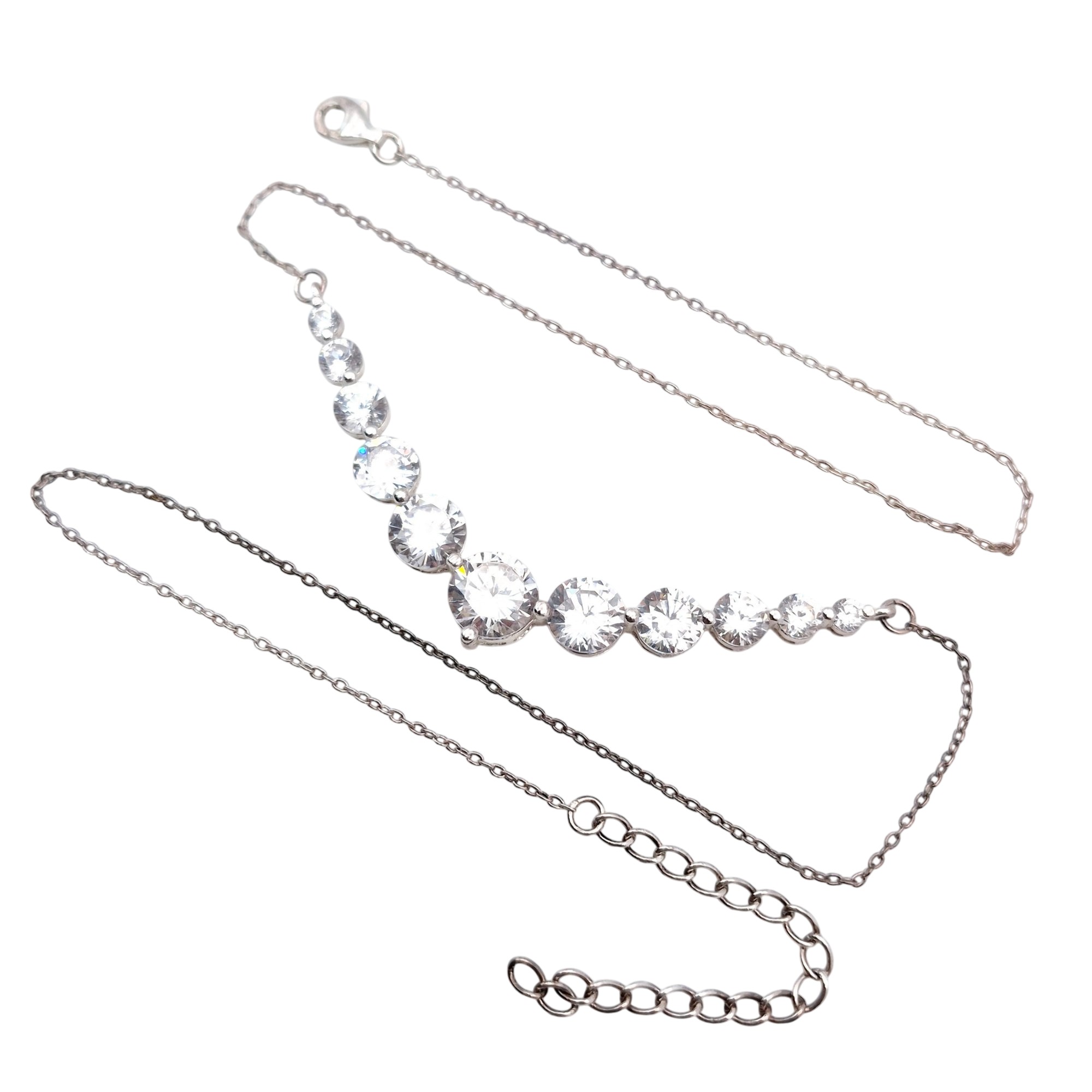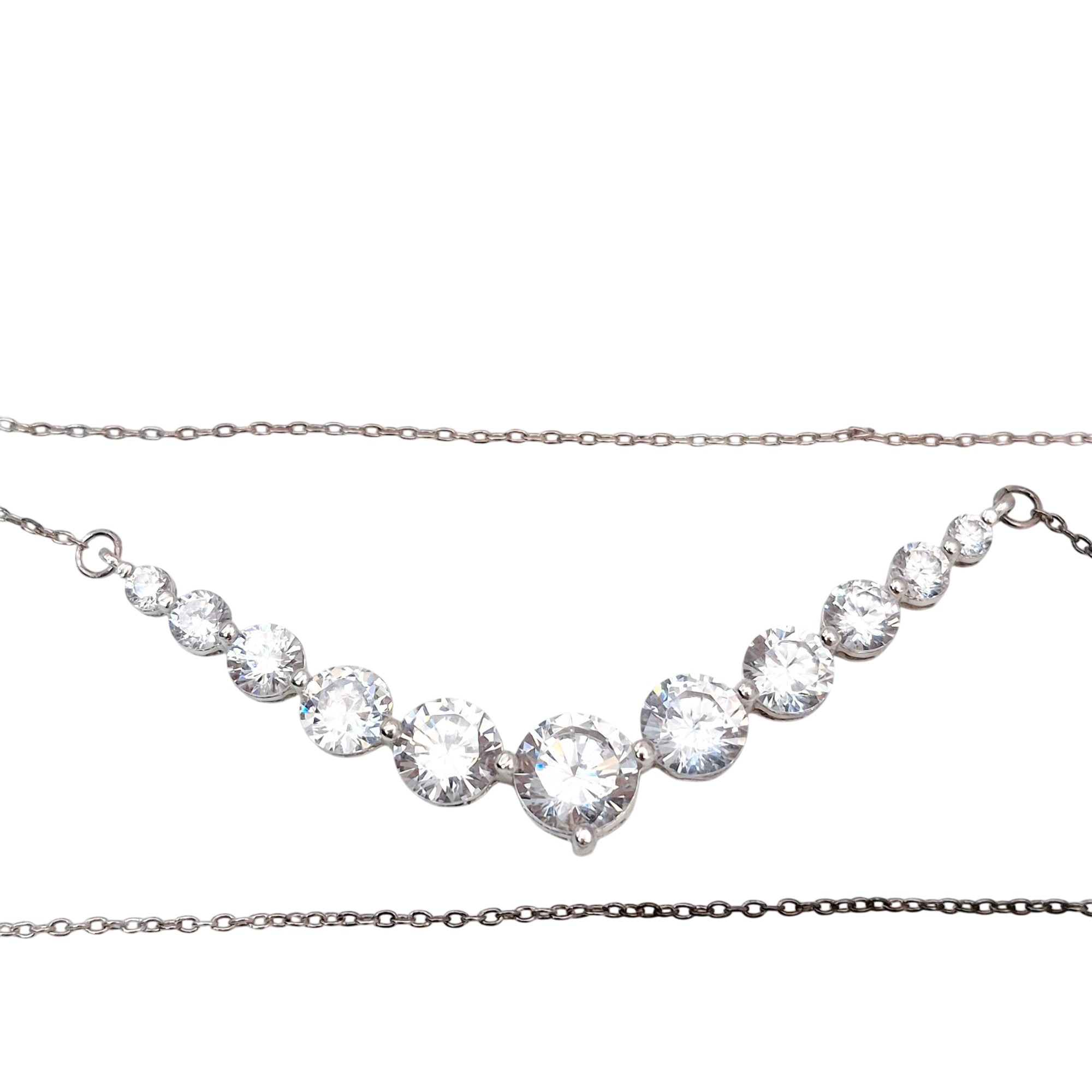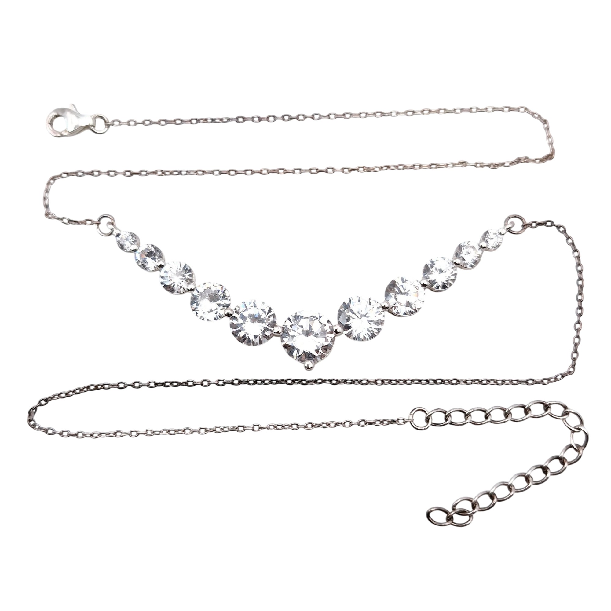 SU Sterling cubic zirconia graduated bar cable chain necklace 7.1 G