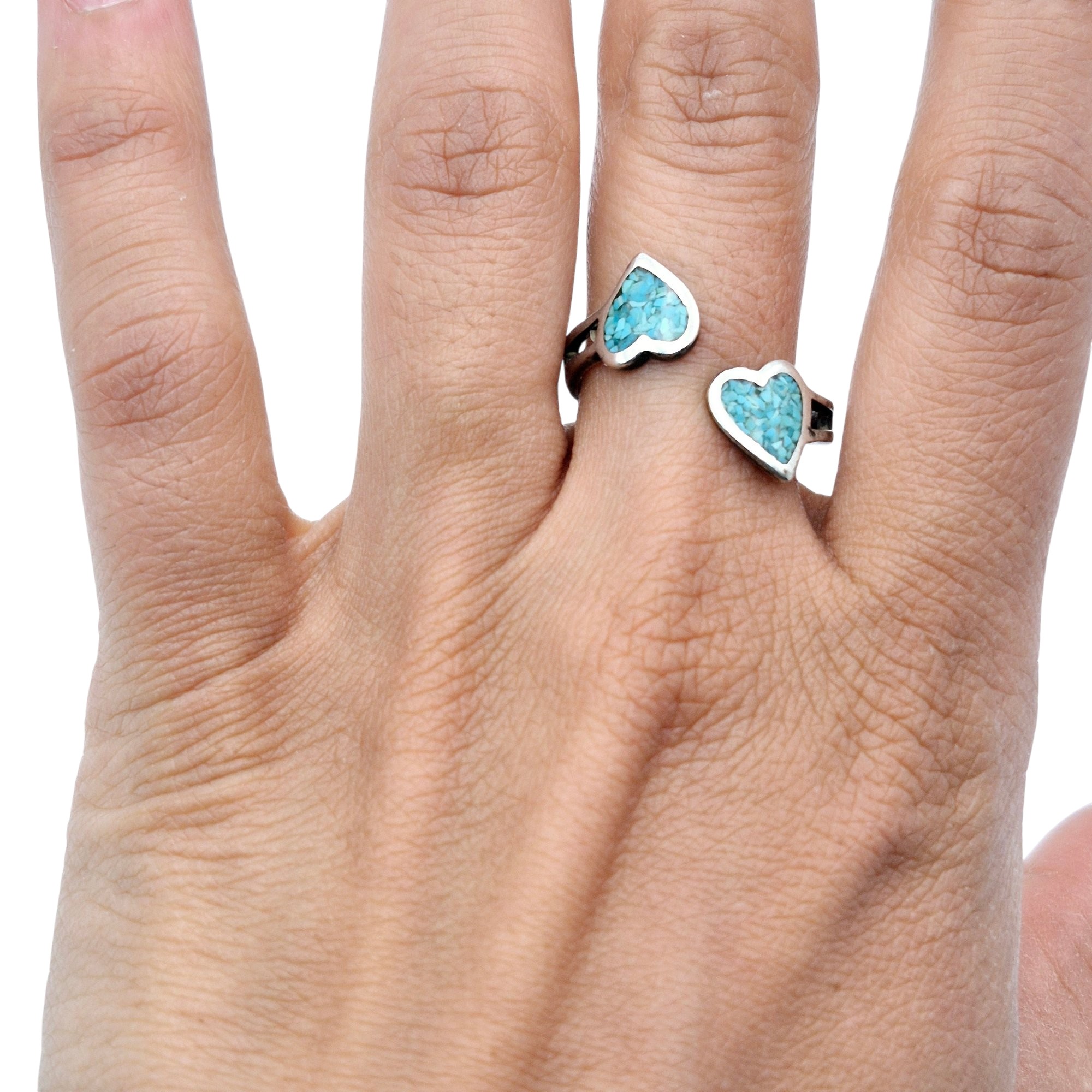 Sterling Crushed Turquoise Heart Bypass Ring Size 8.5