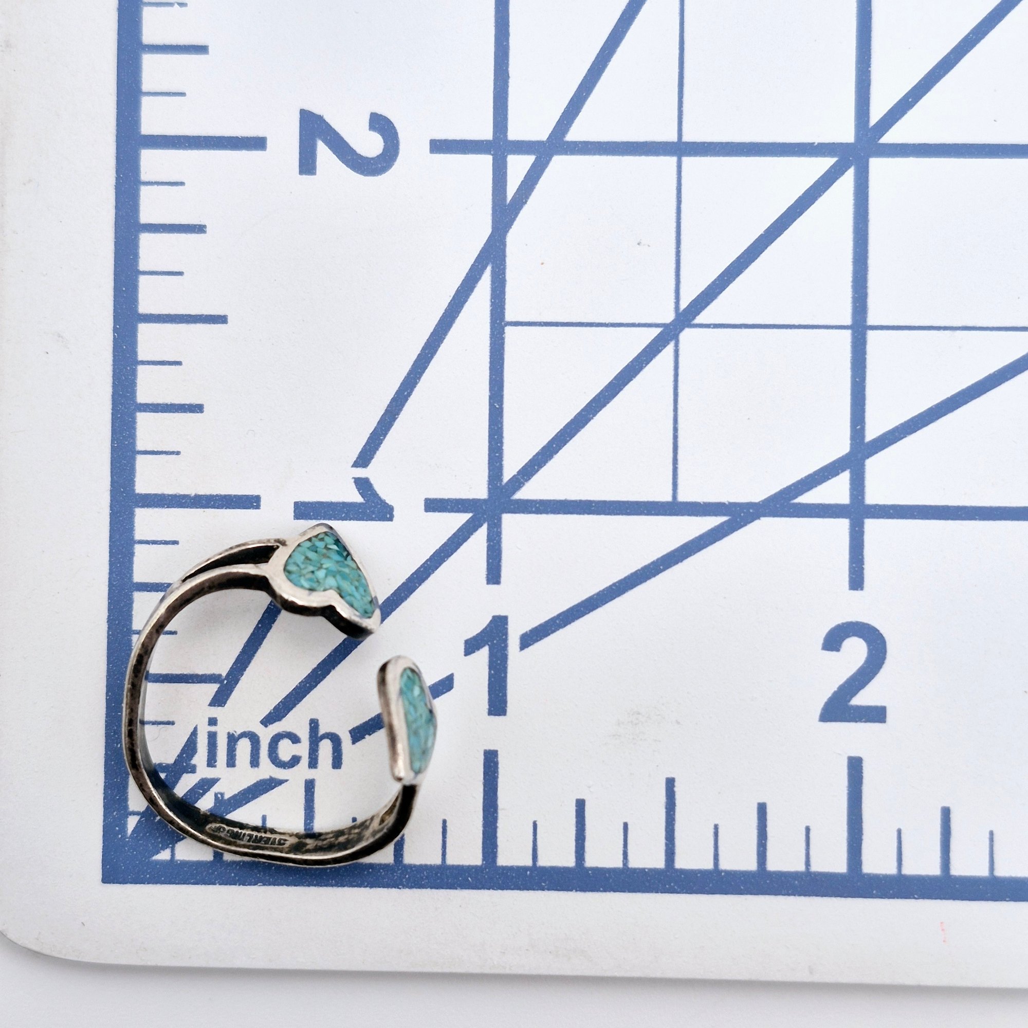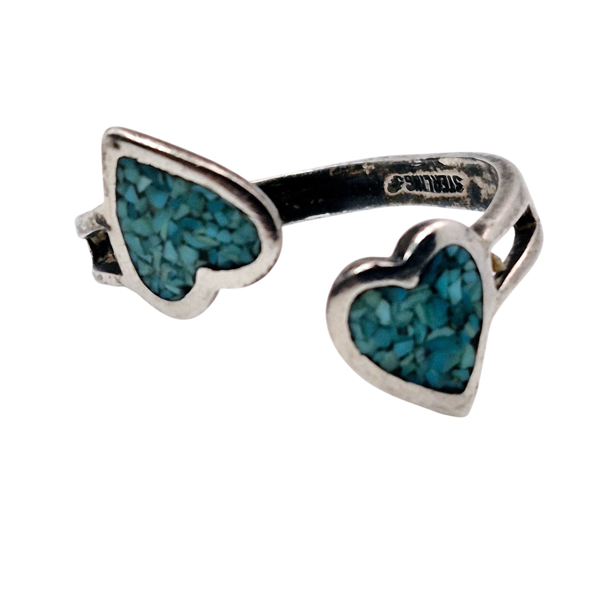 Sterling crushed turquoise heart bypass ring size 8.5 2.8 G