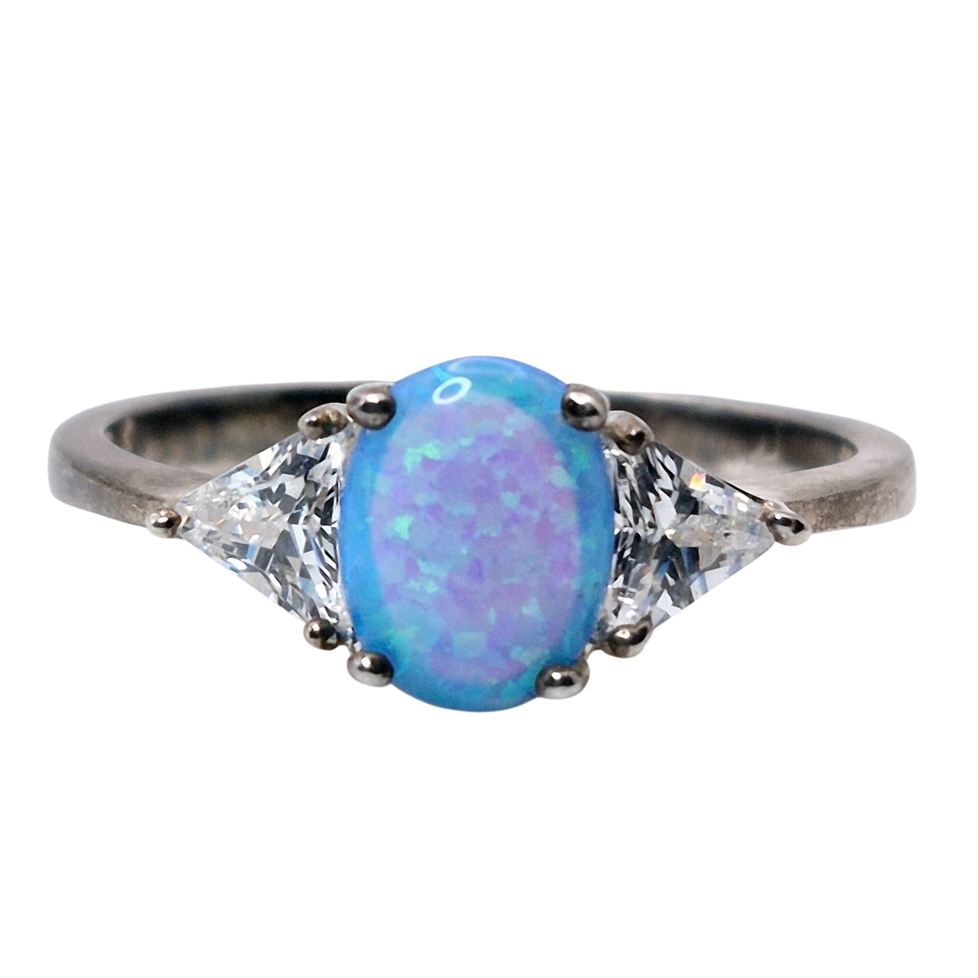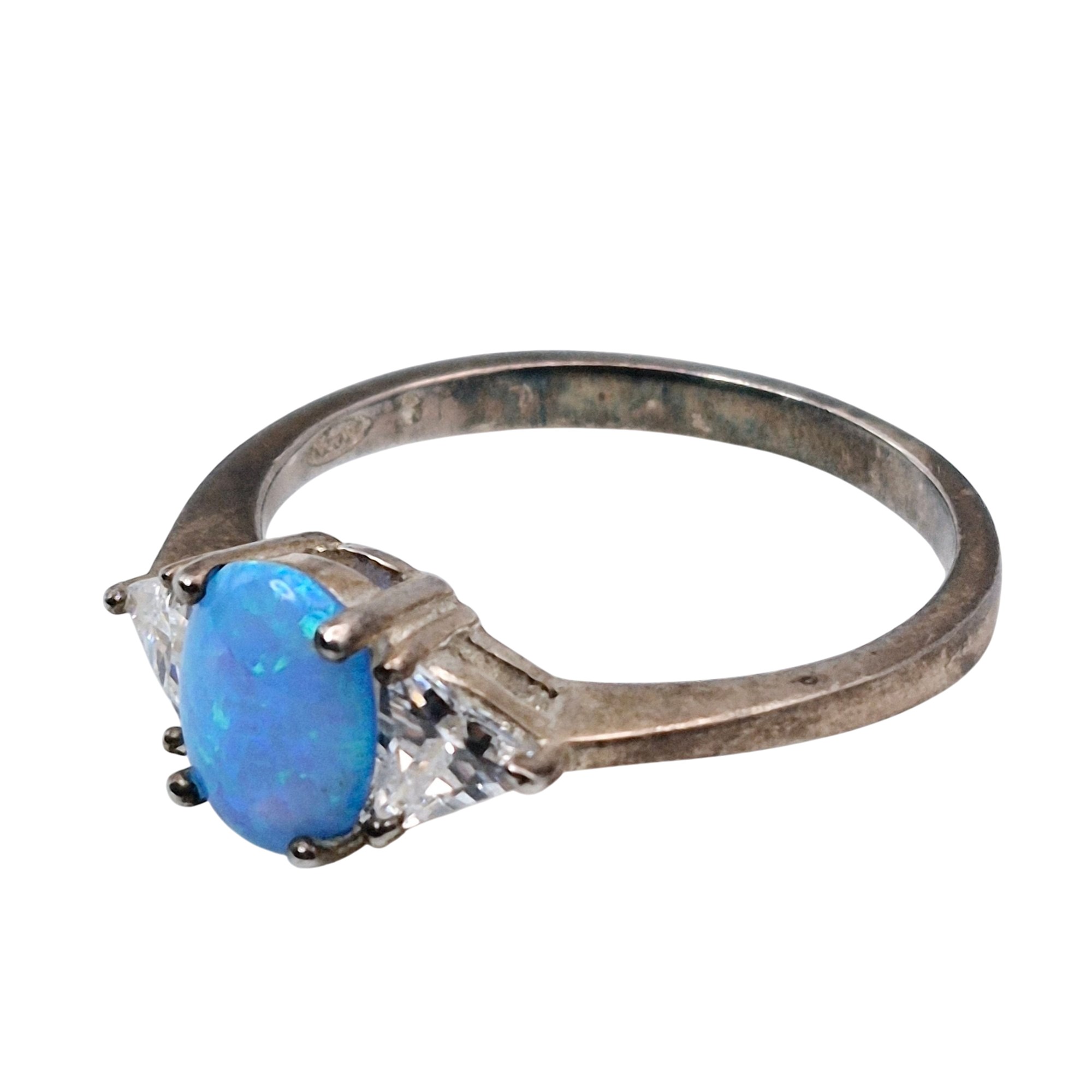 Avon NV Sterling opal clear stone ring size 8 2.4 G