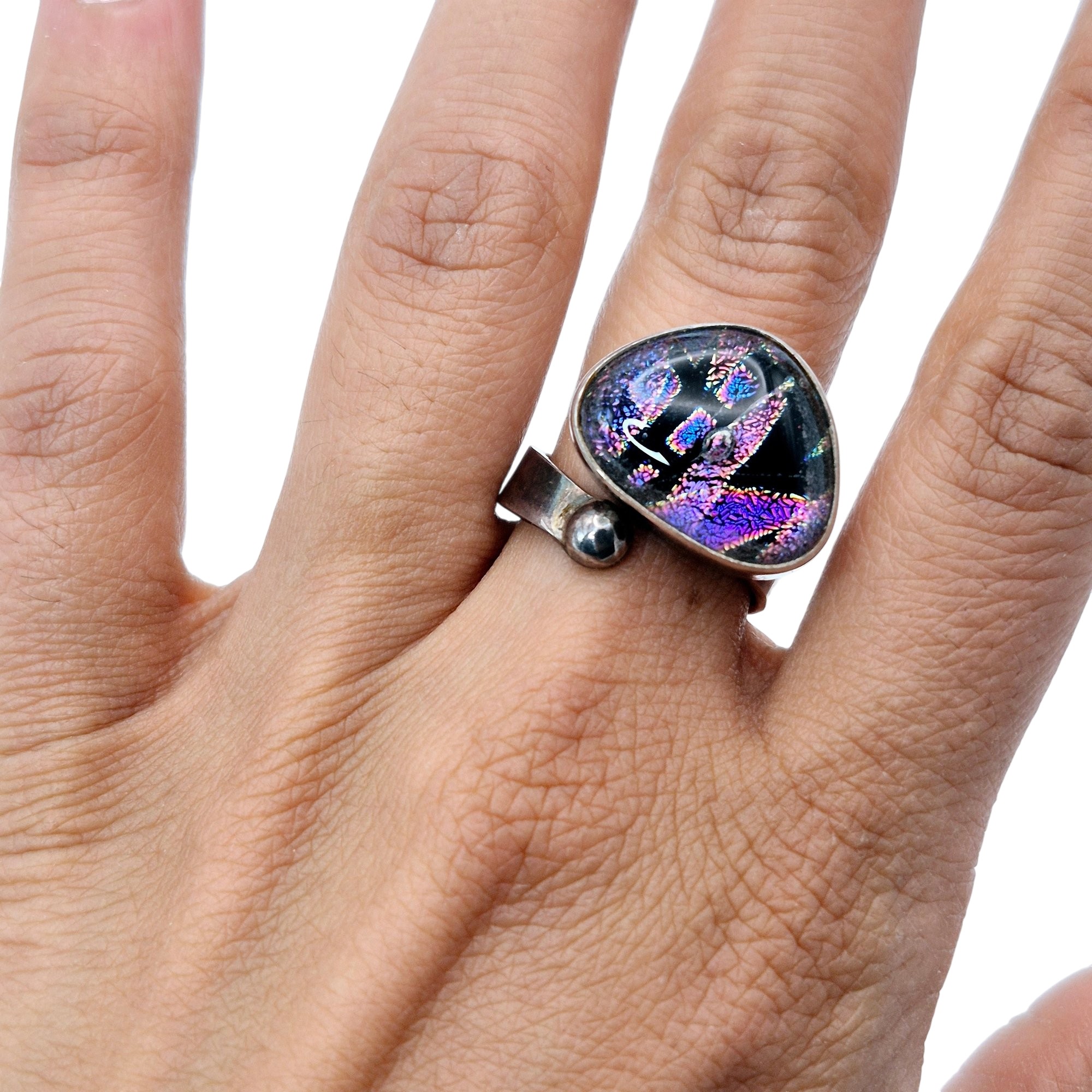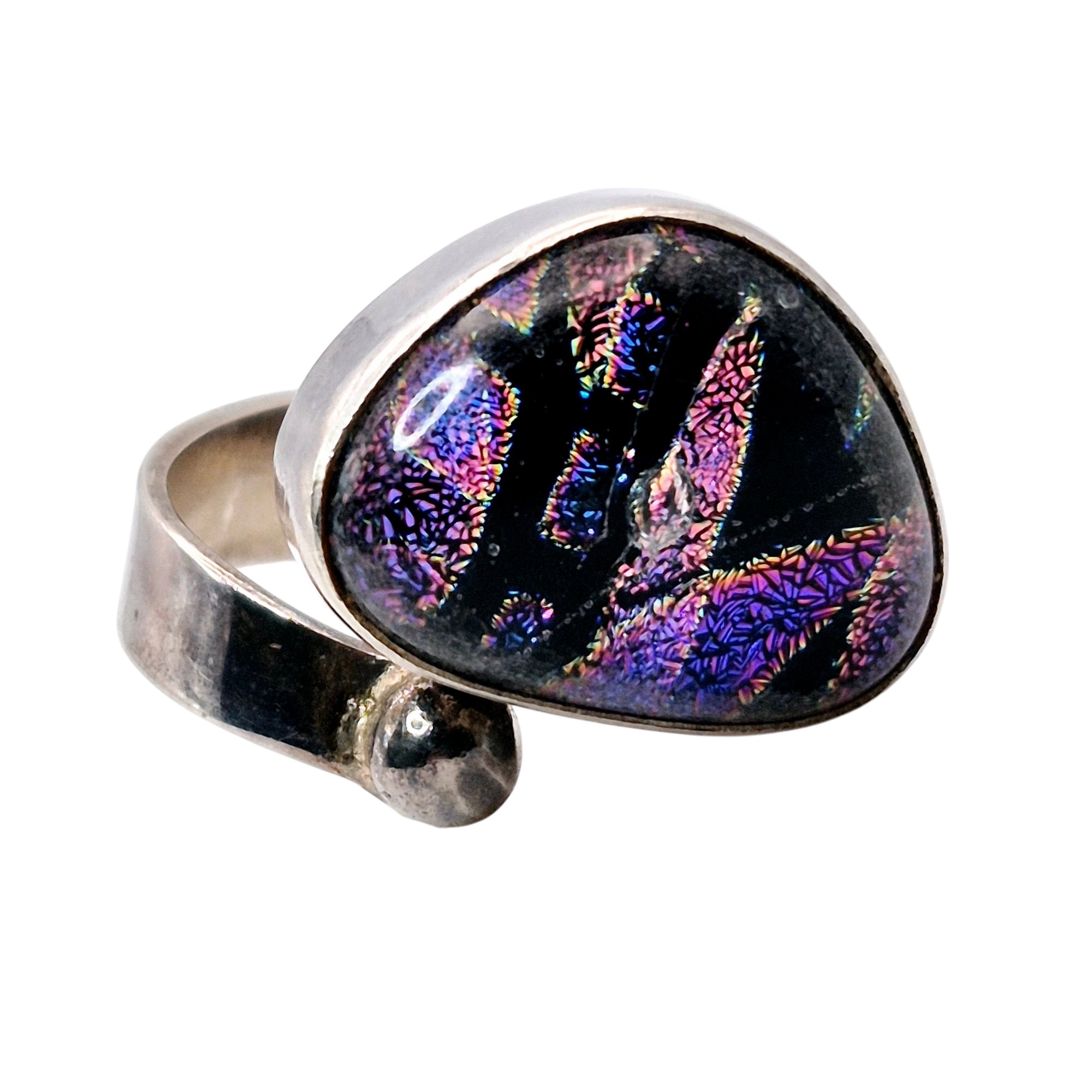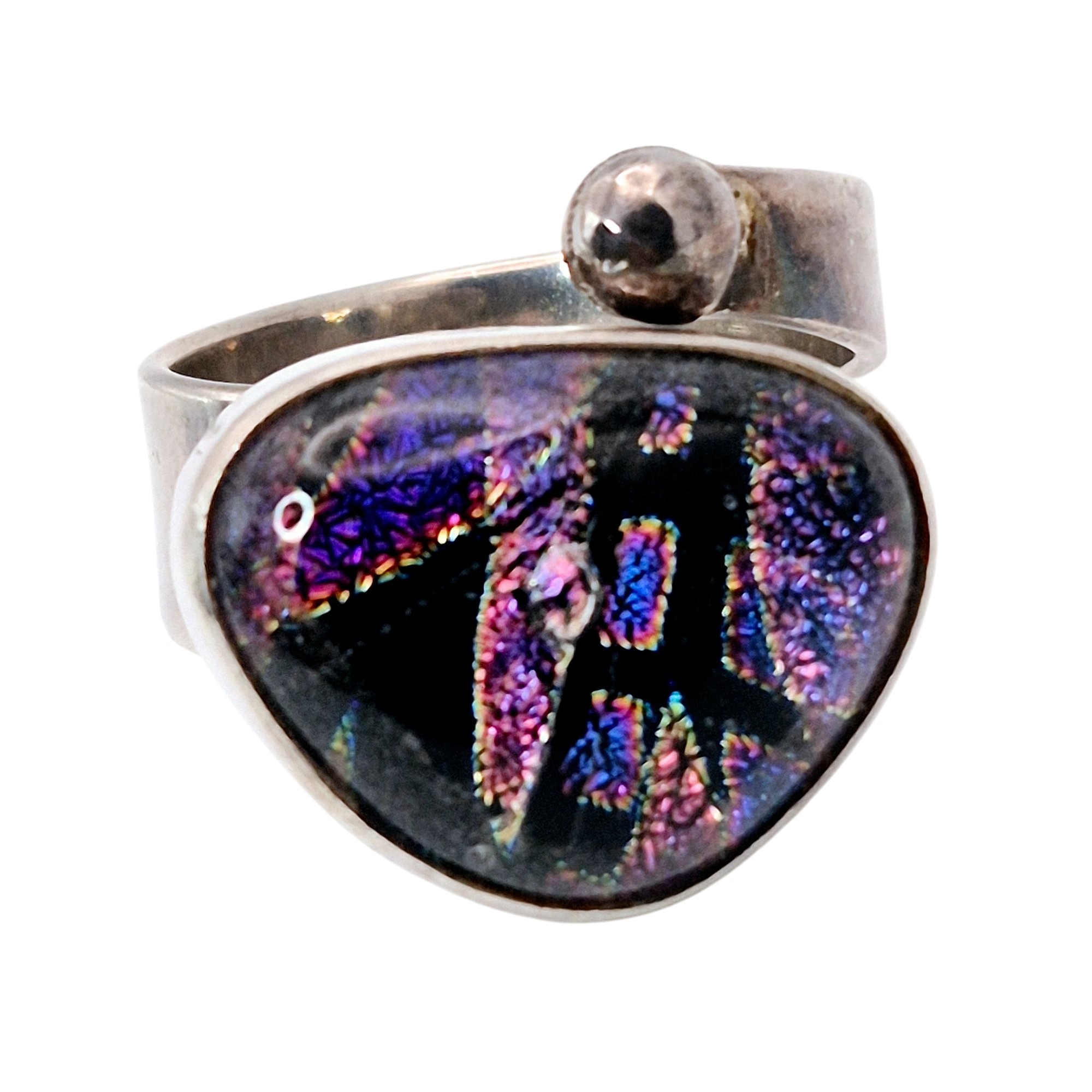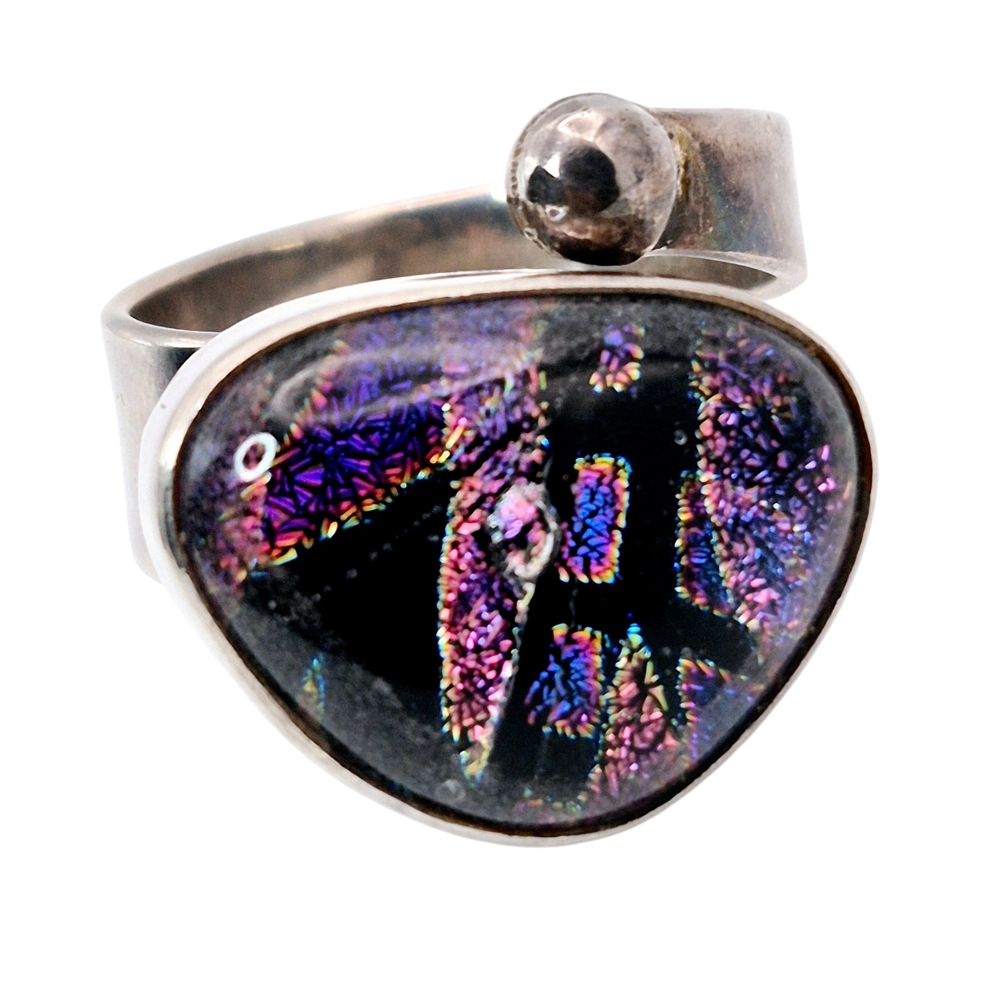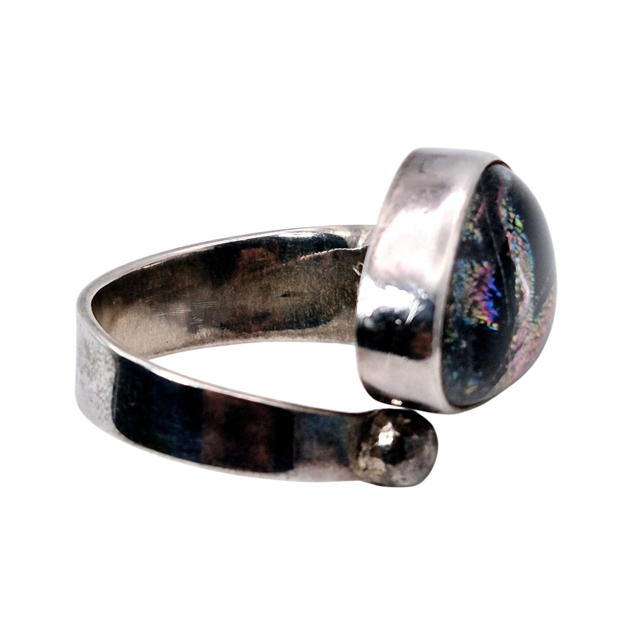 Sterling dichroic glass bypass ring size 8.5 10.3 G