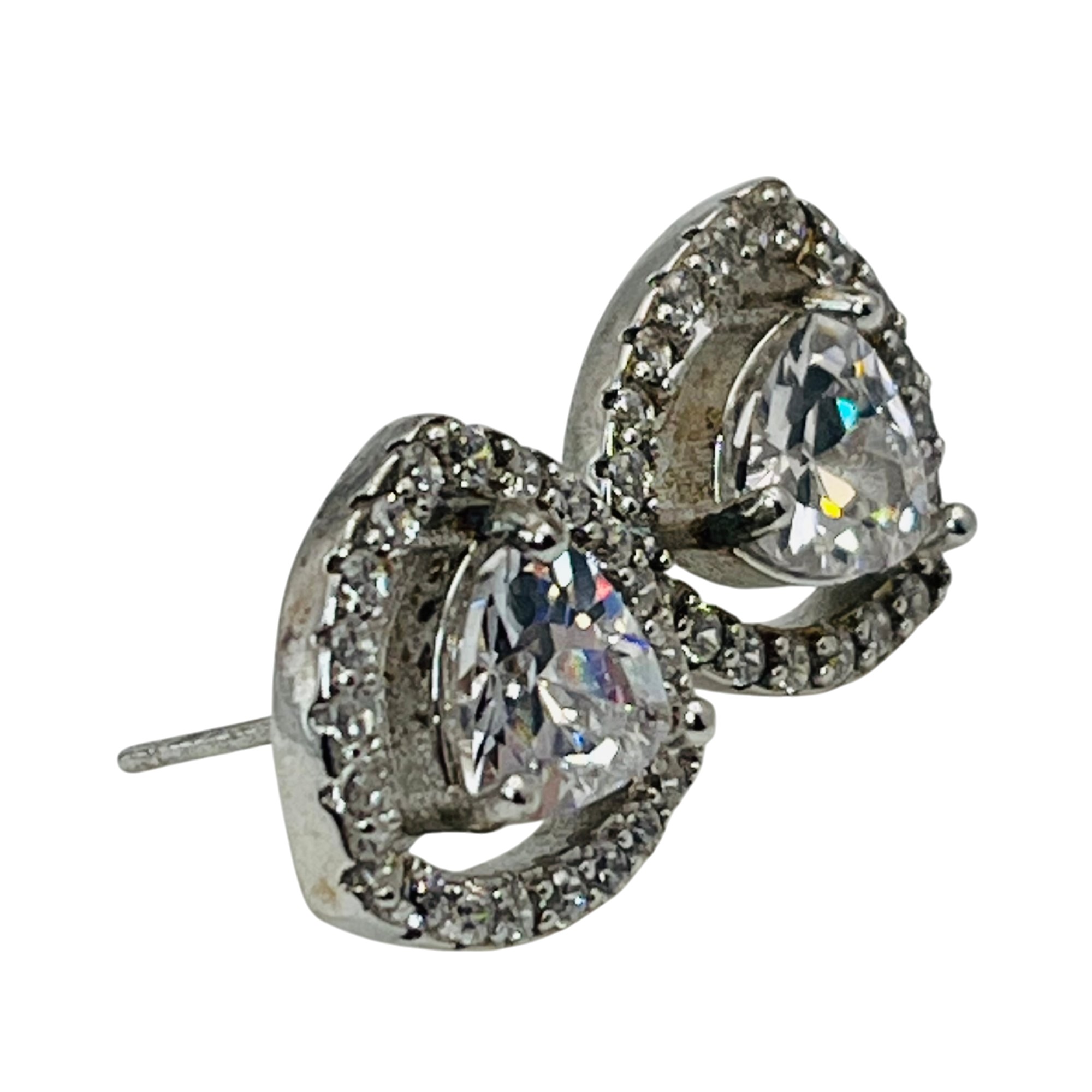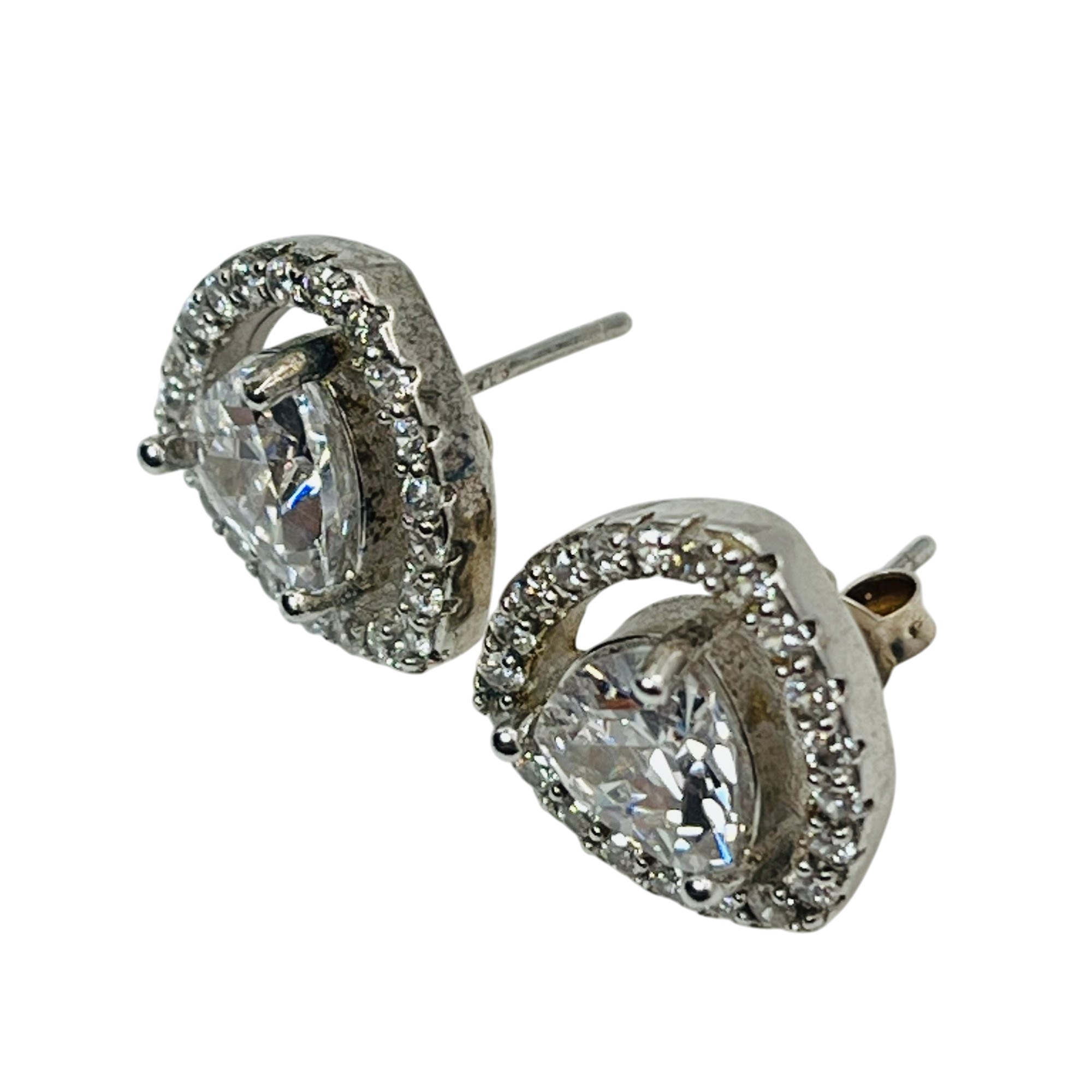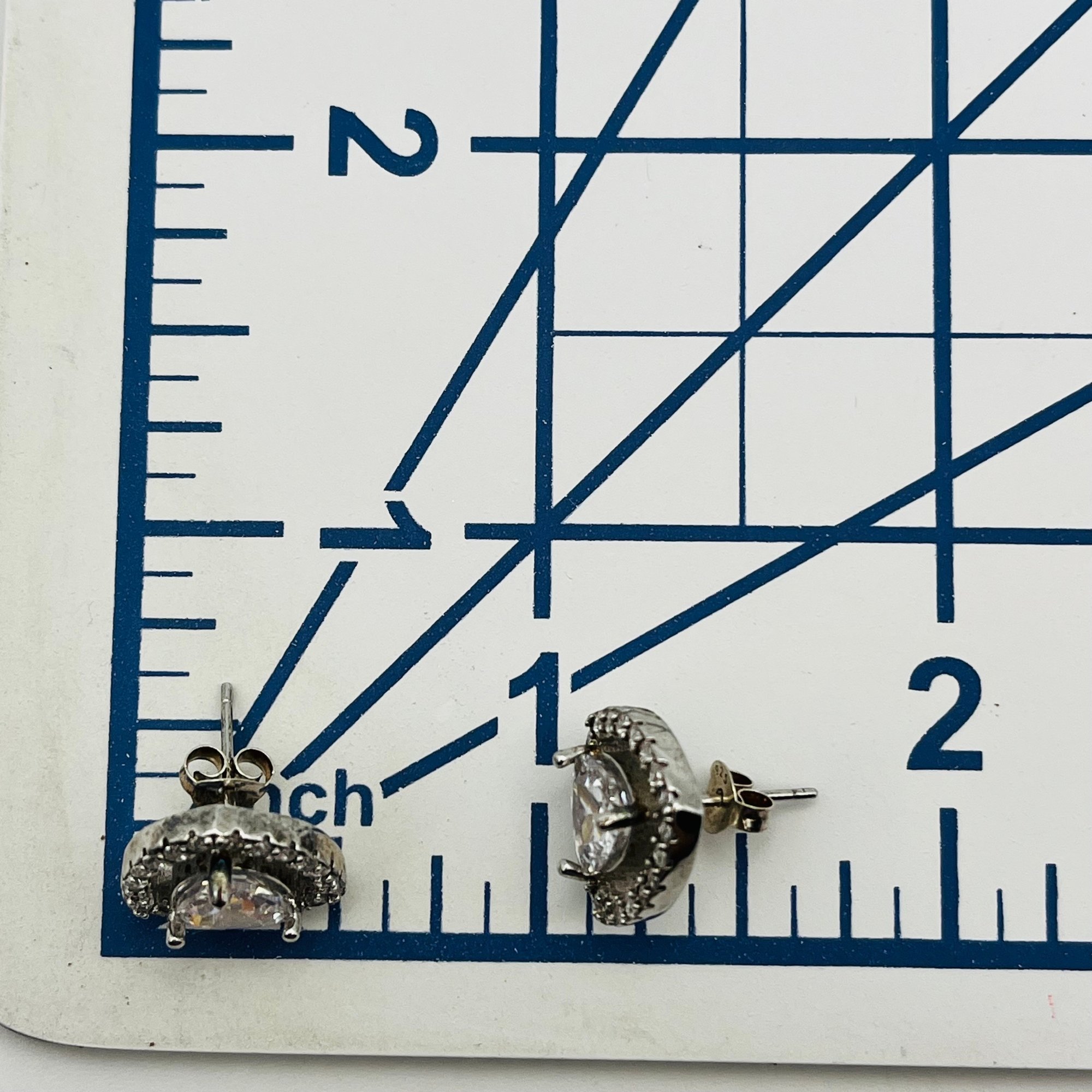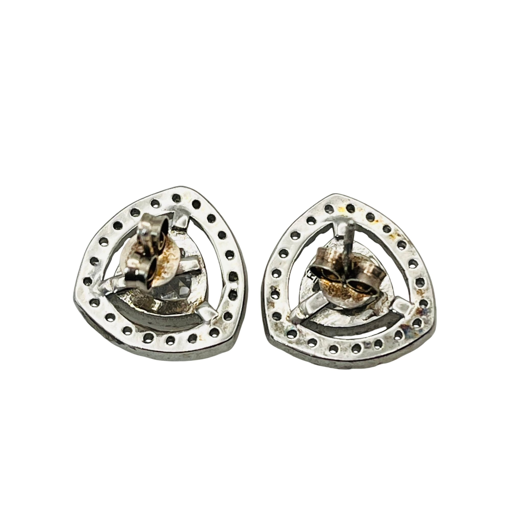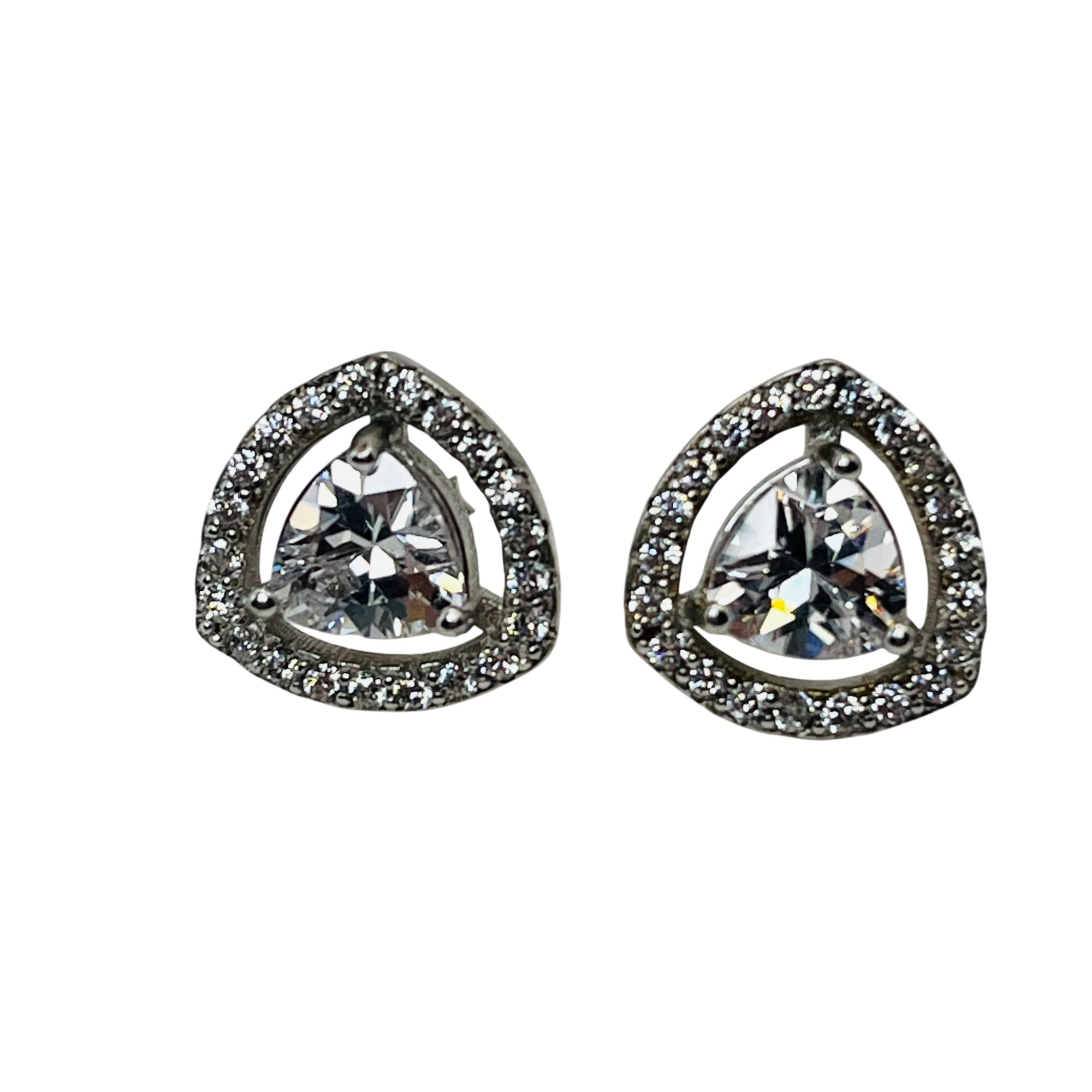 Sterling rhinestone trillion cut halo stud earrings 5.1 g