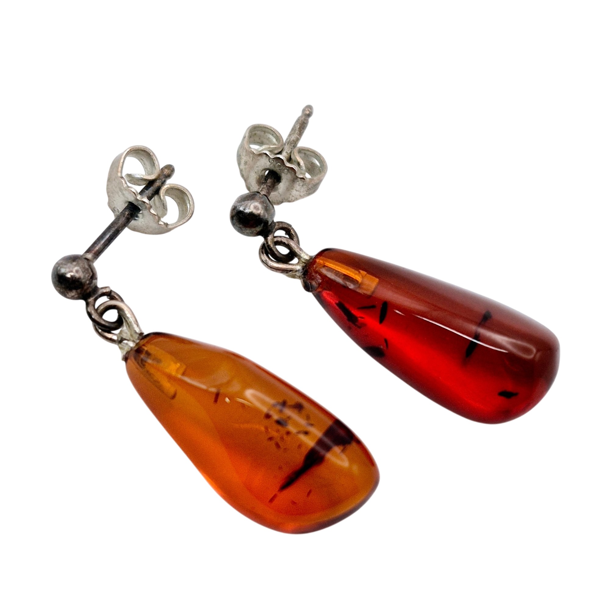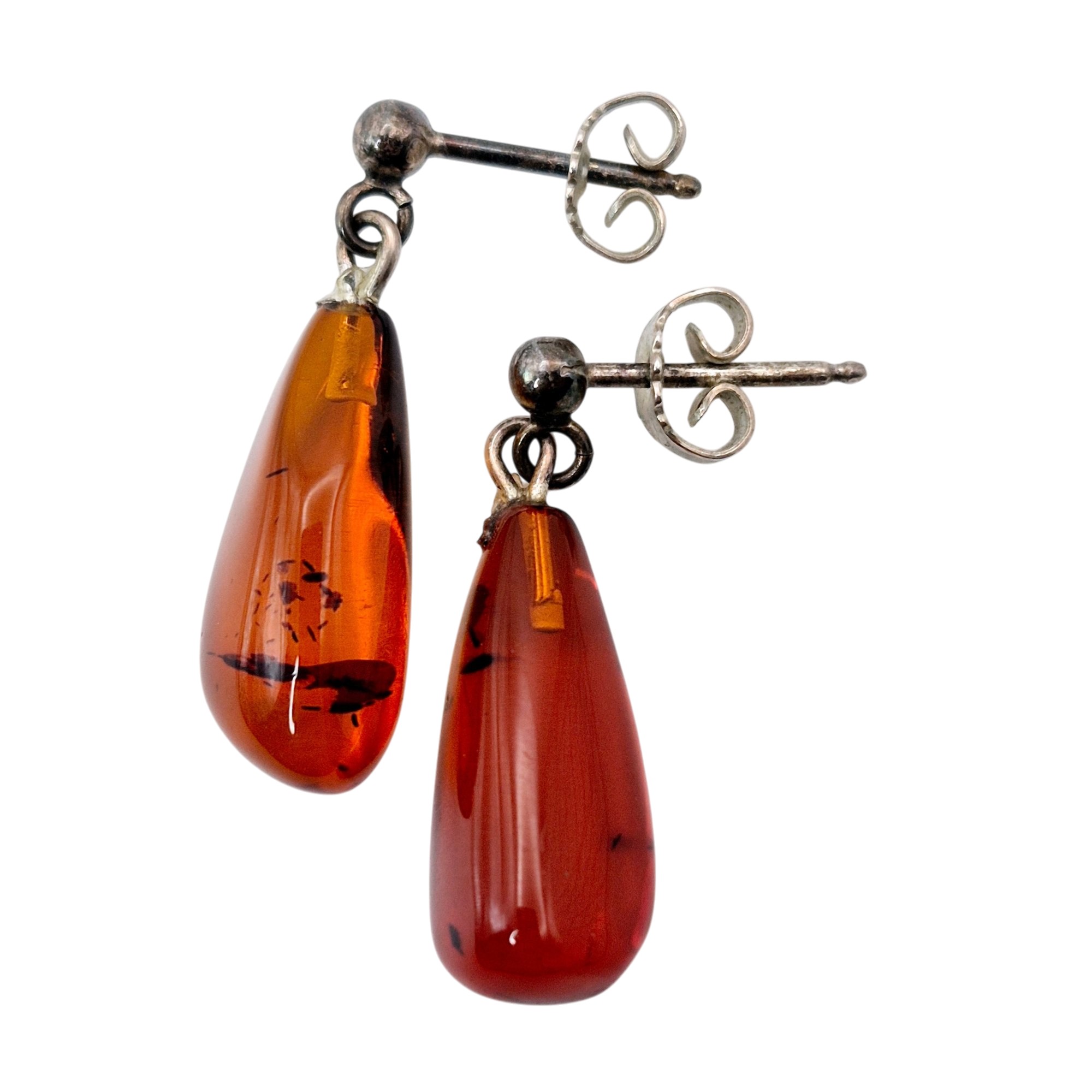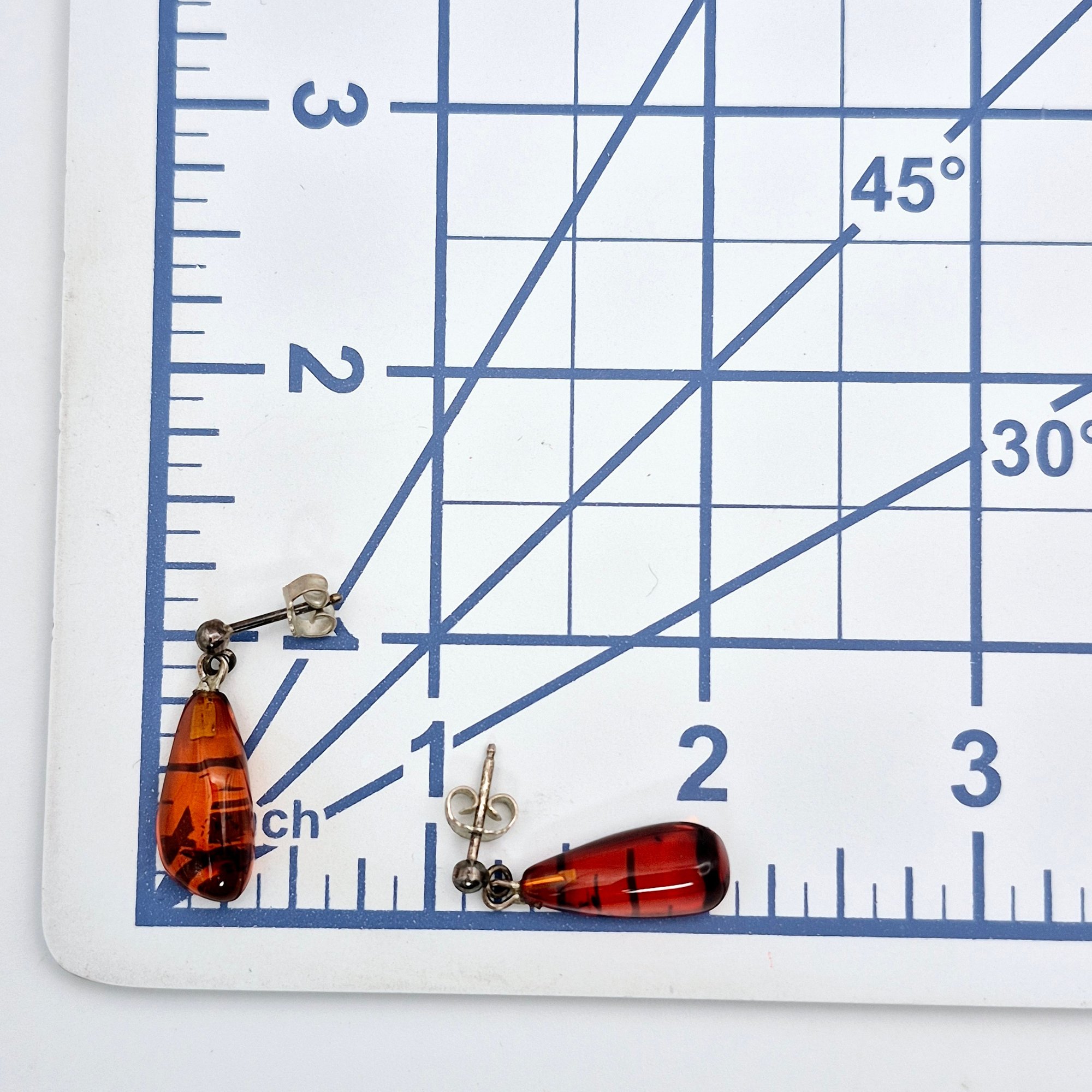 Sterling Amber teardrop dangle stud earrings 2.1 G