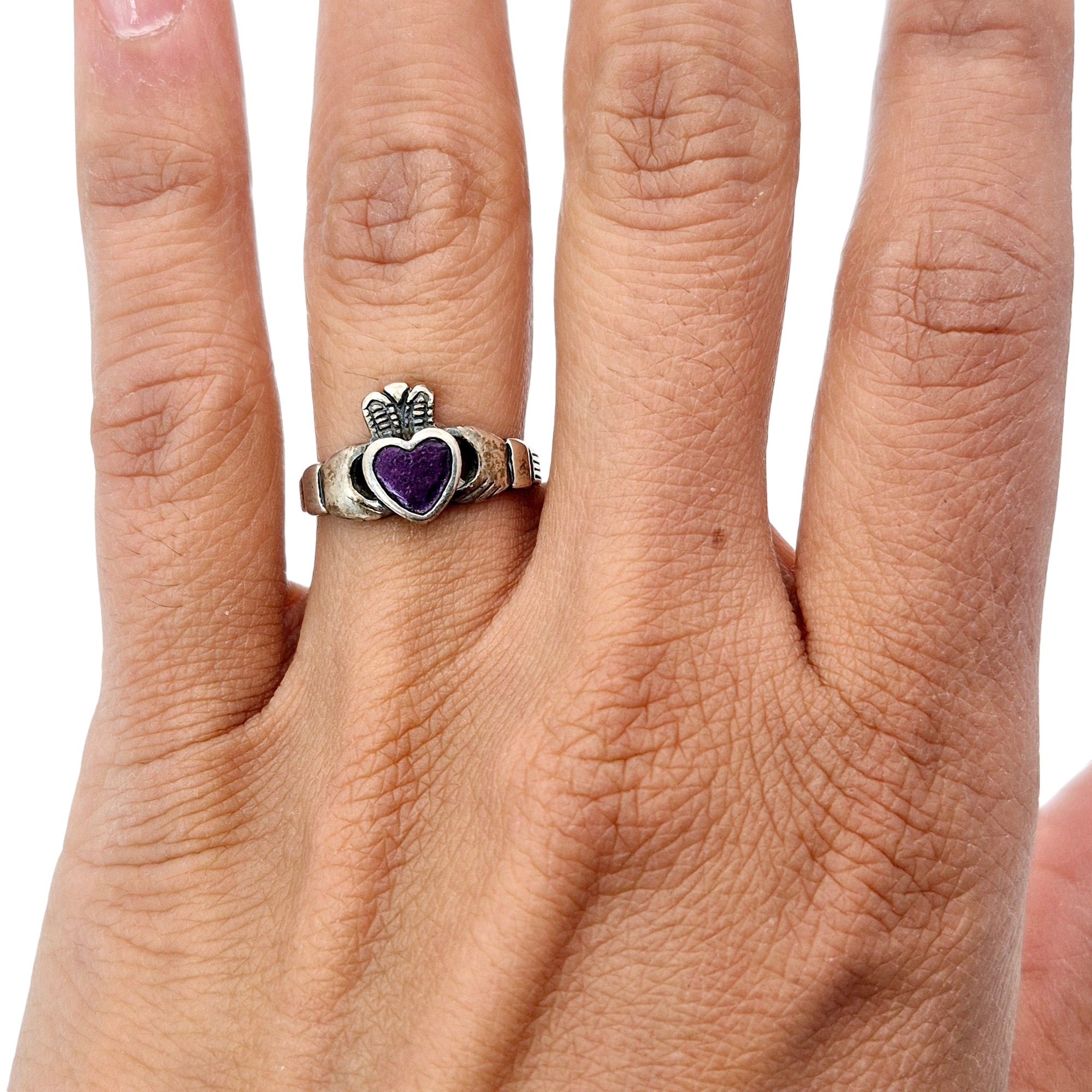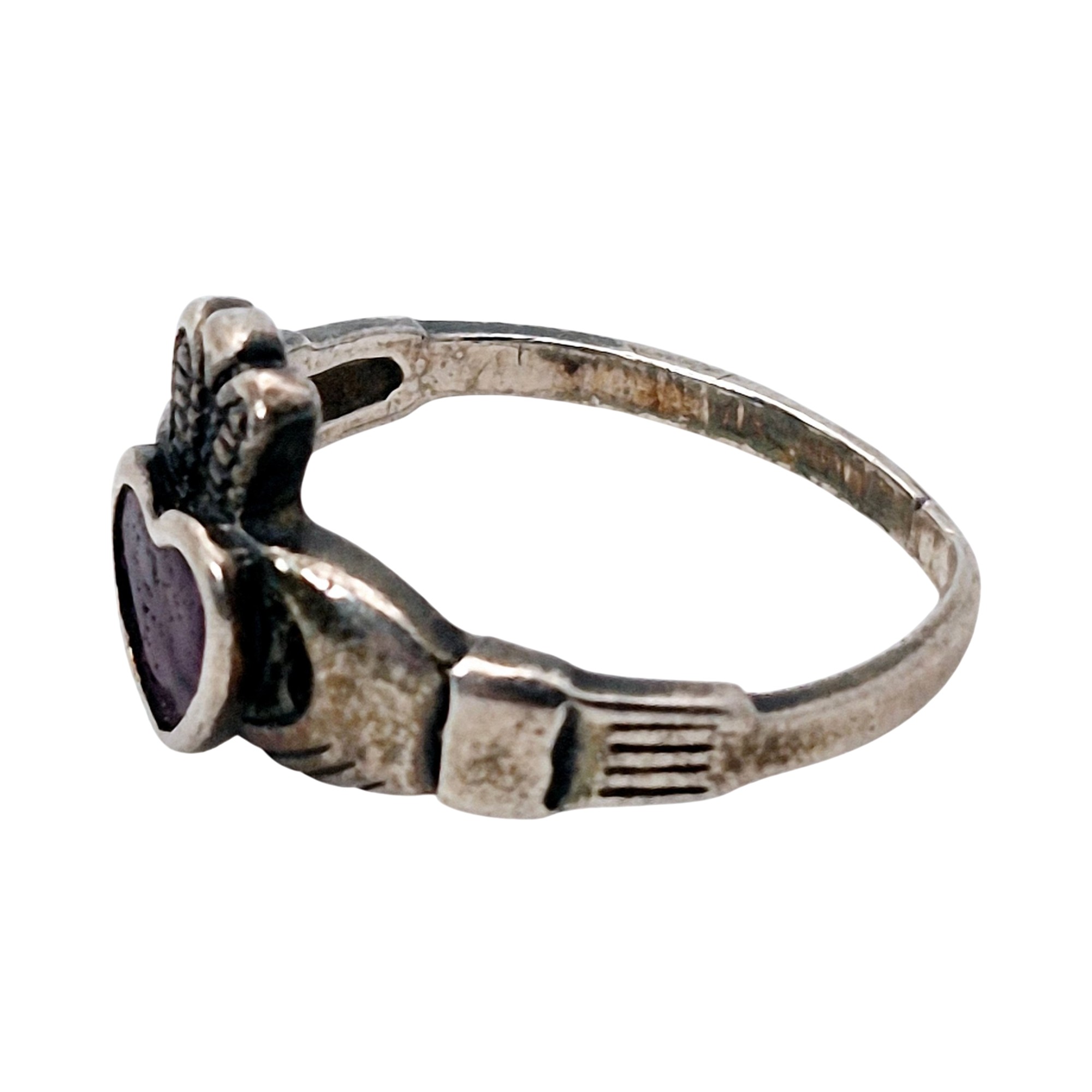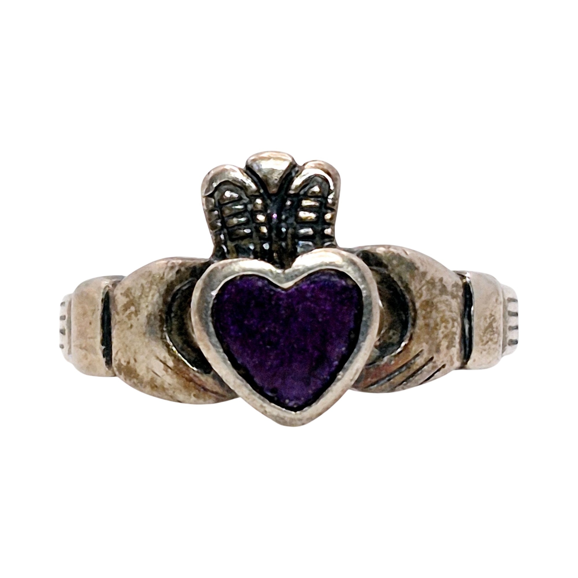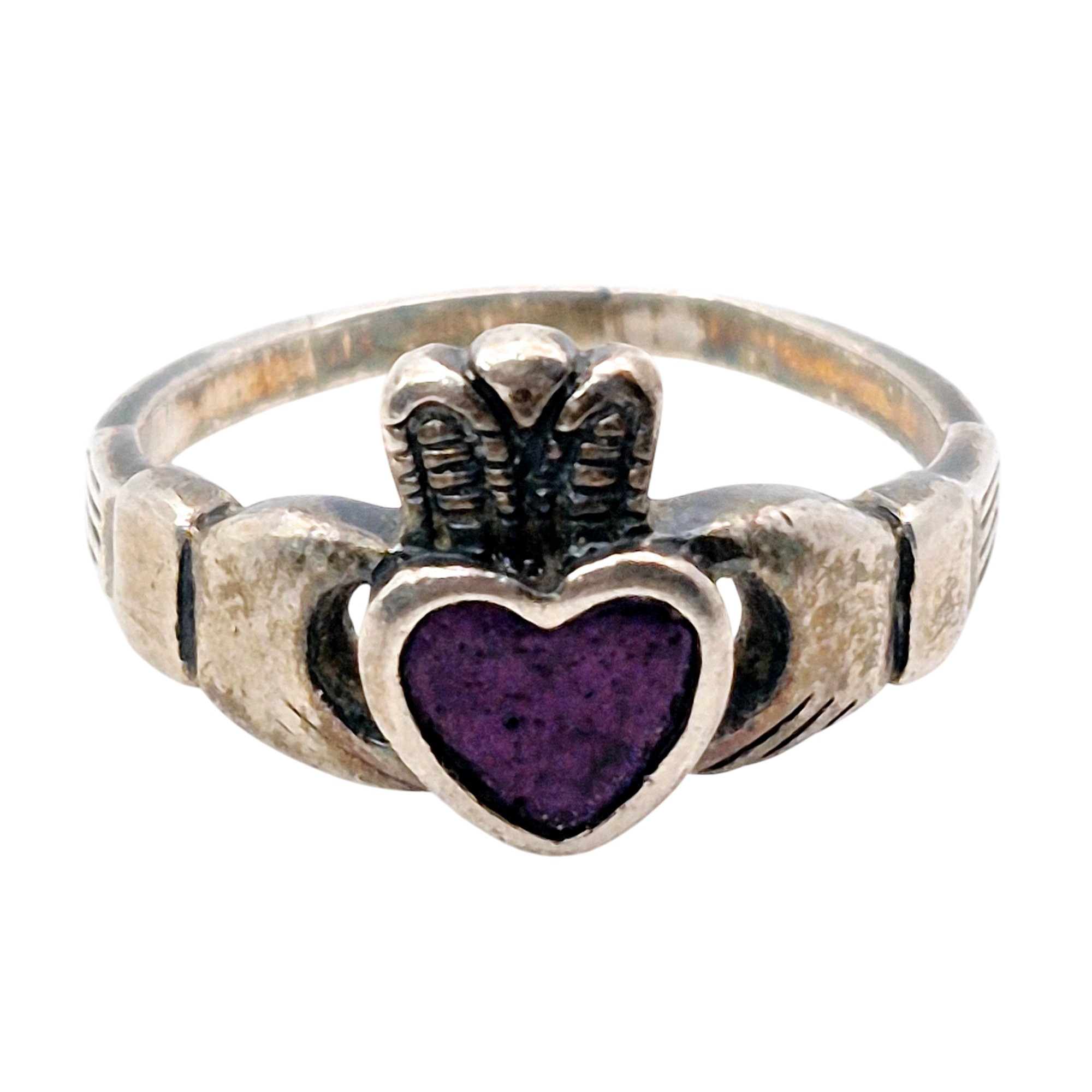 Sterling purple stone claddagh ring size 5.5 2.6 G