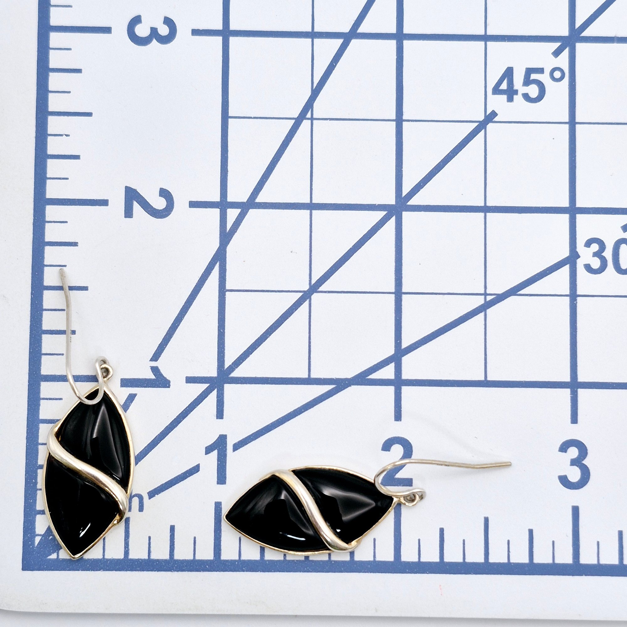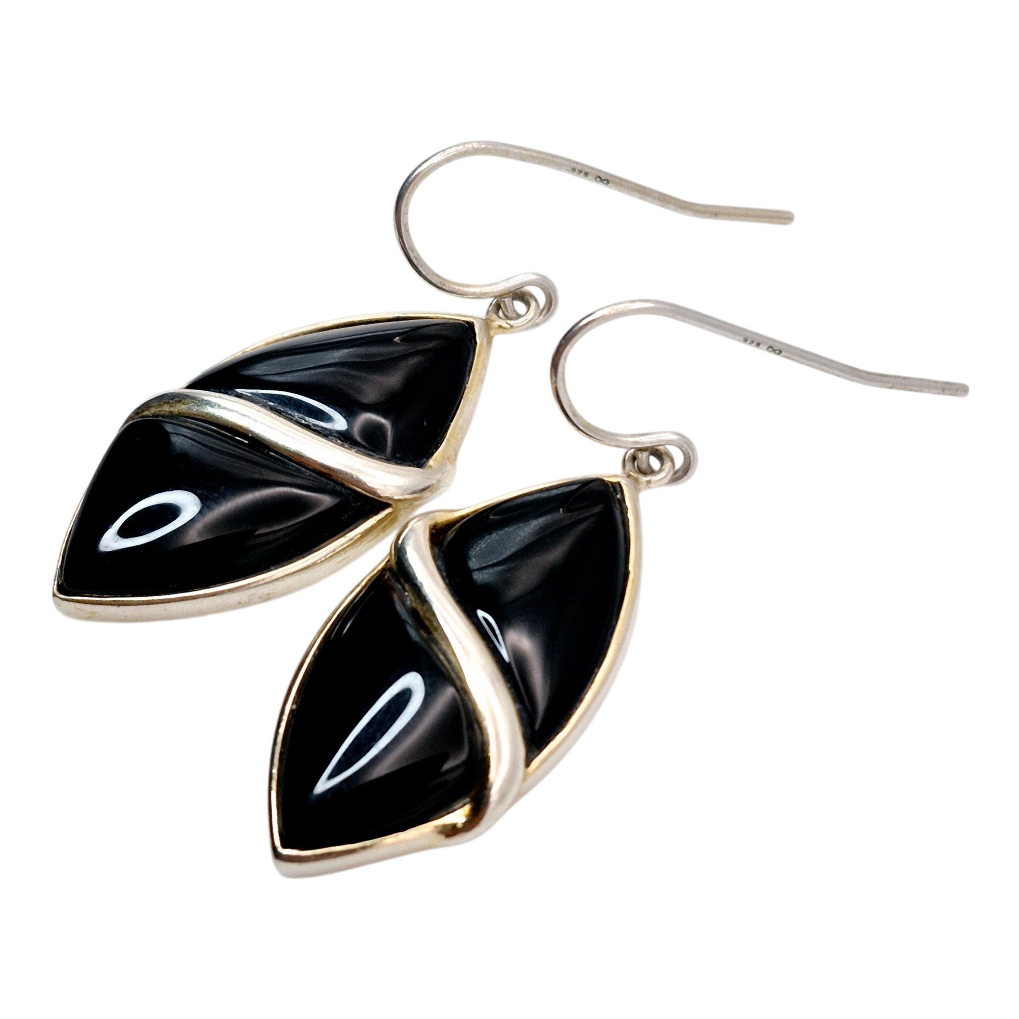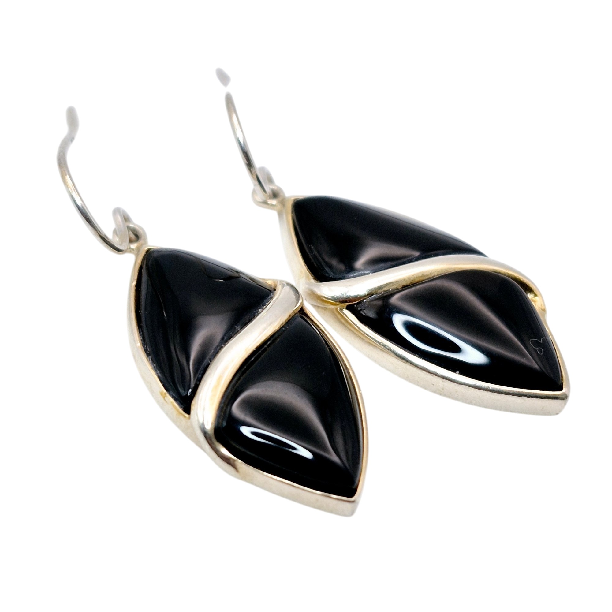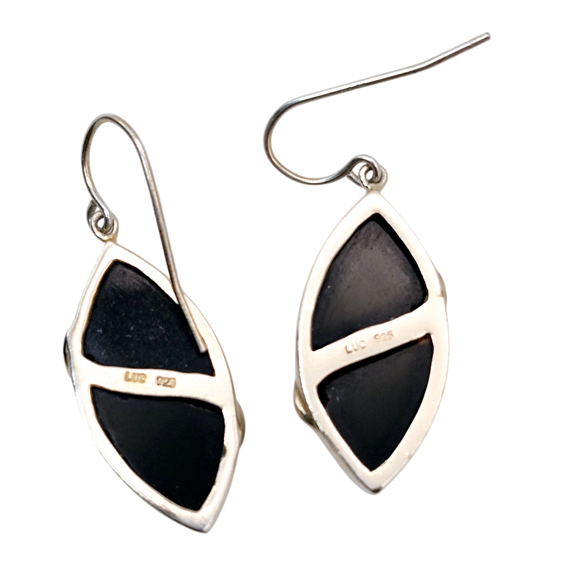 LUC Sterling Marquise Black stone dangle earrings 5.6 grams