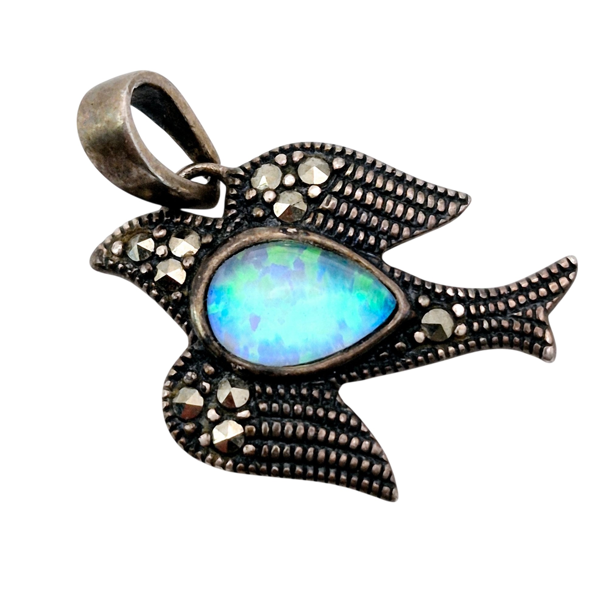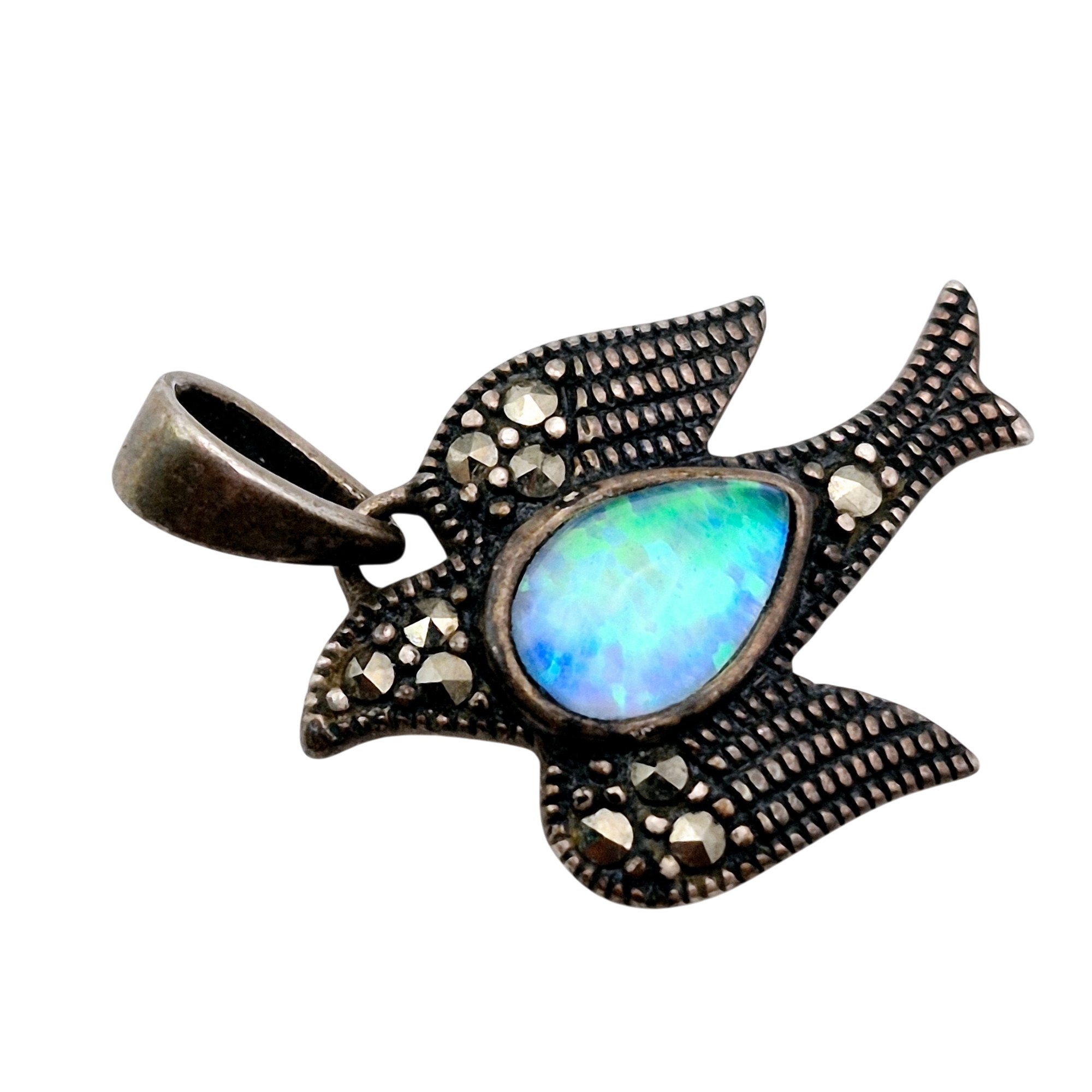 SLC Sterling opal marcasite dove pendant 1.9 grams
